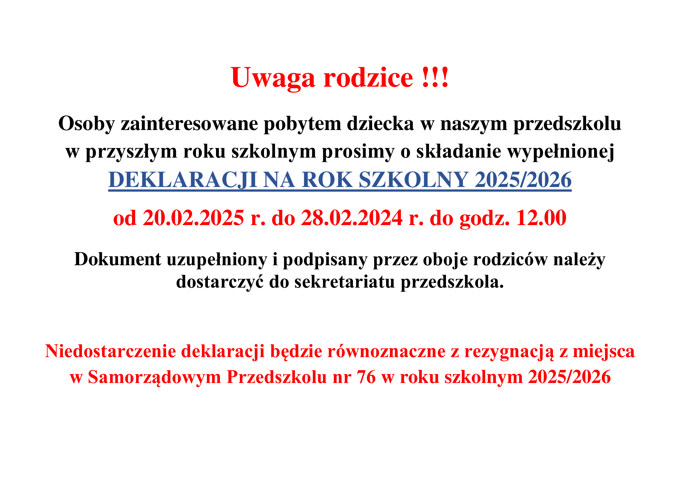 DEKLARACJA NA ROK SZKOLNY 2025/2026
