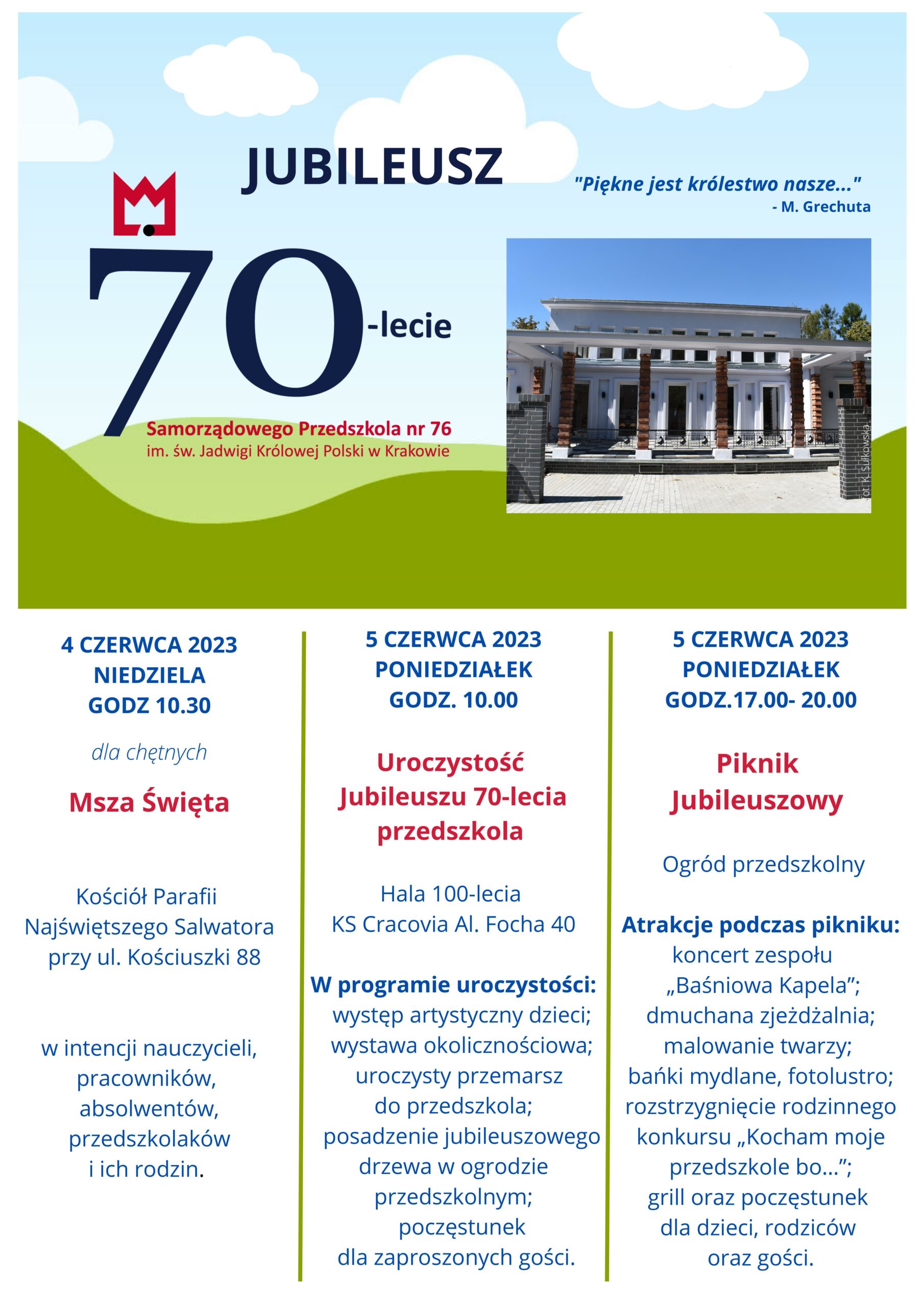 JUBILEUSZ 70-LECIA PRZEDSZKOLA