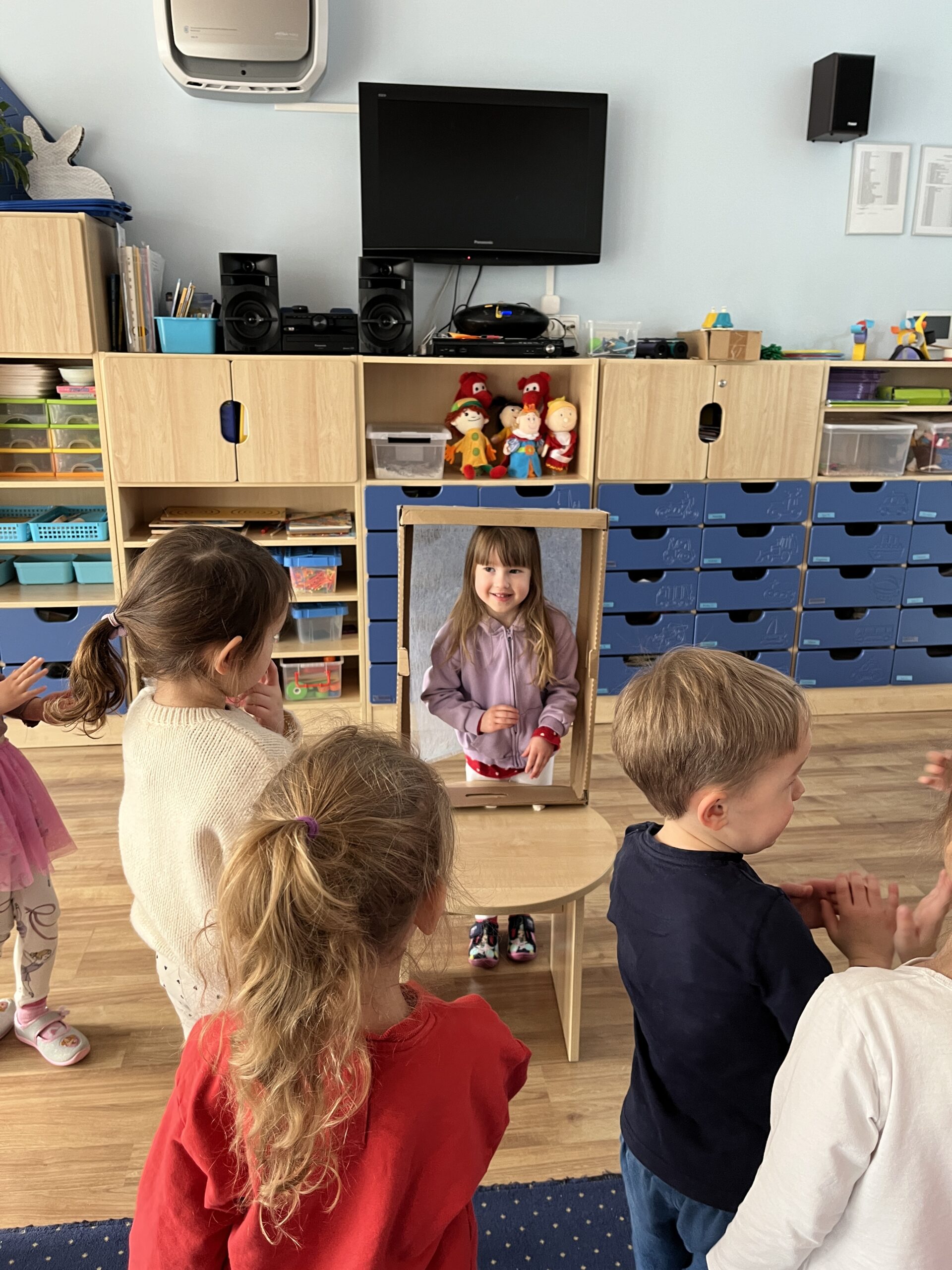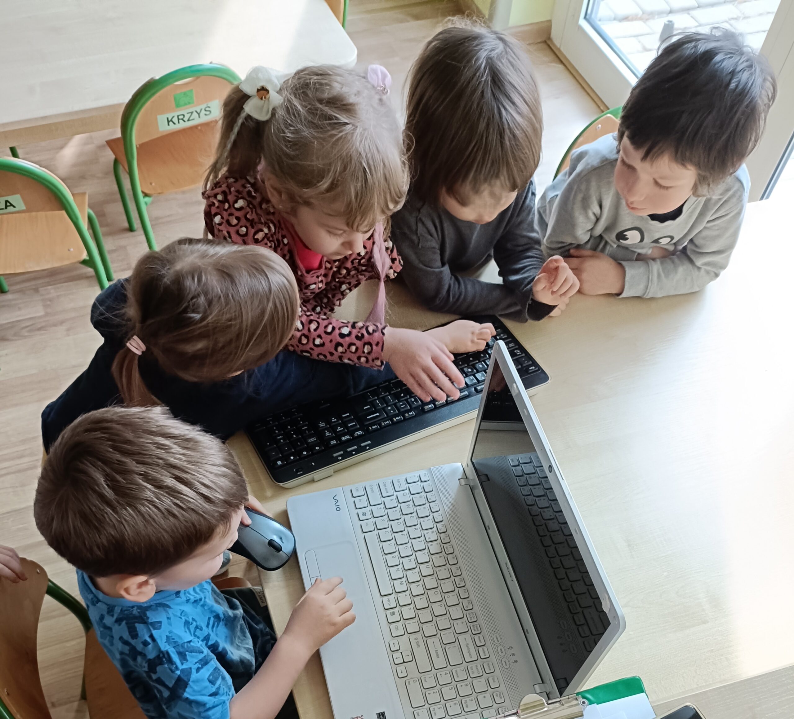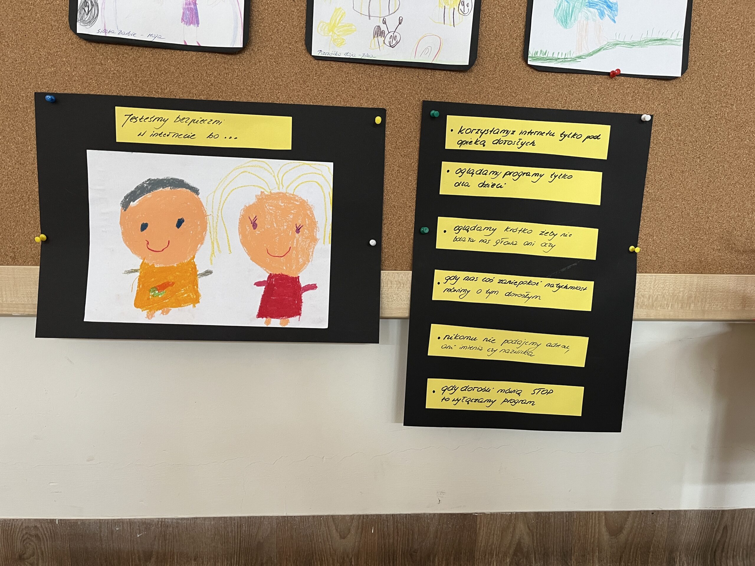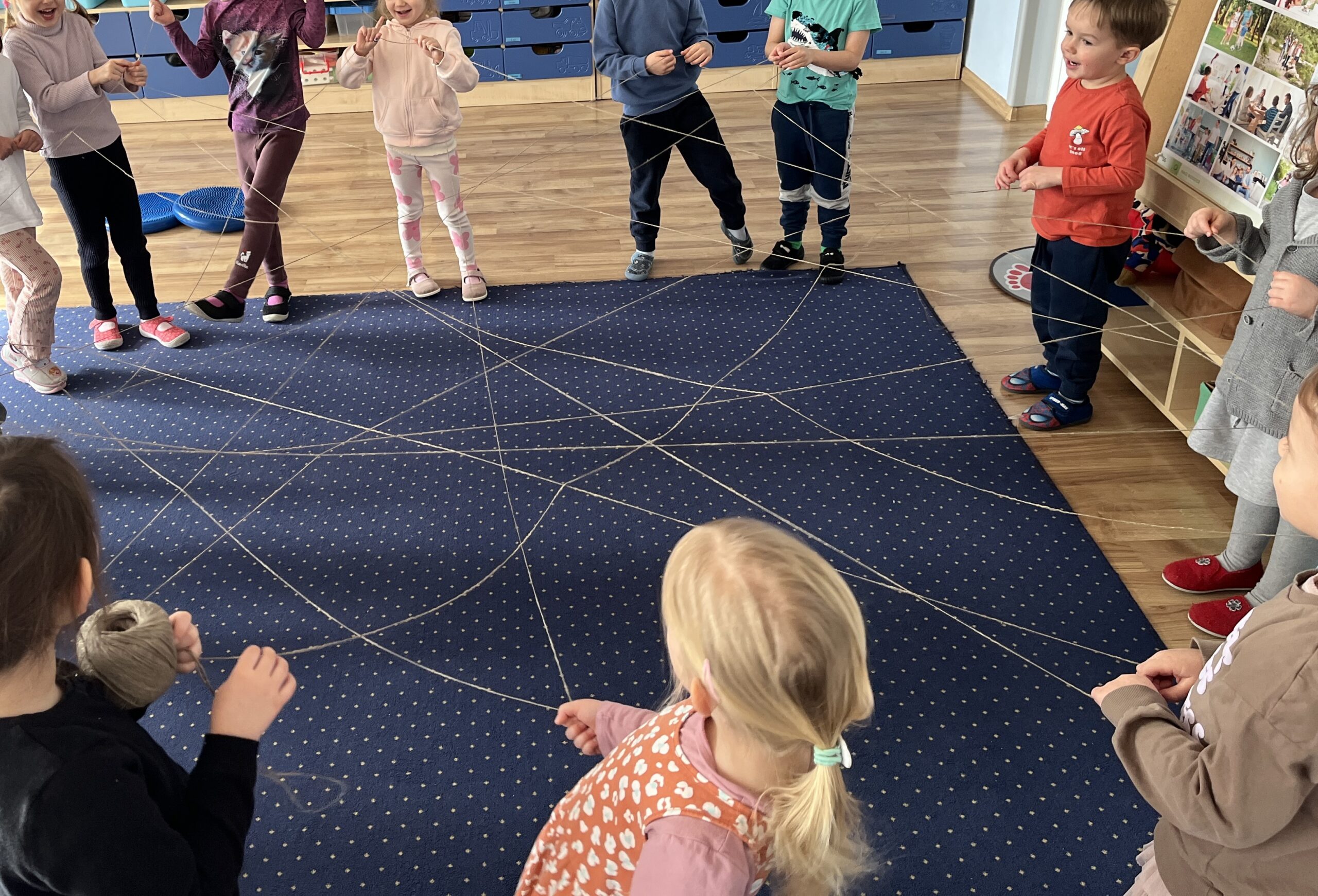 Podczas zabawy dramowej  „Życzenia z kłębkiem wełny” zrobiły wizualizację sieci i dowiedziały się, że mniej więcej tak na dużej odległości przesyłamy sobie wiadomości przez internet. Zapamiętały że z Internetu mogą korzystać wyłącznie pod opieką dorosłych, przez określony czas i oglądać treści dostosowane do ich wieku. Utrwalały zachowania jak radzić sobie w sytuacji, gdy coś Je zaniepokoi. W tygodniu poświęconemu bezpieczeństwu w Internecie obejrzały teledysk do piosenki „Z internetem świat jest bliski” oraz uczestniczyły w gimnastyce prowadzonej przez bohaterów yutuba –  Z Lamą  I Krokietem.