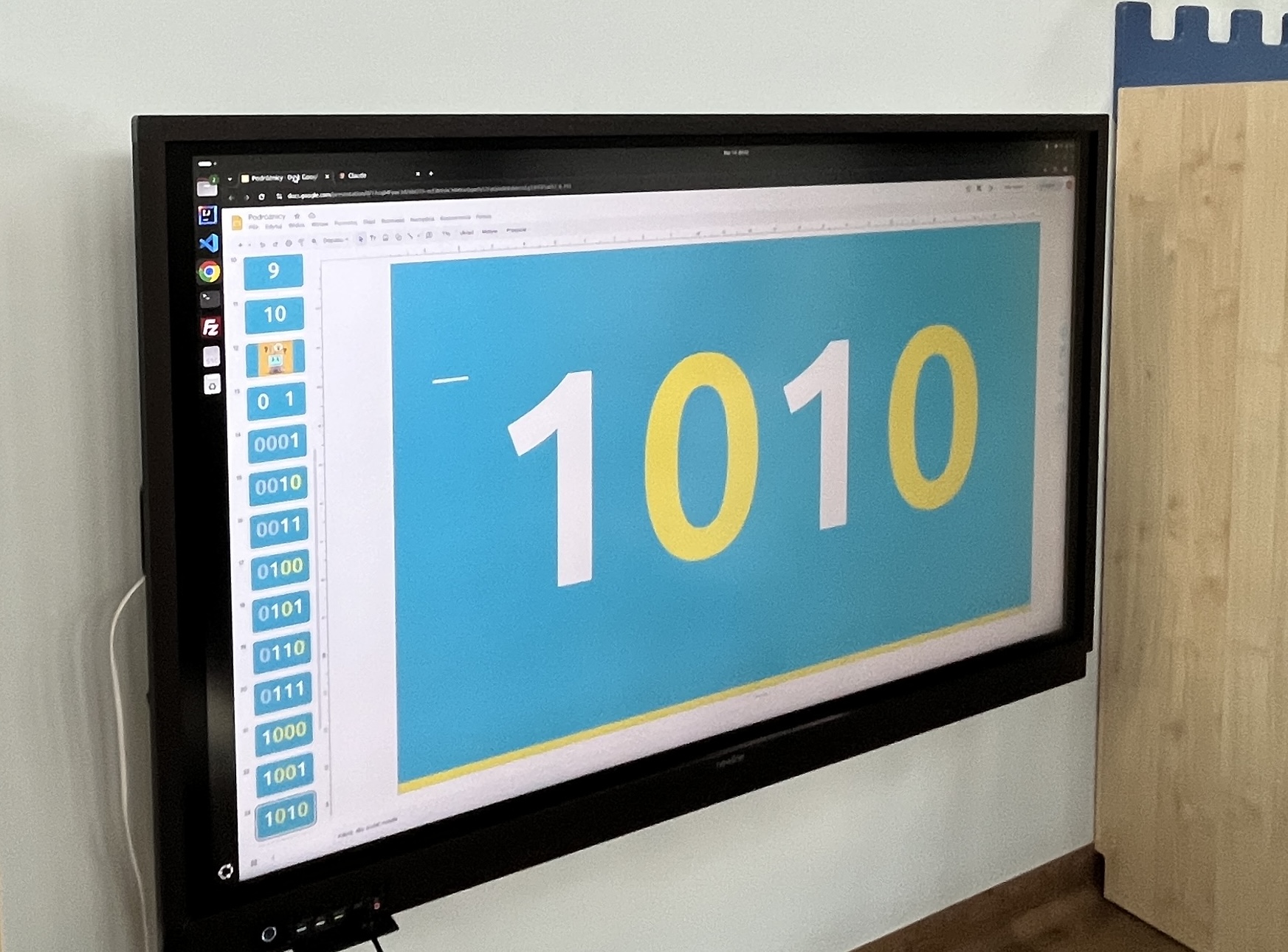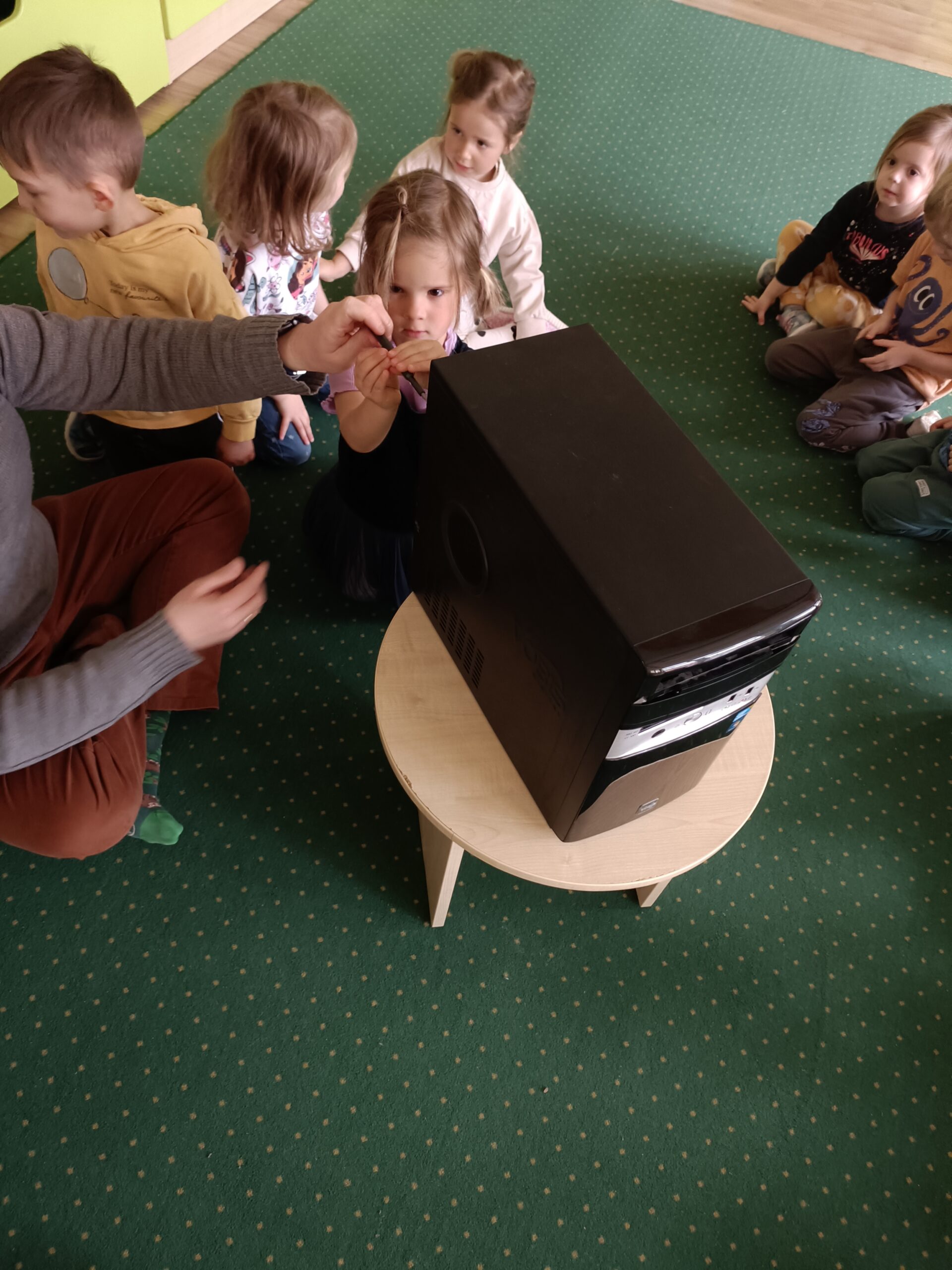 Podróżnicy również gościli na zajęciach  tatę informatyka. Podczas spotkania dowiedzieli się jak działa komputer. Przedszkolaki przeliczały do 10 oraz wspak a następnie poznały ‘komputerowe’ cyfry. Dowiedziały się, że każdy obraz, dźwięk a nawet litery zapisane są kodem przy pomocy zer i jedynek. Oglądały płytę główną komputera oraz bawiły się z klawiaturą. Miały okazję rozmawiać z lokalnym modelem językowym oraz z czatem GP