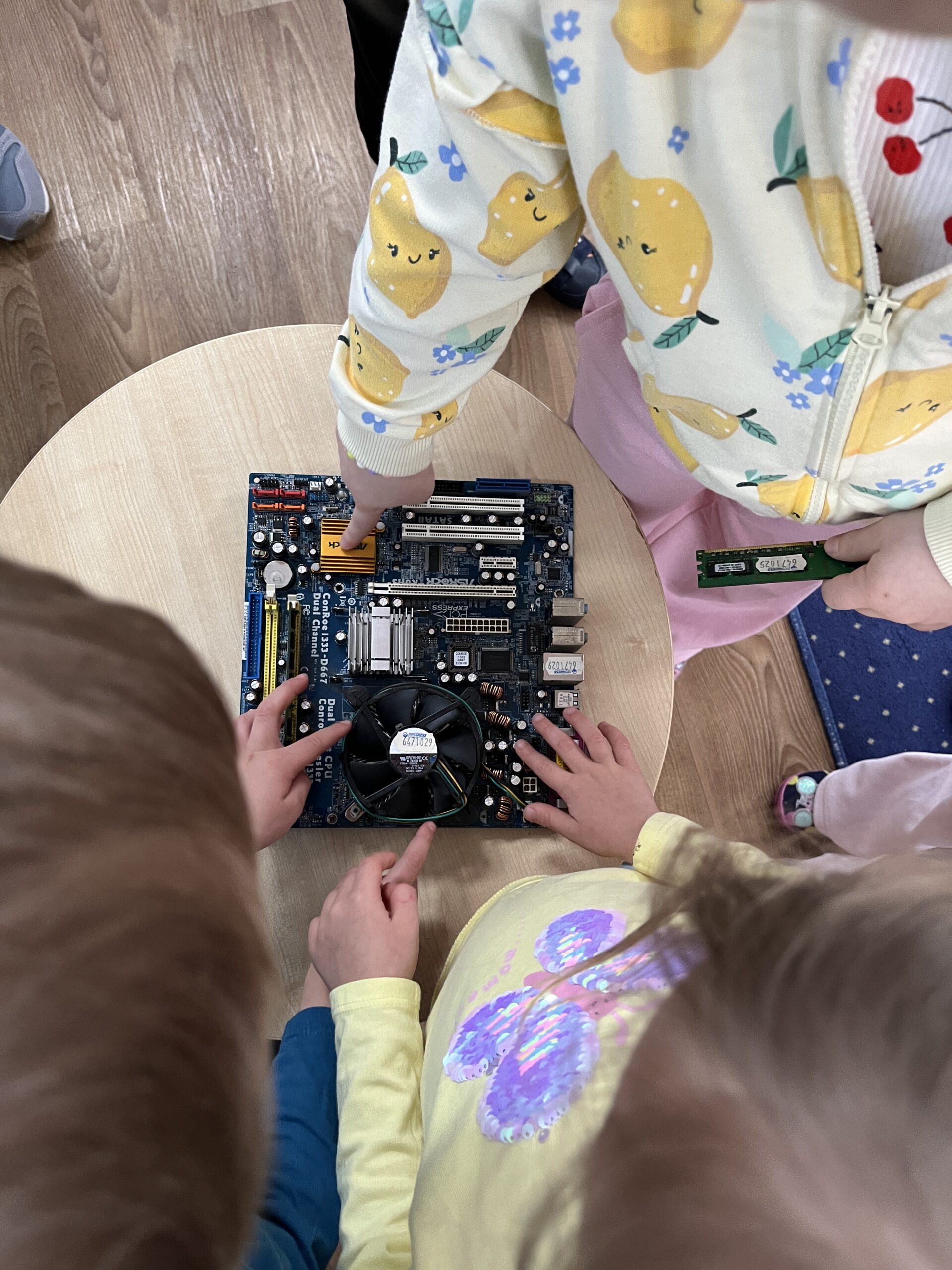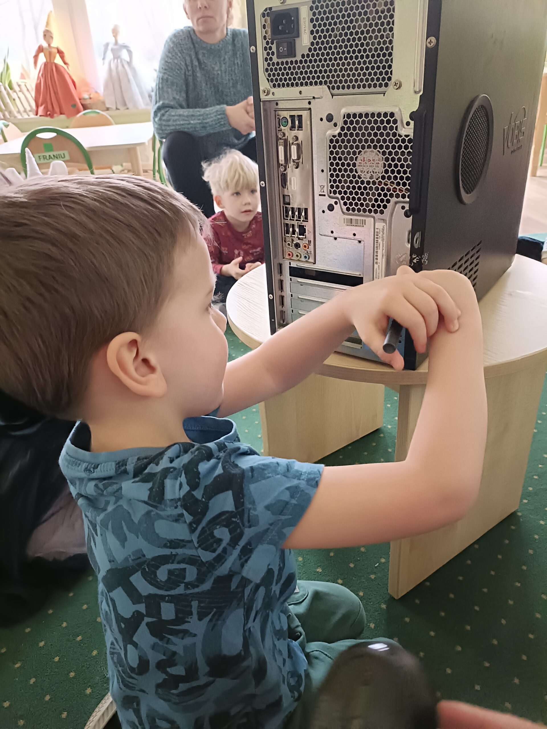 Z tej okazji Tropicieli odwiedził Tata Stasia. Opowiedział dzieciom ciekawostki o komputerach: jak wyglądały dawniej, a jak dzisiaj. Przedszkolacy mieli okazję rozkręcić komputer i zerknąć jak wygląda w środku, co dokładnie się tam znajduje. Uczyli się języka komputera, zrozumieli, jak działa pamięć. Zajęcia spotkały się z dużym zainteresowaniem przedszkolaków. Dziękujemy za inspirujące spotkanie!