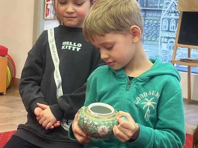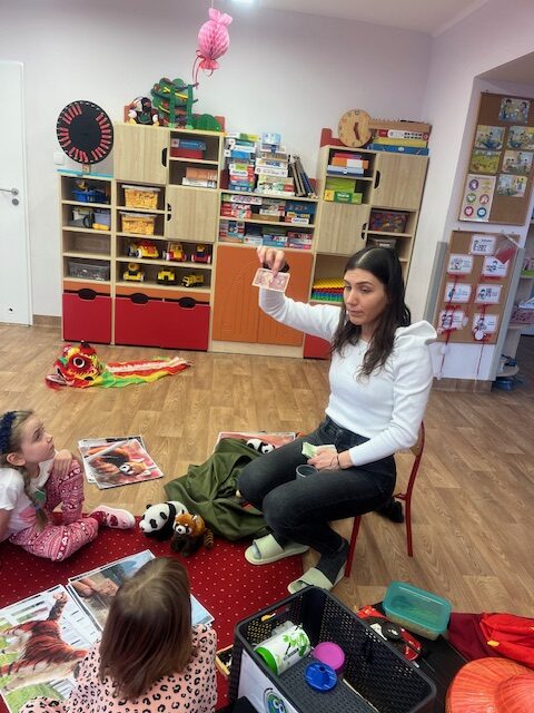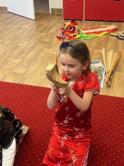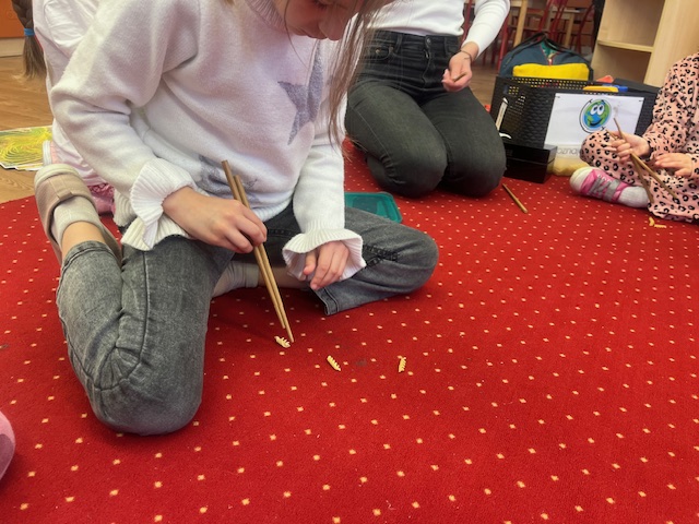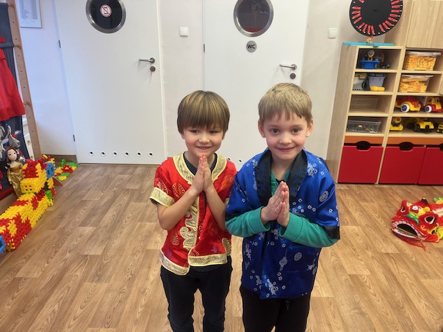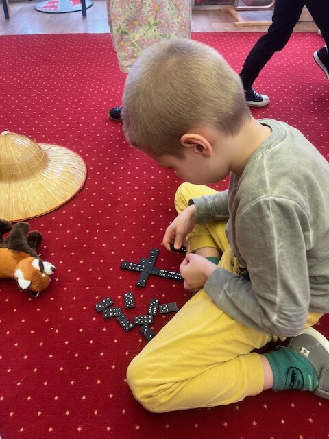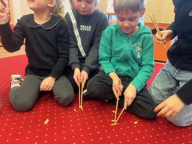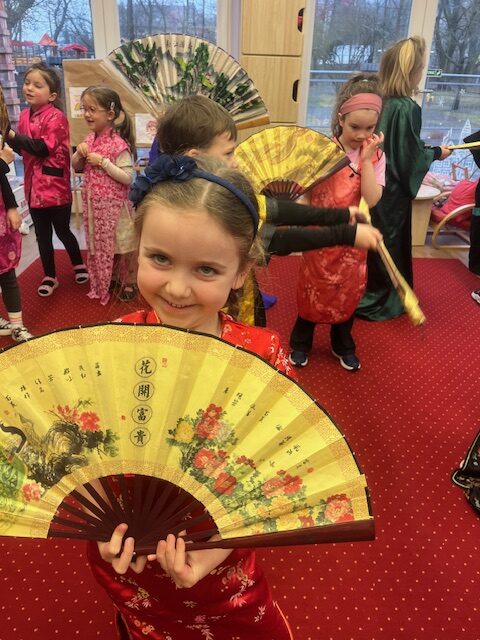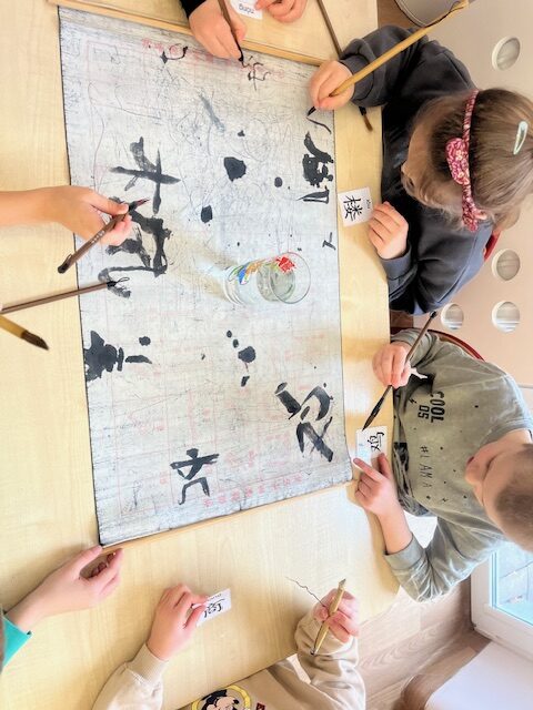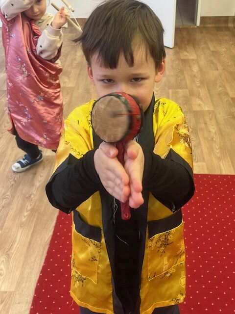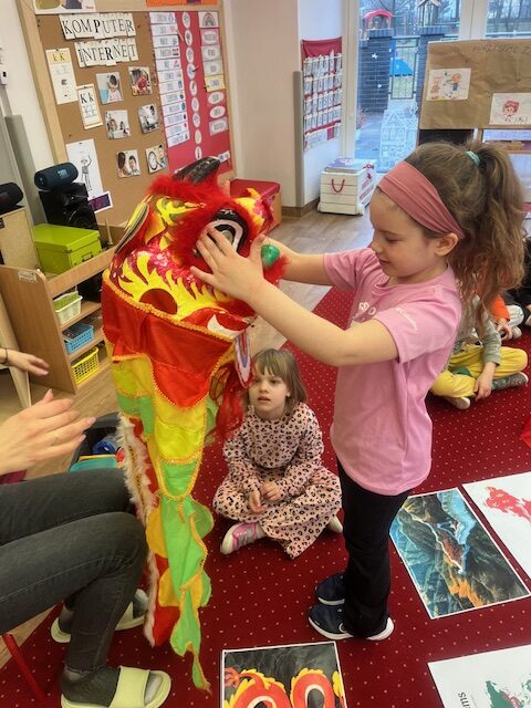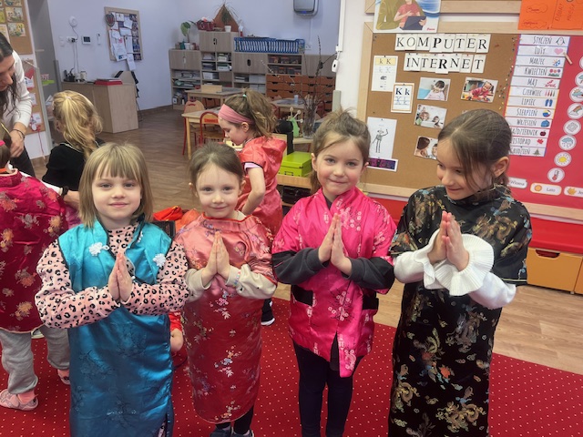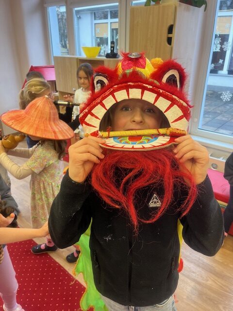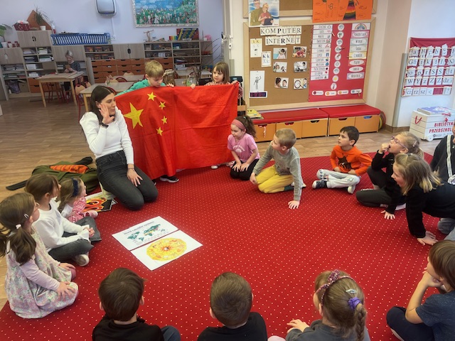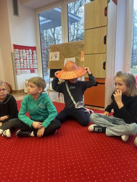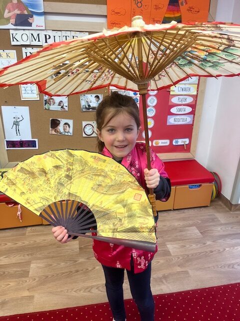 w grupie Badaczy odbyły się warsztaty: „Chińskie Wynalazki” podczas których dzieci miały okazję poznać troszeczkę historii i tradycji Chin, nauczyć się kilku zwrotów oraz nazwy liczb po chińsku. Dowiedziały się również jakie popularne używane dzisiaj przez nas rzeczy wymyślili Chińczycy, spróbowali operować oryginalnymi chińskimi pałeczkami, przymierzali chińskie tradycyjne stroje, pooglądali kolorowe parasolki i wachlarze. Przedszkolaki poznały również podstawowe zabawki wynalezione w Chinach. Chińskich zabaw nie było końca.