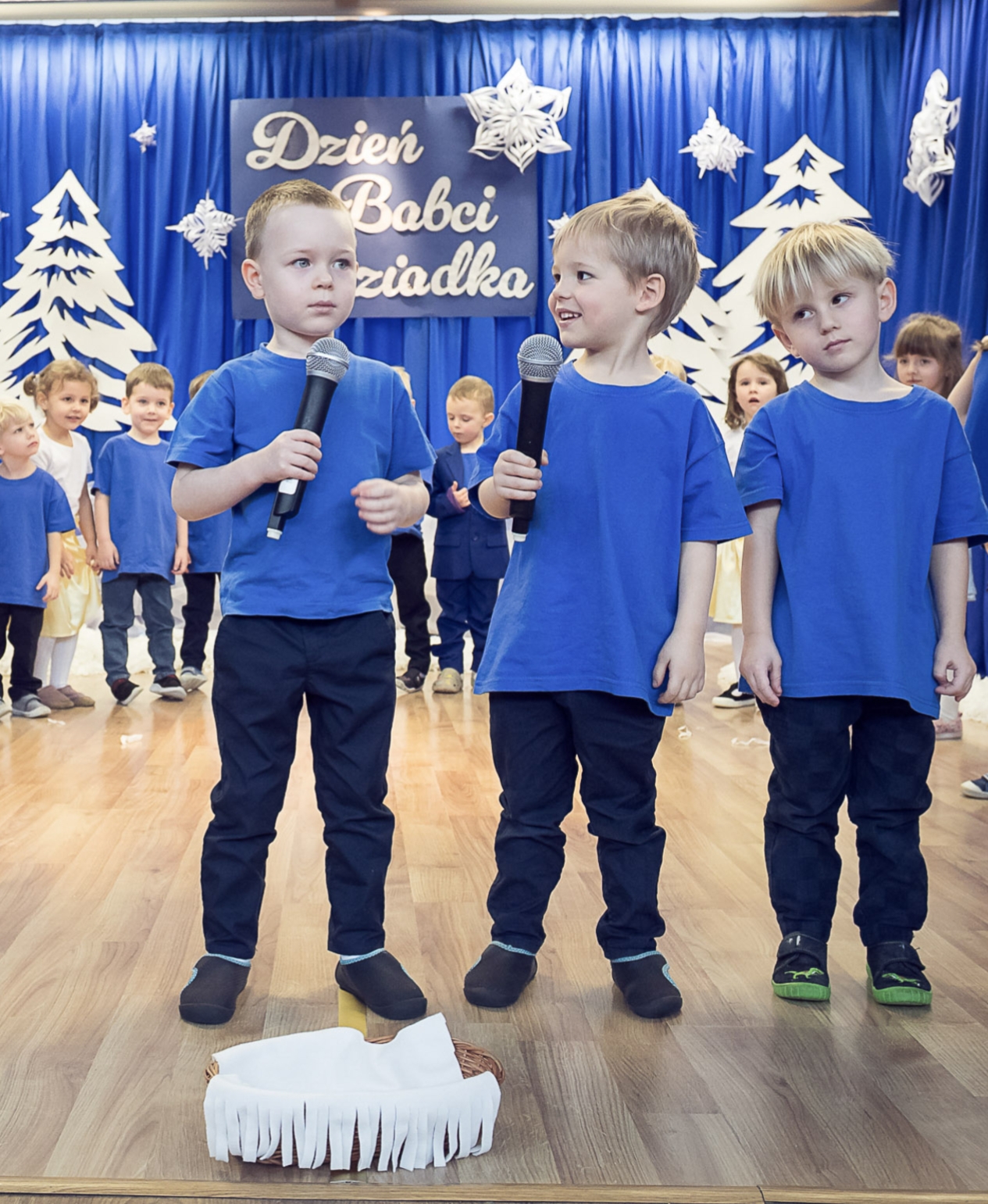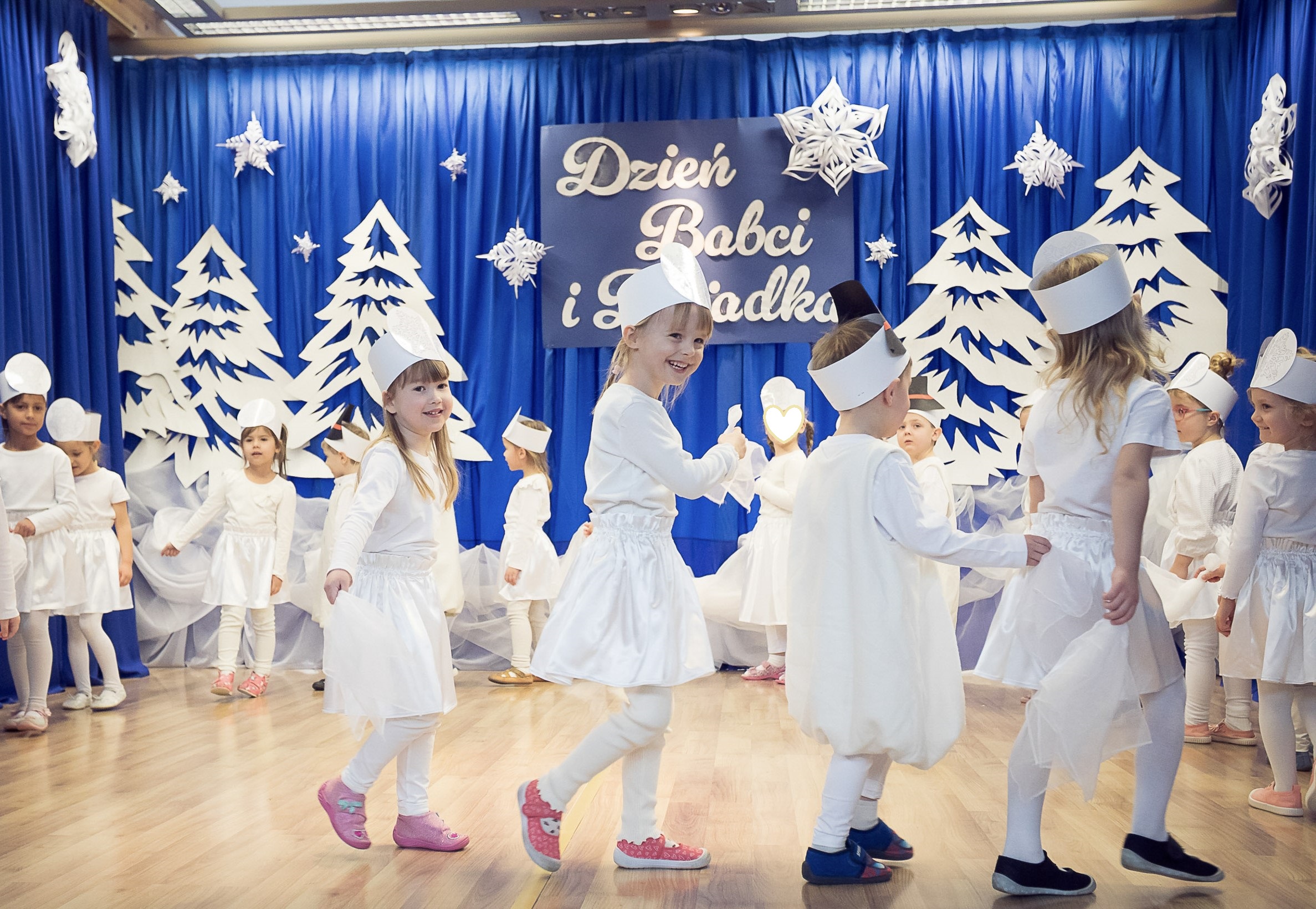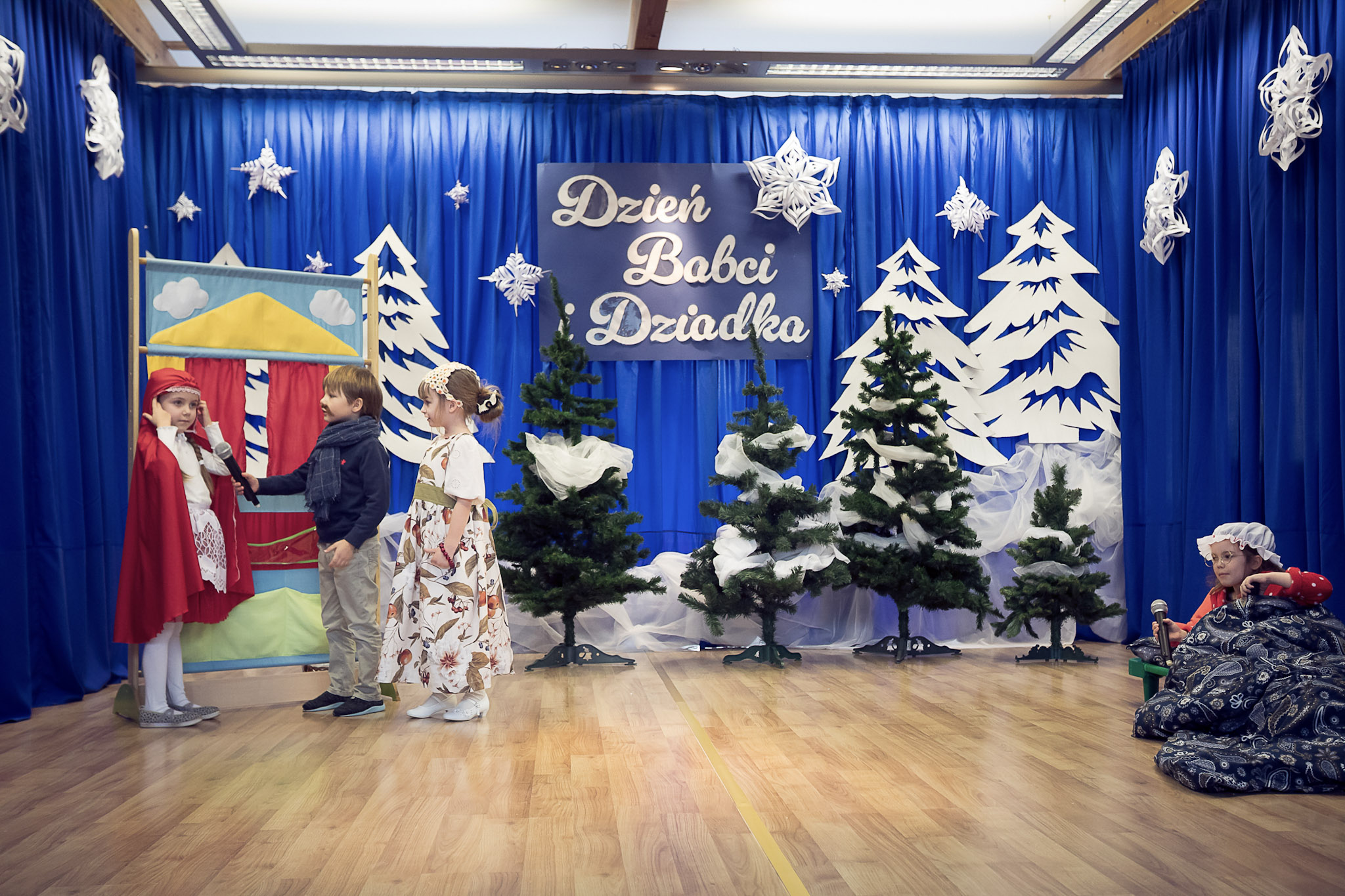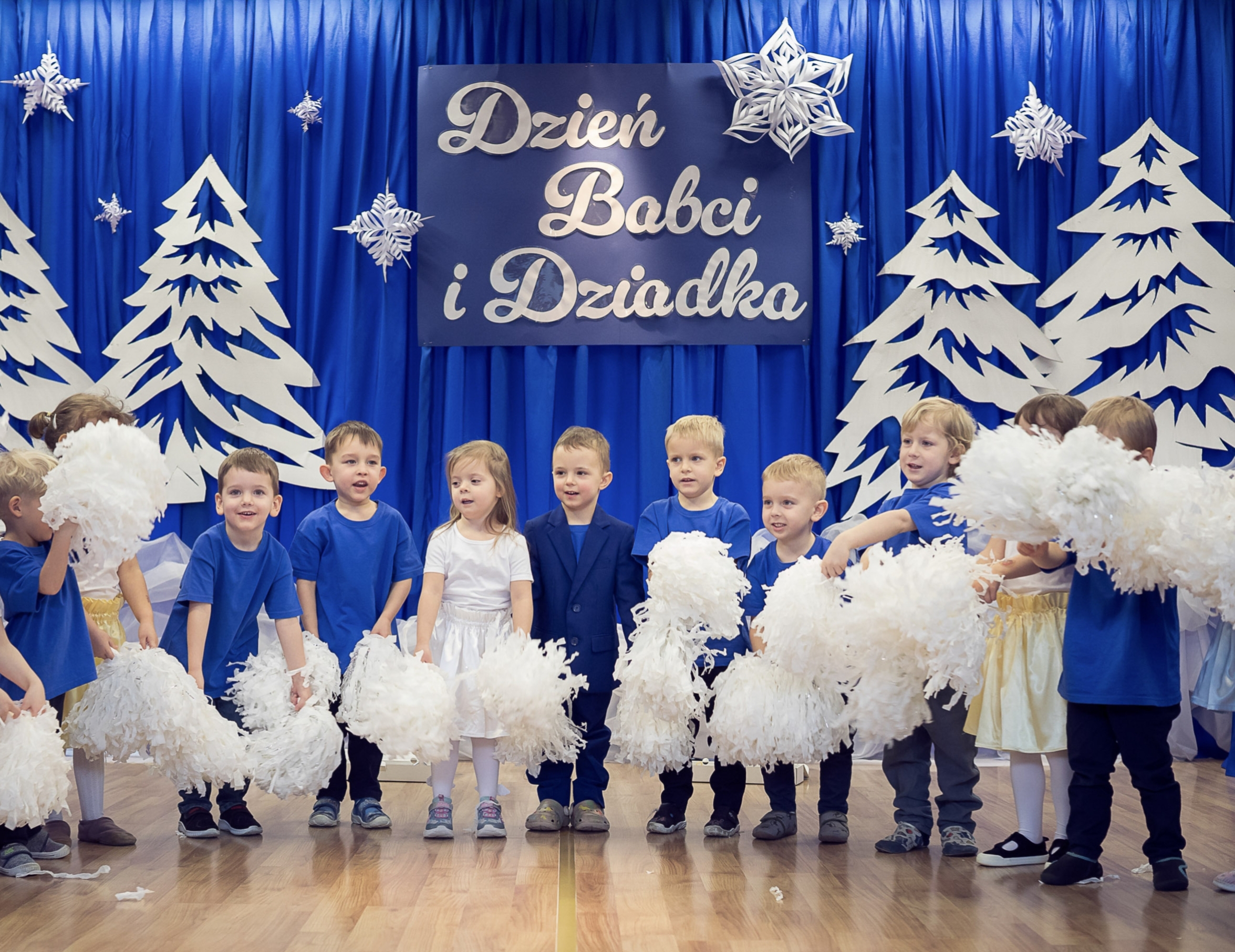 W przedszkolu od samego rana dzieci nie mogły doczekać się wyjątkowych Gości. To dla Nich od serca śpiewały radosne piosenki, przygotowały tańce ze śnieżynkami i bałwankami a nawet przedstawiły zimową wersję Czerwonego Kapturka. Nie brakło wierszy z podziękowaniami za babciną i dziadkową miłość oraz życzeń 100 lat życia w zdrowiu i radości. Zwieńczeniem uroczystości były niespodzianki wykonane przez dzieci oraz słodki poczęstunek przygotowany przez rodziców.
