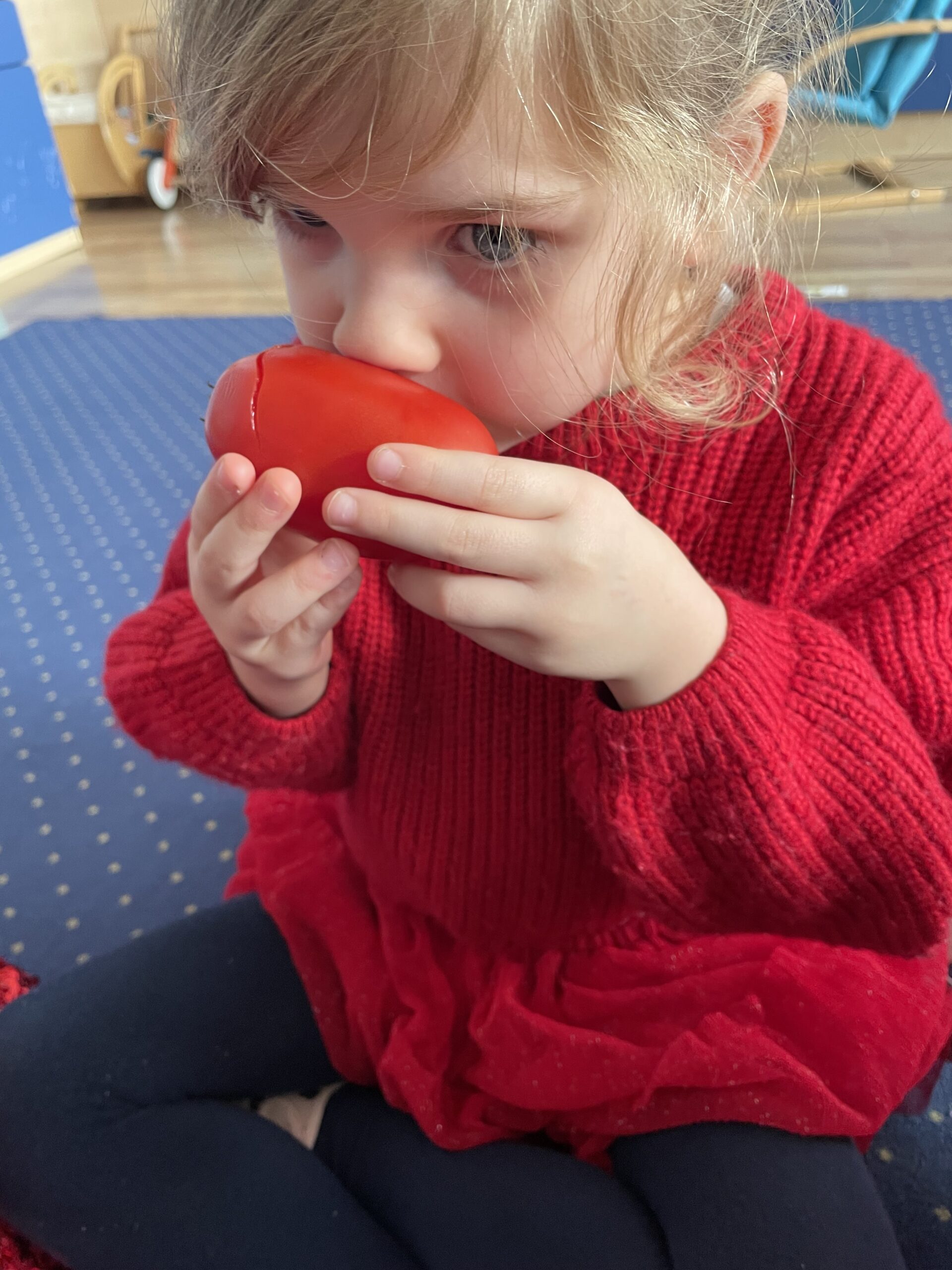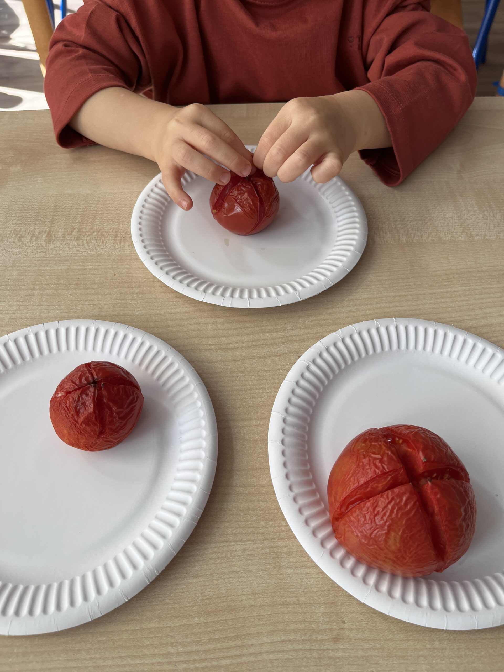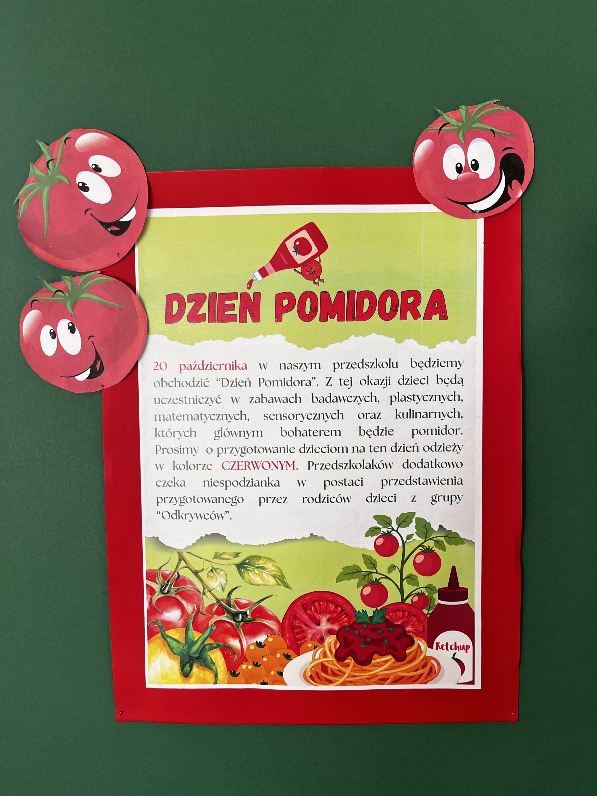 Tej jesieni 20.10.2025 świętowaliśmy „Dzień Pomidora”. Cała społeczność przedszkolna ubrana była na… czerwono! Z okazji święta tego smacznego warzywa rodzice z grupy „Odkrywców” przygotowali przedstawienie dla wszystkich dzieci, a w każdej grupie odbyły się ciekawe i inspirujące zajęcia kulinarne, plastyczne, badawcze lub sensoryczne.