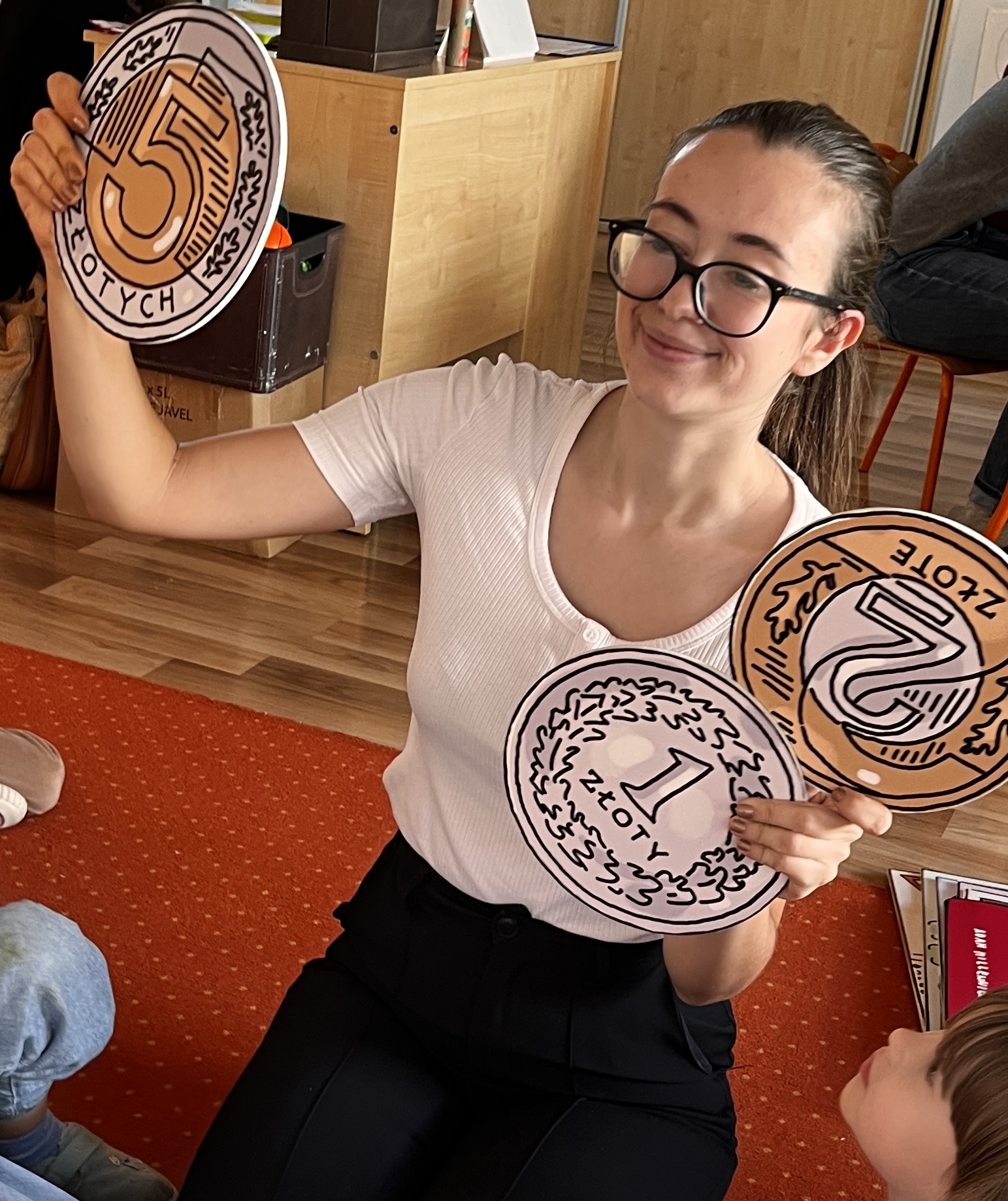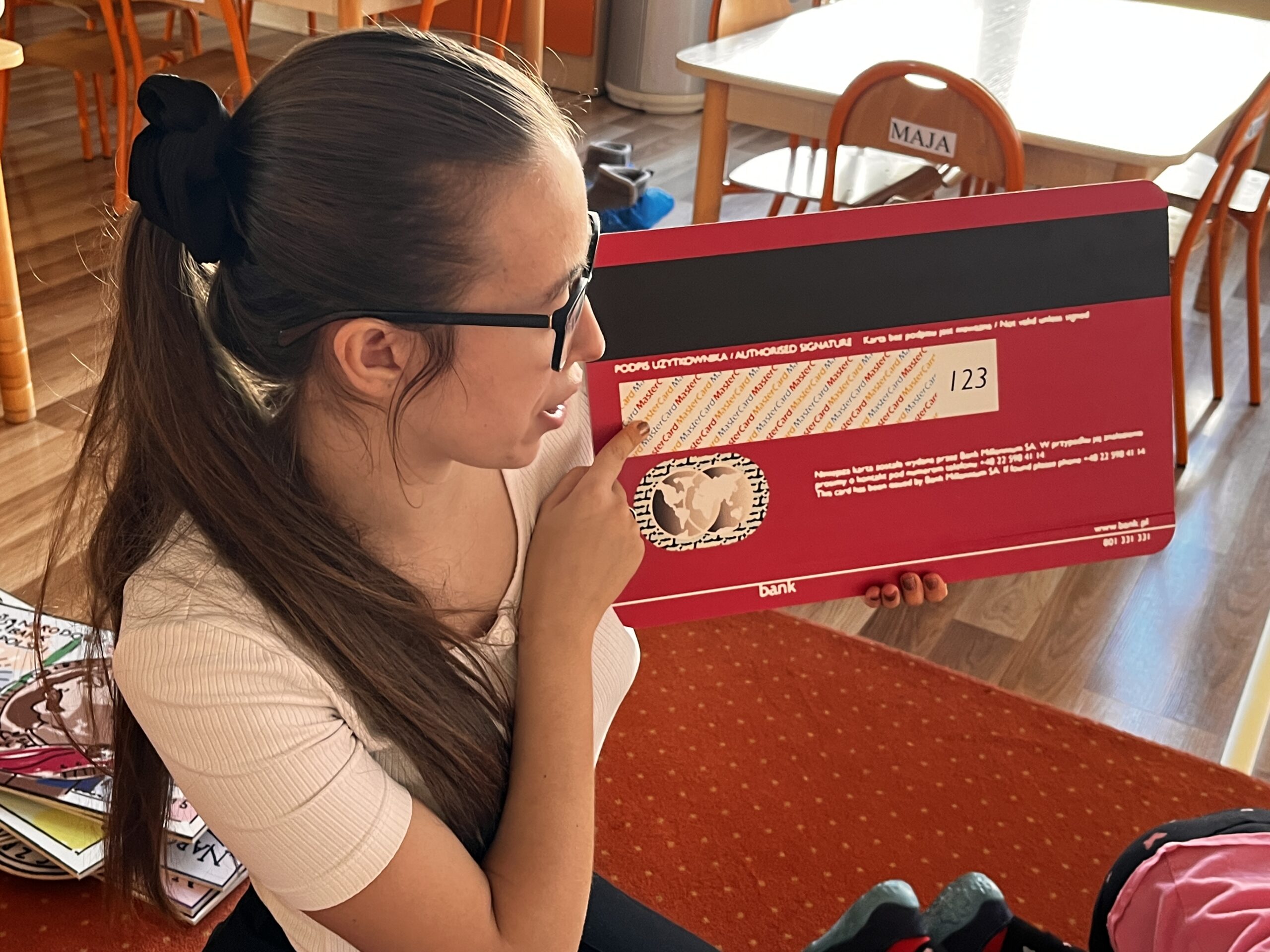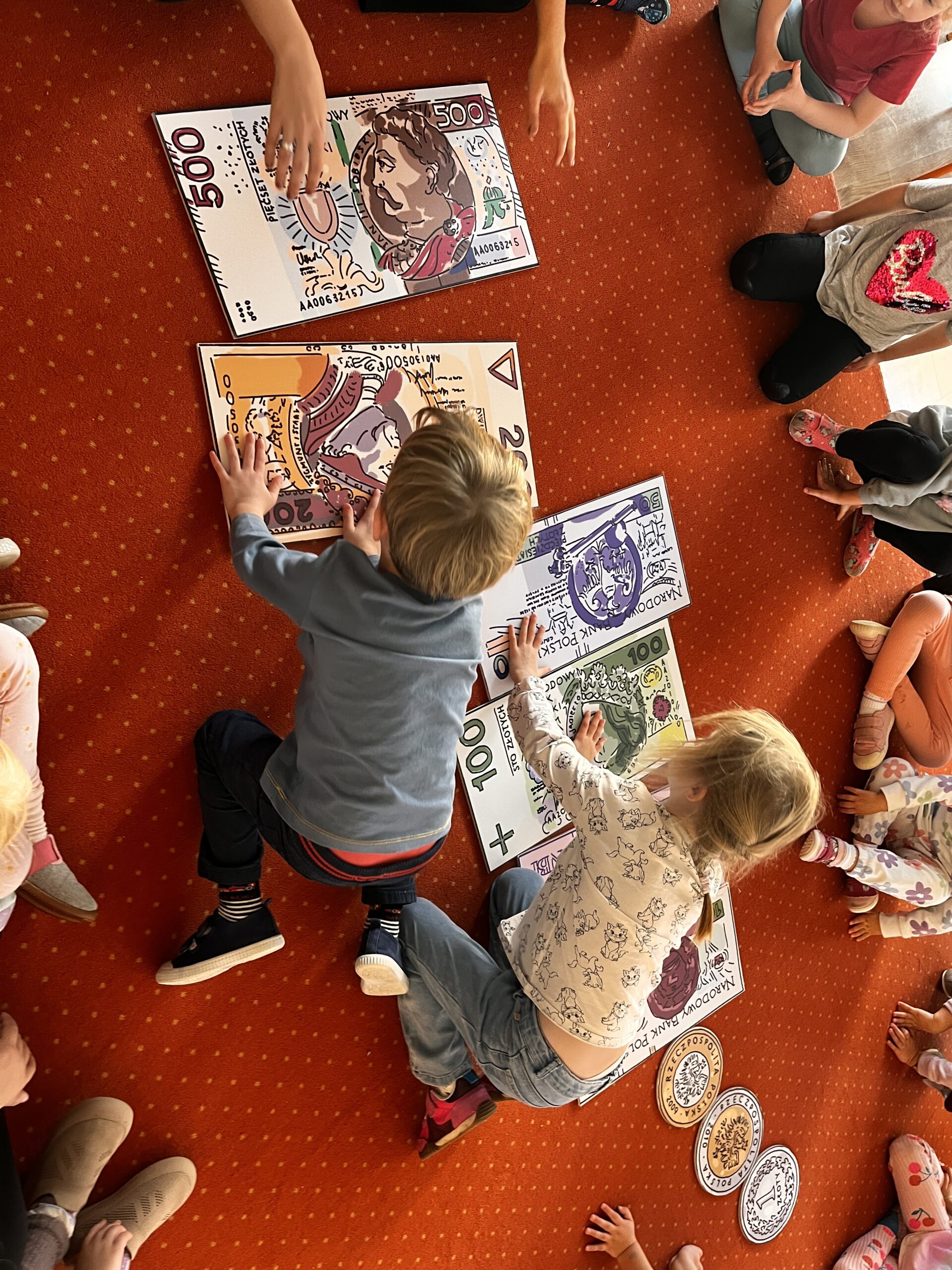 największego do najmniejszego nominału. Poznały też nowoczesne formy płatności – kartą, telefonem i pierścionkiem. Razem z maskotką Panem