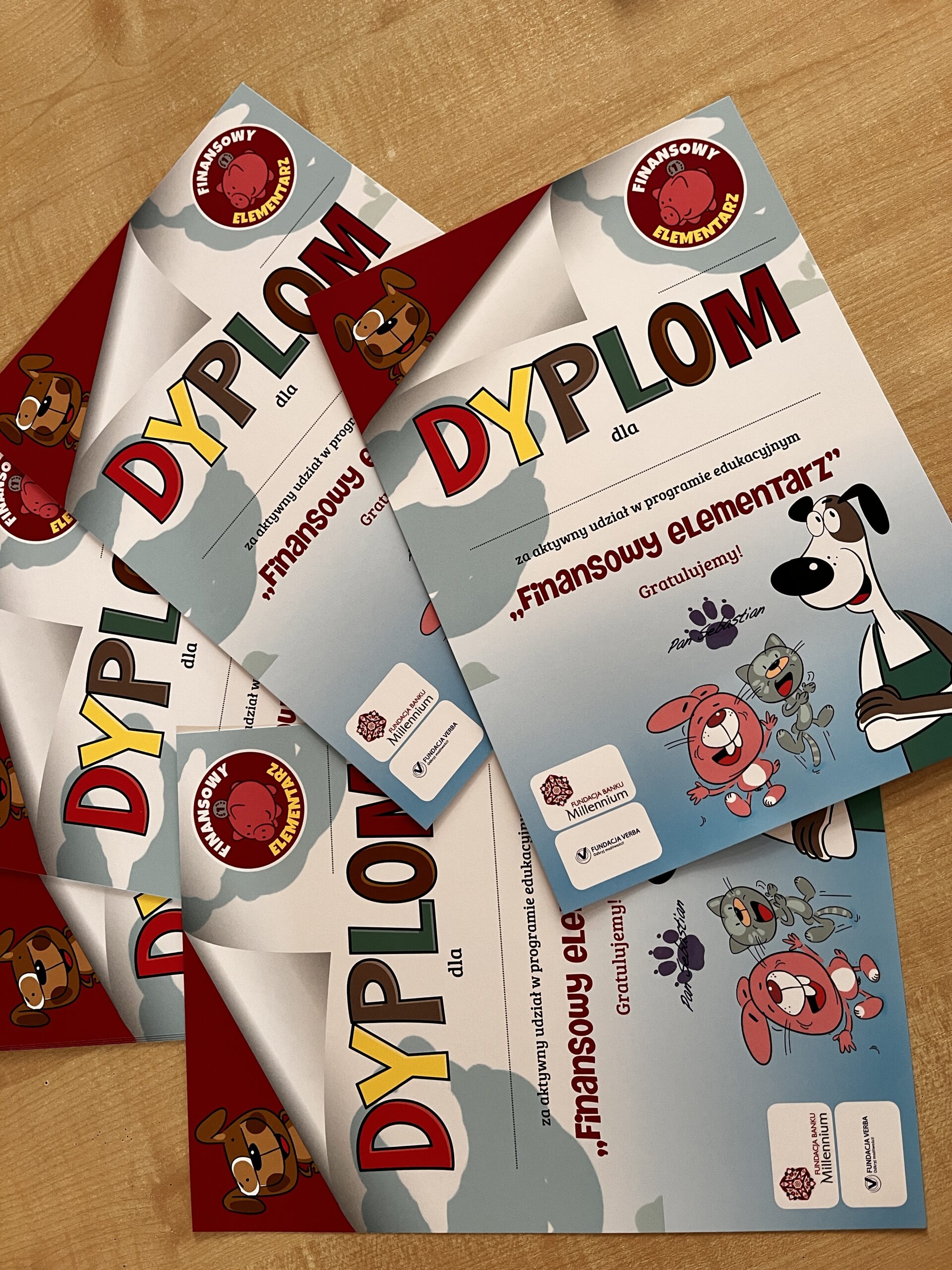 rozwijania świadomości finansowej otrzymał dyplom i książeczkę do domu.