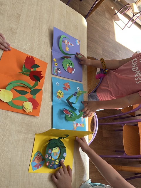 Podróżnicy realizują różne aktywności, m.in.: – sadzą podarowane przez Rodziców kwiaty na tarasie znajdującym się przy sali; – grają w hokej i piłkę nożną na bezpiecznych, przedszkolnych boiskach; – przygotowują wiosenne kanapki; – przygotowują tarte jabłka na deser; – działają na zajęciach ceramicznych; – uczestniczą w warsztatach prowadzonych przez członków Rodzin, warsztaty „U Pszczelarza” – „Drewno – warsztaty sensoryczne”