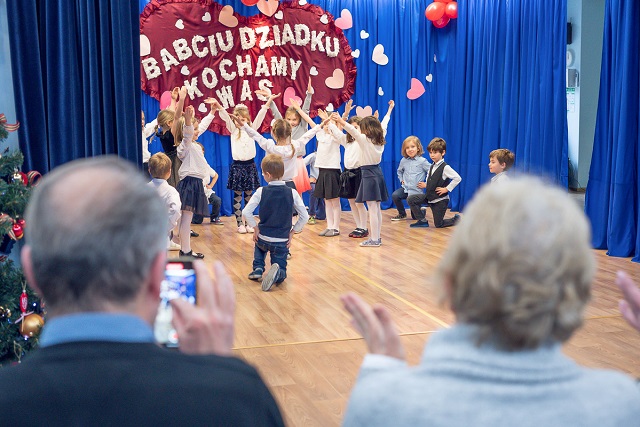 26 stycznia 2023 r. wszystkie Przedszkolaki z naszego przedszkola przygotowały przepiękne występy dla Kochanych Babć i Kochanych Dziadków. Przedstawienia i prezenty bardzo spodobały się zaproszonym Gościom. Pochwał, uścisków i całusków nie było końca. Wszystkim Paniom również dostały się piękne słowa podziękowania za przygotowanie dzieci. Po występie odbył się poczęstunek dla Artystów i Solenizantów, przygotowany przez Rodziców. Z serca dziękujemy za wspaniałą współpracę.