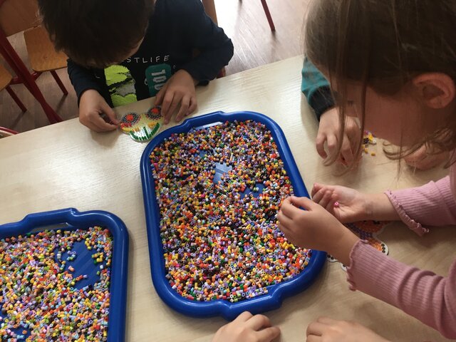 „Międzynarodowy Dzień Kropki” obchodzony jest na całym świecie 15 września. Jest to święto, które ma na celu pobudzanie kreatywności, pomysłowości, talentu i odwagi w pokonywaniu trudności. W tym dniu Badacze wysłuchały opowiadania „The Dot”, którą napisał Peter Reynolds. Jest to historia dziewczynki, która dzięki małej kropce zmieniła myślenie o sobie i uwierzyła we własne możliwości. Przedszkolne zabawy też związane były z kropkami; dzieci umieszczały w otworkach tyle kołeczków z kropkami ile oczek wskazywała ściana kostki; łączyły spinaczami pola z tą samą ilością kropek i z odpowiednią cyfrą; kropkowe były w tym dniu szlaczki wykonane patyczkiem kosmetycznym a prace plastyczne to małe kropkowe arcydziełka. Powstały z maleńkich niczym kropki – koralików, nakładanych na formę. Choć nie było to łatwe, przedszkolaki rozwijały w sobie poczucie sprawstwa i były bardzo dumne ze swoich prac.
