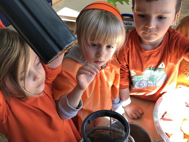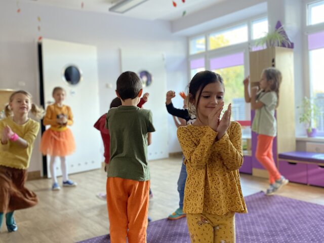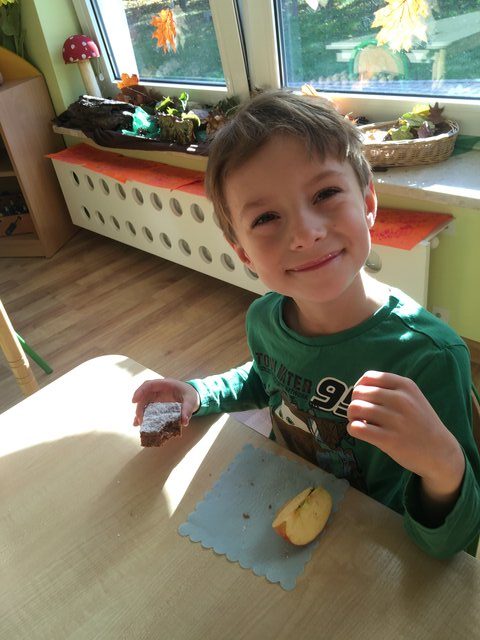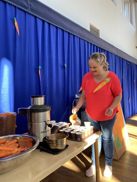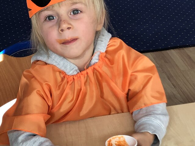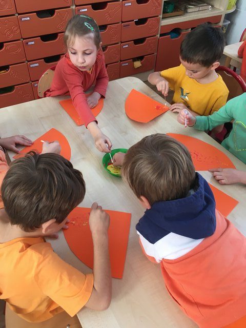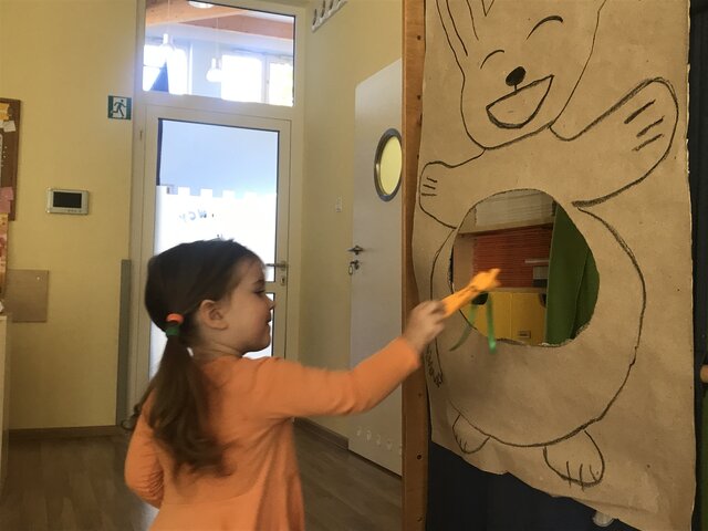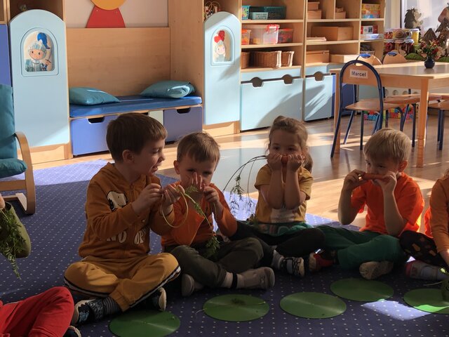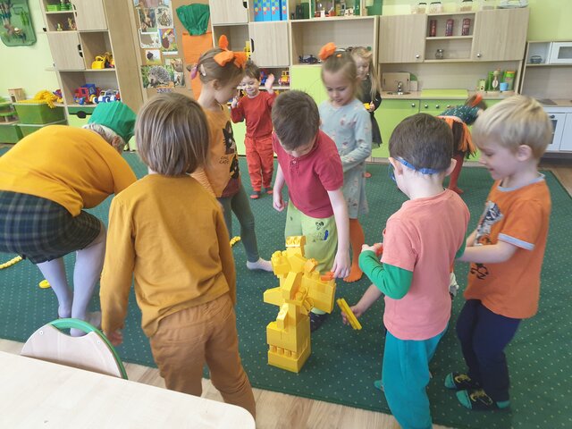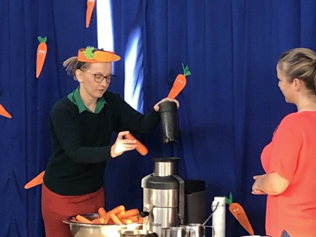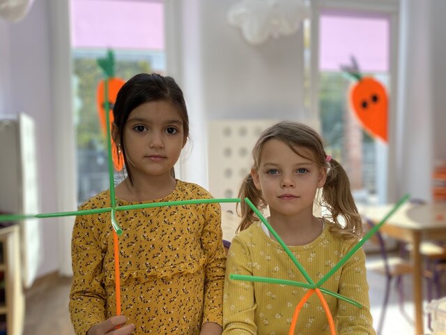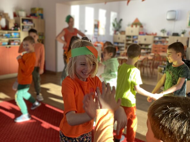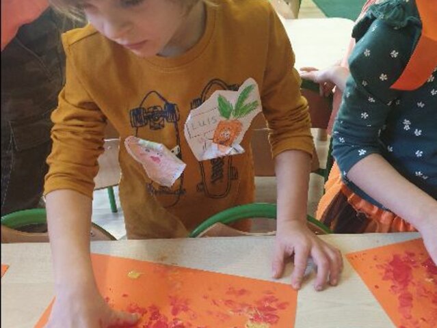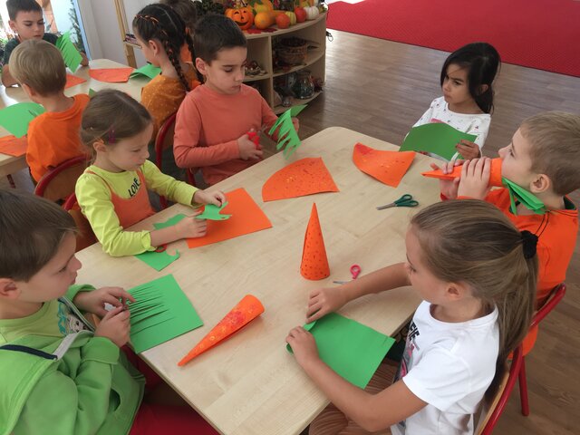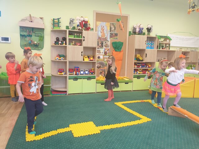 Marchewkowy zawrót głowy – taki plakat powitał wszystkich wchodzących do przedszkola i był zapowiedzią zabaw i smakołyków związanych z tym warzywem. Całe przedszkole przystrojone było w marchewkowe ozdoby. A dzieci, poprzebierane w pomarańczowe stroje, chętnie chrupały marchewki podczas śniadania, uczestniczyły w przygotowaniu i degustacji soku, jadły marchewkowy obiad i ciasto. Zajęcia w tym dniu pełne były wesołych zabaw: były tańce, zawody sportowe, rzut marchewką, konkurs na marchewkowe budowle i ozdoby oraz zdjęcia w marchewkowej foto budce. A dla rodziców przygotowano na gazetce propozycje marchewkowego menu.