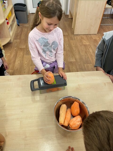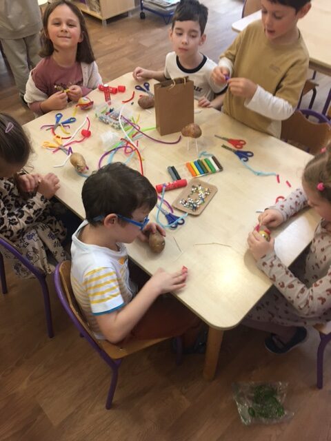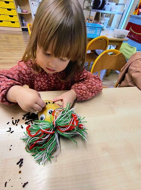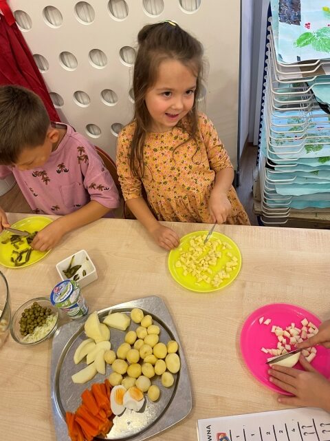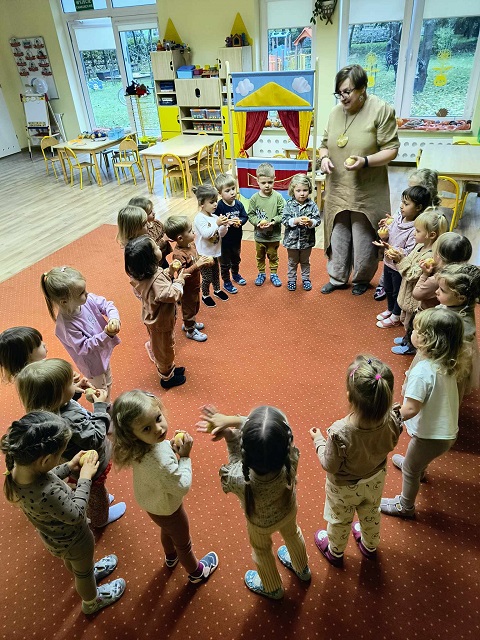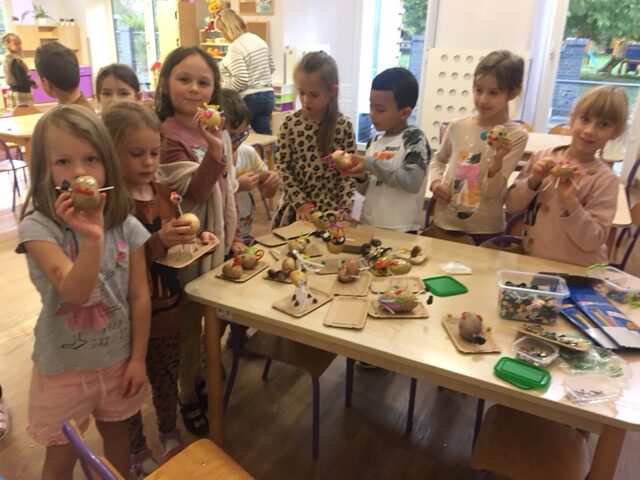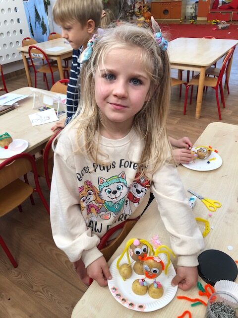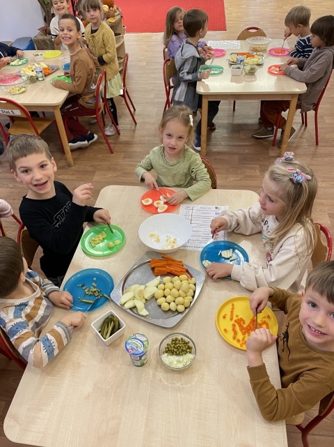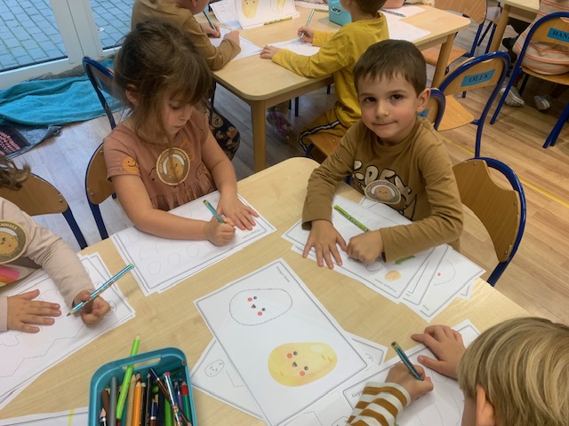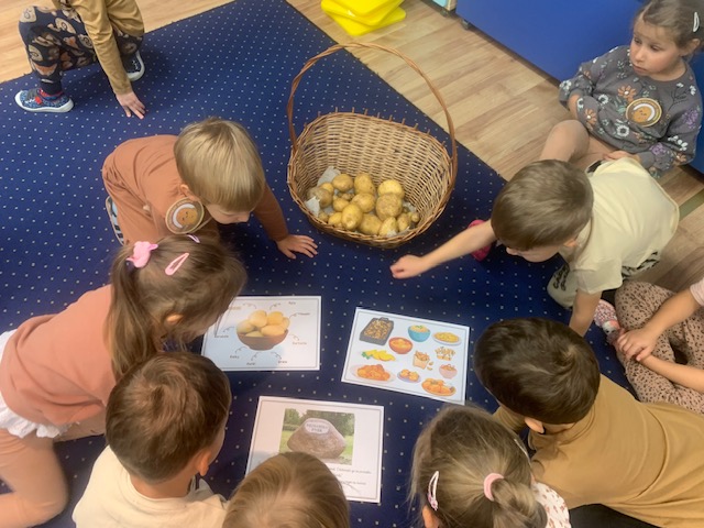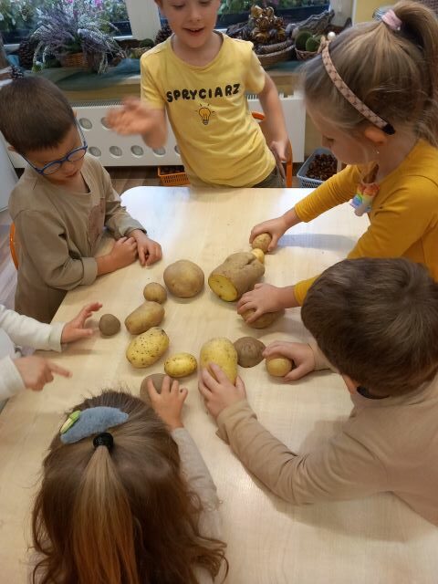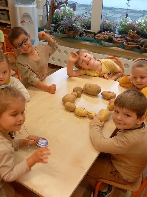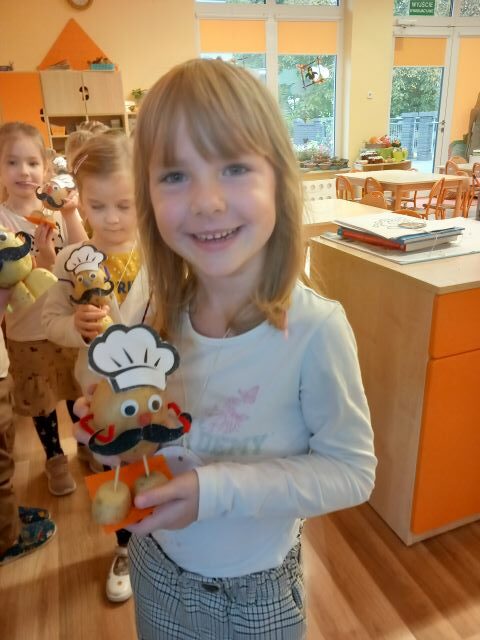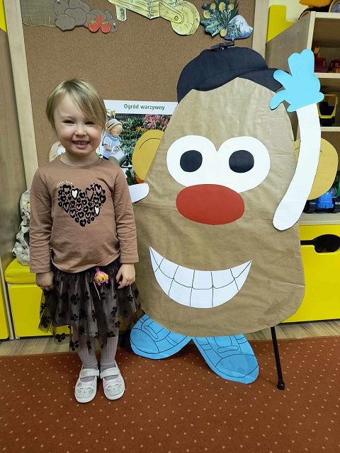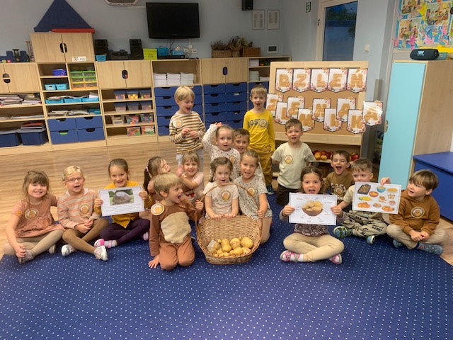 25 października w Naszym przedszkolu obchodziliśmy „Dzień ziemniaka”. Z okazji tego święta poznaliśmy różne odmiany ziemniaków, opowiadaliśmy o przeróżnych potrawach, które mogą powstać z tego warzywa oraz o jego znaczeniu w codziennej diecie. Ten dzień umiliły przedszkolakom różne gry i zabawy z wykorzystaniem ziemniaków. Nie zabrakło również kreatywnych prac plastycznych, które można było podziwiać w przedszkolnej szatni. Dzieci miały również możliwość skosztowania dań z ziemniaków, a w szatni pojawił się wesoły ziemniak, z którym można było zrobić sobie zdjęcie.