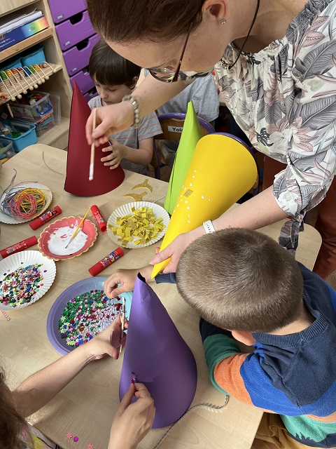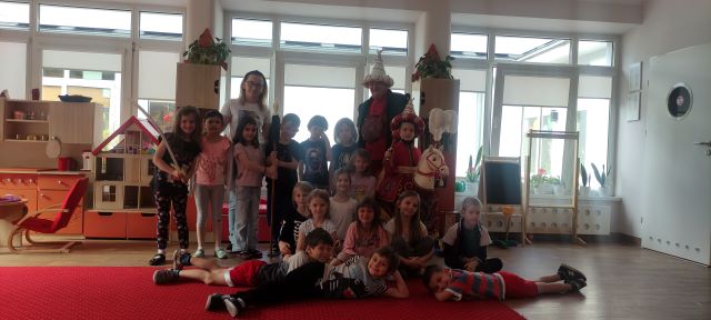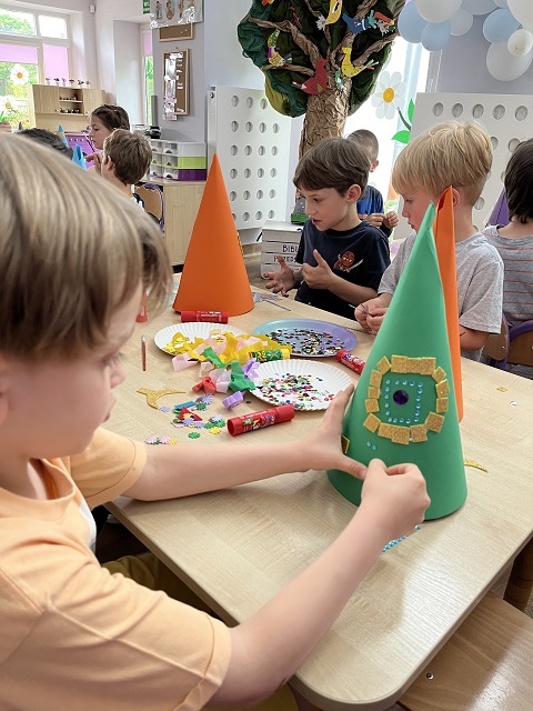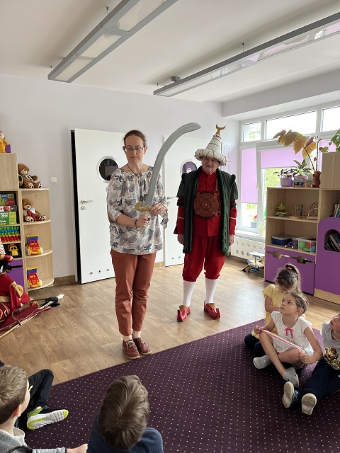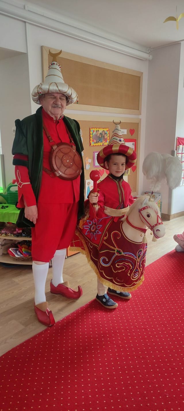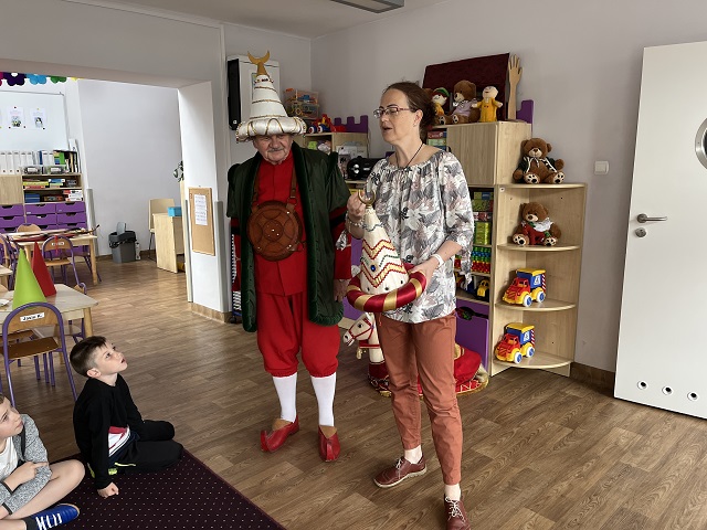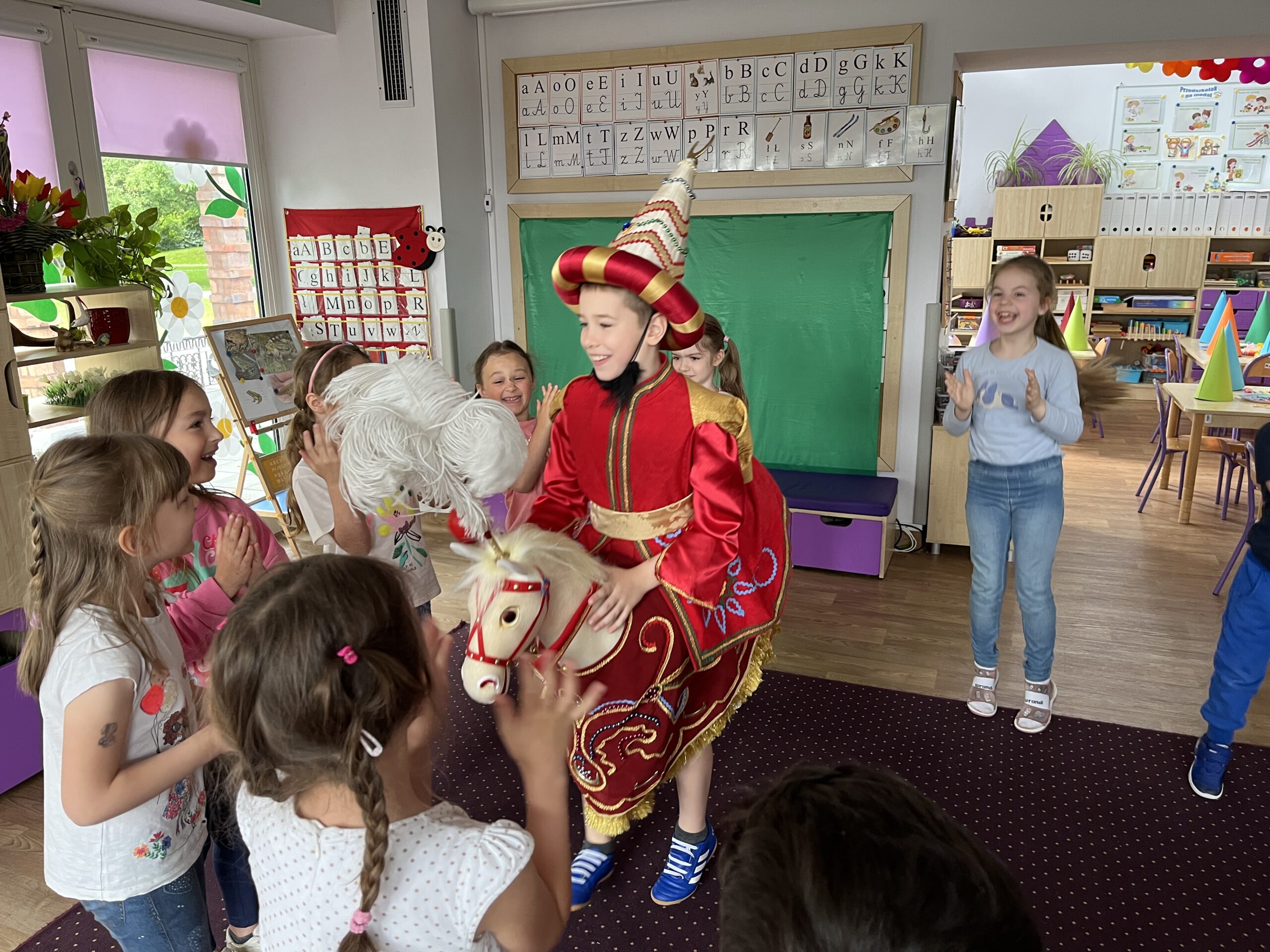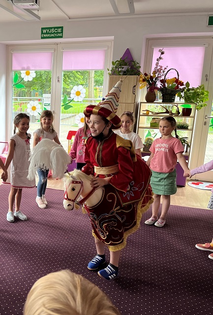 Na początku czerwca 2023 r. w naszym przedszkolu odbyły się warsztaty edukacyjne dotyczące Pochodu Lajkonika. Podczas spotkania dzieci poznały legendę i tradycję Lajkonika, a następnie zabawiły się harcując wesoło z jednym z chłopców przebranych za tatarskiego wodza. Przedszkolaki zapoznały się również z krakowską muzyką ludową i tańcem. Na koniec odbyły się warsztaty plastyczne, gdzie dzieci pod opieką Pani z Muzeum Krakowa wykonały czapki tatarskie zdobione na wzór oryginalnych. W tym dniu wszystkie dzieci zostały zaproszone do udziału w tradycji pochodu, który zaplanowany został na 15 czerwca. Serdecznie dziękujemy za możliwość udziału w tak ciekawych i pięknych warsztatach.