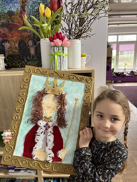 Natomiast Alicja Dyląg została wyłoniona z grupy Myślicieli by reprezentowała przedszkole portretem Królowej Jadwigi w międzynarodowym konkursie historyczno-plastycznym.