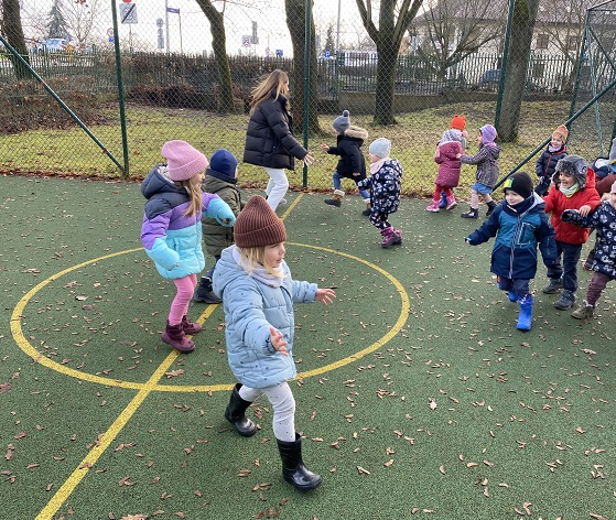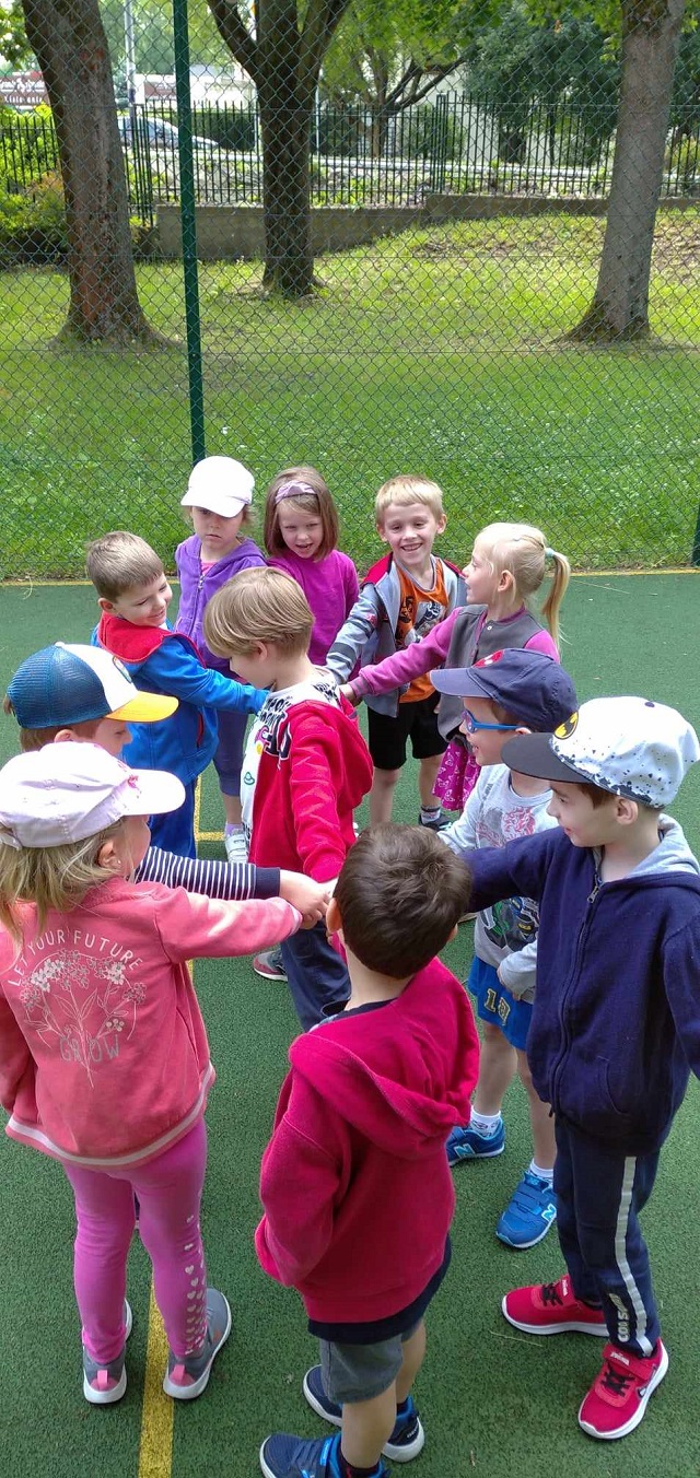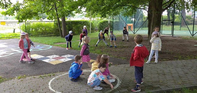 Dzieci ze wszystkich grup miały okazję brać udział w Ogólnopolskim Projekcie Edukacyjny pt. ,,Zabawy podwórkowe” Głównym założeniem projektu było zapoznanie przez cały rok dzieci z zabawami takimi jak „KLASY”, „GUMA”, „DWA OGNIE” i przede wszystkim projekt ten miał na celu świetną zabawę! Szczegółowe cele projektu: Dziecko: – zapoznaje się z różnymi grami i zabawami podwórkowymi; – integruje się z innymi dziećmi; – rozwija swoją koordynację ruchową i wzrokowo-ruchową; – kształtuje swoją spostrzegawczość i pamięć; – rozwija swoją ogólną sprawność fizyczną; – kształtuje poczucie własnej wartości; – uwrażliwia się na potrzeby i emocje innych; – kształtuje umiejętność panowania nad emocjami; – współdziała w grupie; – wykorzystuje do zabaw materiał naturalny.