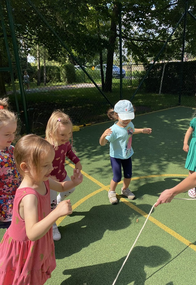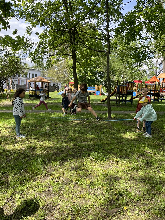 Dzieci ze wszystkich grup miały okazję brać udział w Ogólnopolskim Projekcie Edukacyjny pt. ,,Zabawy podwórkowe” Głównym założeniem projektu było zapoznanie przez cały rok dzieci z zabawami takimi jak „KLASY”, „GUMA”, „DWA OGNIE” i przede wszystkim projekt ten miał na celu świetną zabawę!