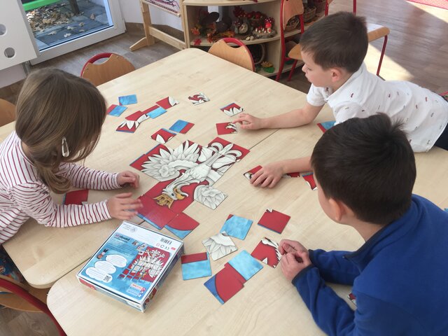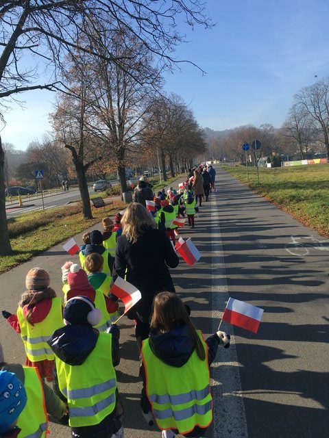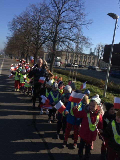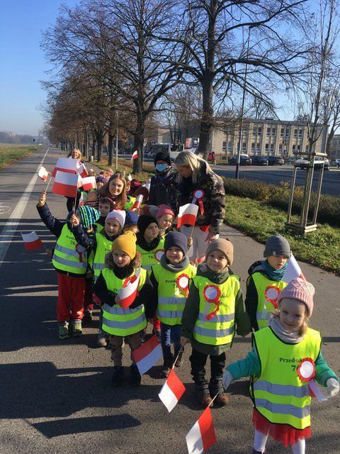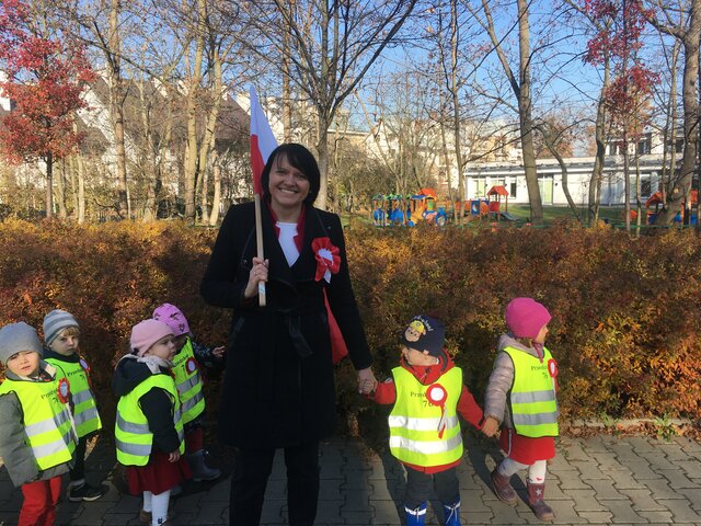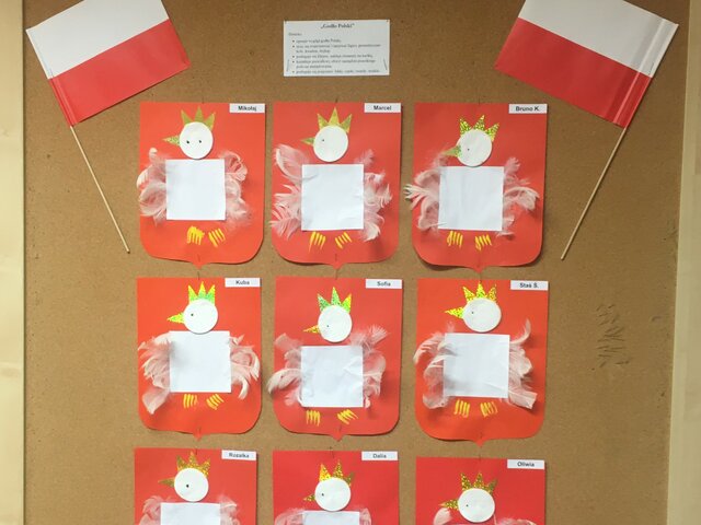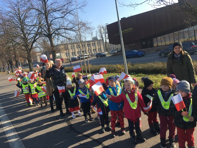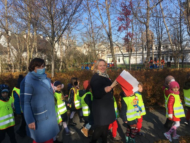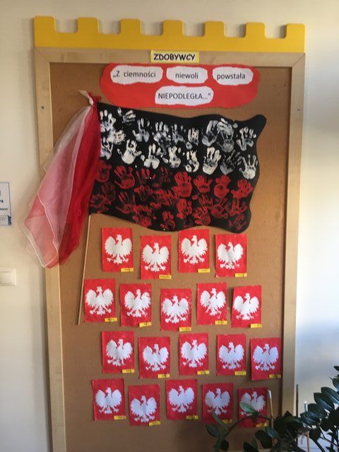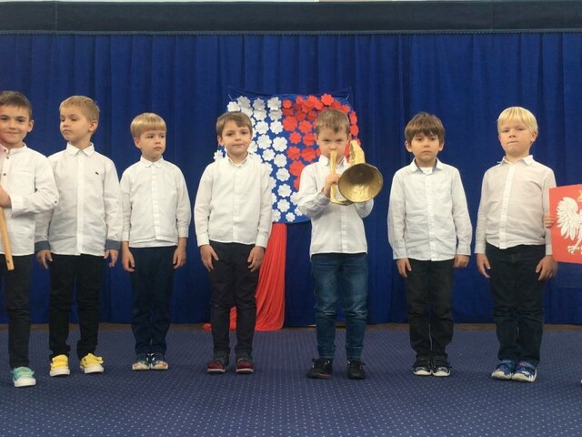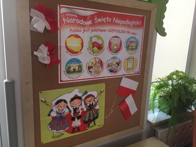 W tym dniu wszystkie przedszkolaki obejrzały także, nagrany przez starszaków z grupy Badaczy, występ związany z odzyskaniem niepodległości . Z tej okazji dzieci wykonały prace plastyczne związane z symbolami Polski oraz kwiaty w hołdzie bohaterom walczącym o naszą wolność.