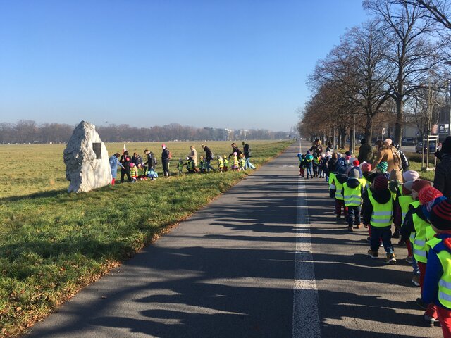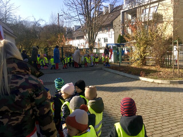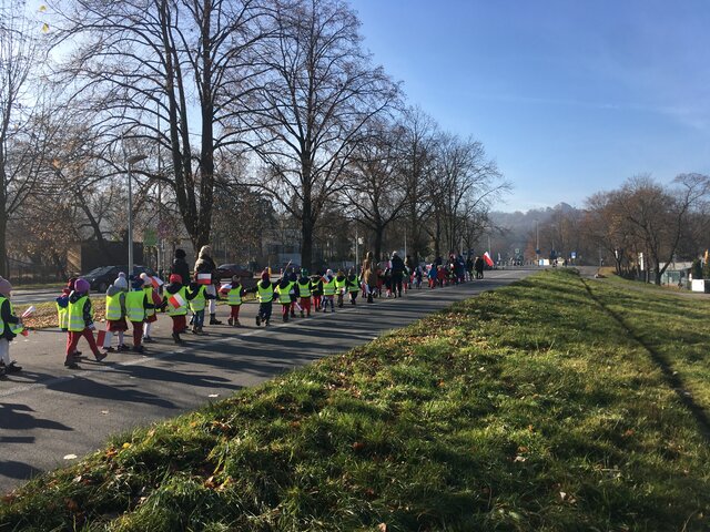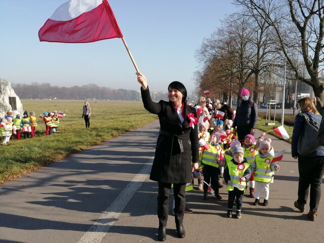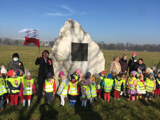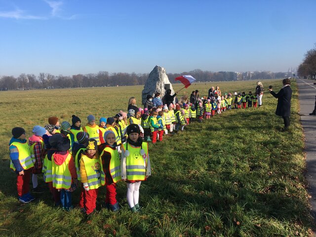10 listopada, wszystkie dzieci z naszego przedszkola , wybrały się pod pomnik na Krakowskie Błonia . To tutaj, w 250 rocznicę zwycięstwa pod Wiedniem, Pierwszy Marszałek Polski – Józef Piłsudski odebrał defiladę wojsk. Jest to więc, najbliższe nam, miejsce związane z bohaterem odzyskania przez naszą Ojczyznę niepodległości.