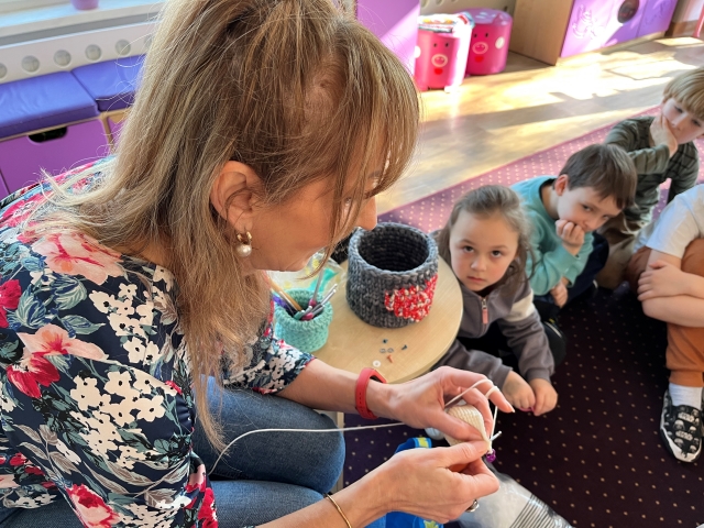 Ciocia Wiktorii zaprezentowała nam kilka swoich dzieł oraz podczas zajęć pokazała nam jak z włóczki wykonuje kotki.