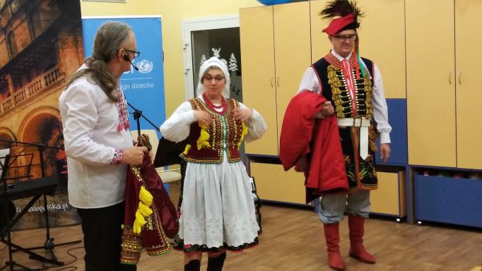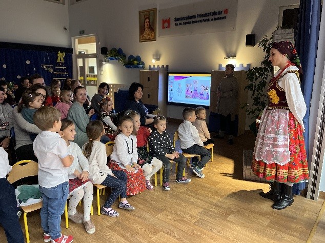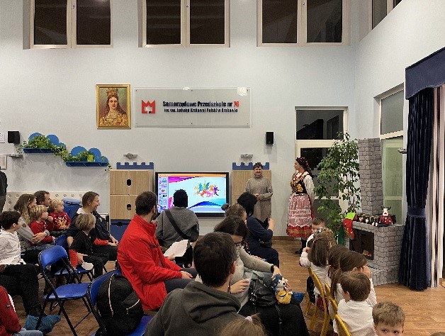 W naszym przedszkolu odbyły się dwa spotkania integrujące rodziny polskie i ukraińskie. 15 grudnia 2022r. zorganizowane zostały warsztaty taneczno – muzyczne połączone z koncertem i wspólnym kolędowaniem. Wśród wykonawców wystąpili: Dziecięcy Teatr Tańca Levenya ze Lwowa oraz Zespól Tańca Ludowego Krakowianie. Prawie tydzień później – 21 grudnia gościliśmy Rodziny z Polski i z Ukrainy na Spotkaniu dwóch kultur, gdzie odbyły się warsztaty muzyczne, plastyczne z wykorzystaniem metody modrodruku oraz kulinarne połączone z degustacją potraw. Program spotkań integracyjnych realizowany za sprawą współpracy Miasta Krakowa z UNICEF i finansowany z tego źródła.
