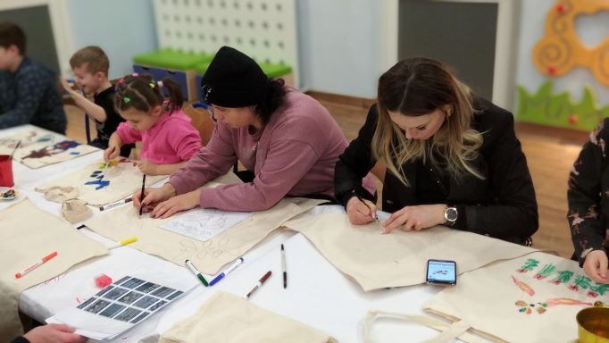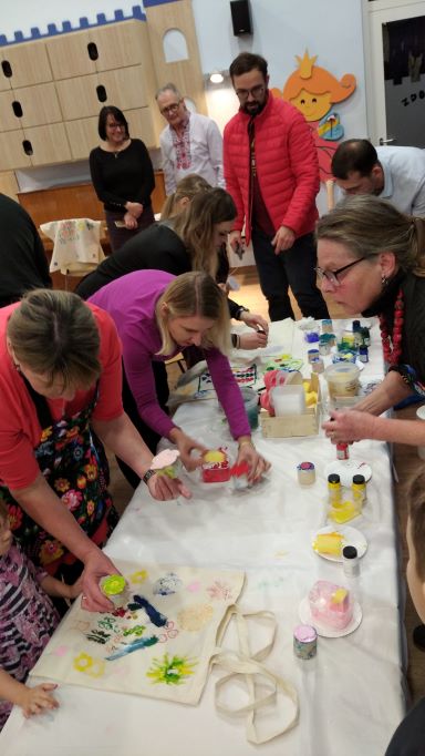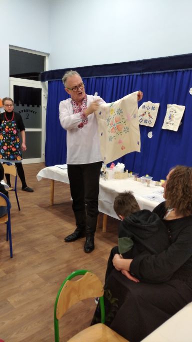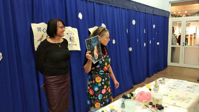 Prawie tydzień później – 21 grudnia gościliśmy Rodziny z Polski i z Ukrainy na Spotkaniu dwóch kultur, gdzie odbyły się warsztaty muzyczne, plastyczne z wykorzystaniem metody modrodruku oraz kulinarne połączone z degustacją potraw.
