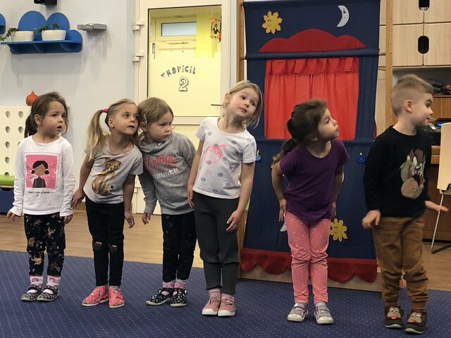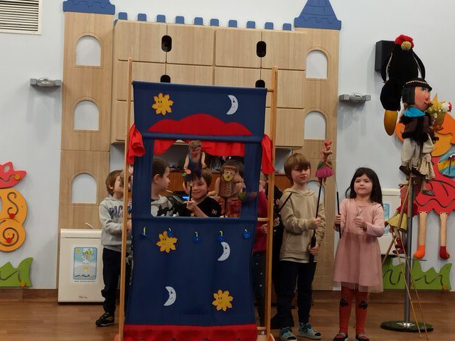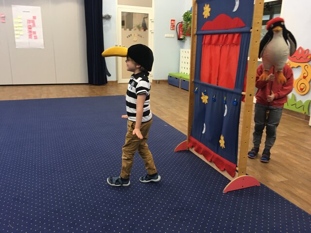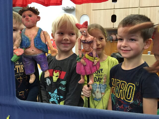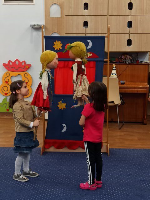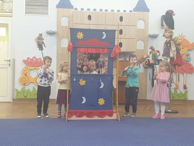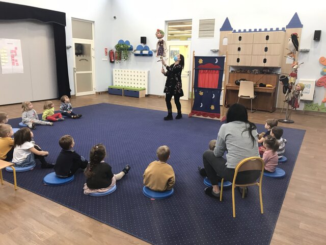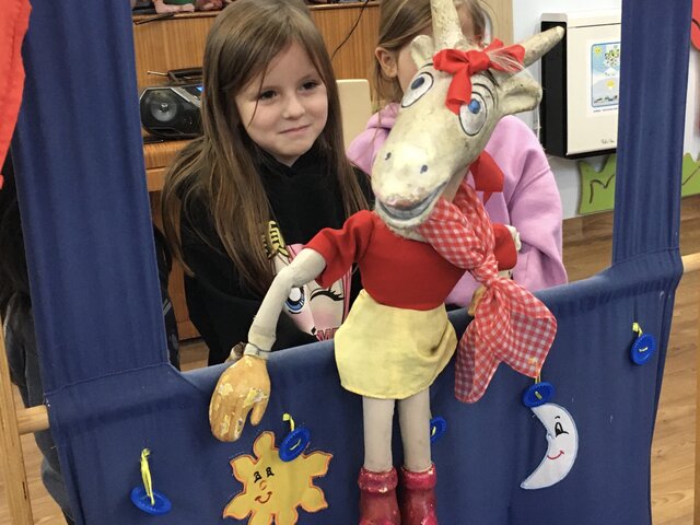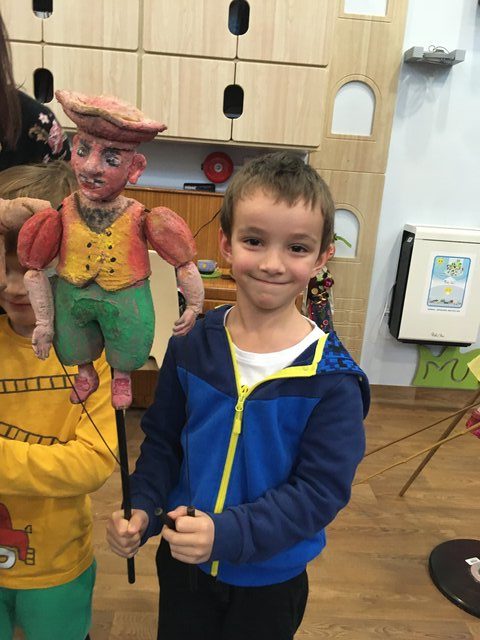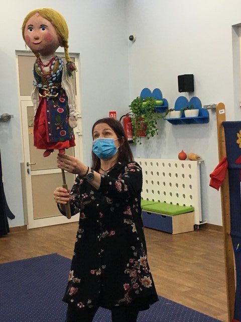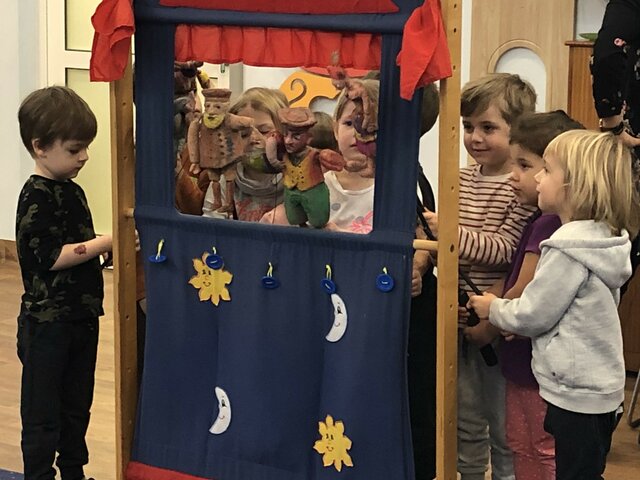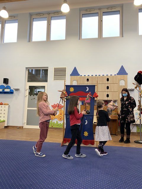 29 listopada gościliśmy w naszym przedszkolu aktorkę Teatru Groteska. Podczas zajęć dzieci miały okazję animować lalki i wcielić się w role odgrywanych postaci. Przedszkolaki poznały także rolę inspicjenta oraz aktora. Doświadczyły również, że sztuka może się udać jedynie przy współpracy całego zespołu, a animowanie lalek to praca nie tylko jednego aktora lecz czasem nawet trzech równocześnie. Ważna jest więc umiejętność porozumiewania się, empatia, szacunek i zgoda a także poczucie humoru. I co najważniejsze – prawdziwy aktor nigdy nie wyśmiewa się z innych, lecz potrafi zaśmiać się z samego siebie, a ewentualne potknięcie umie zatuszować grą aktorską.
