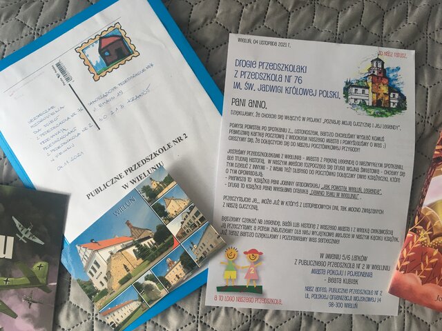 Pod koniec listopada dzieci z grupy Badaczy otrzymały list od Przedszkolaków z Przedszkola Publicznego nr 2 w Wieluniu. Dzieci zaprezentowały w nim legendę ich miasta, a także przypomniały o smutnej historii Wielunia w czasach II wojny światowej. Poruszyło to serduszka Badaczy, którzy szybko odpowiedzieli na list tworząc własnoręczne ilustracje legendy o Smoku Wawelskim .