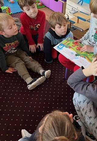 Podczas zajęć jak i zabaw swobodnych, starszaki z powodzeniem, rozwijały cały rok kompetencje czytelnicze .