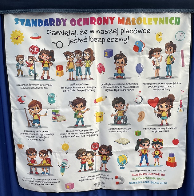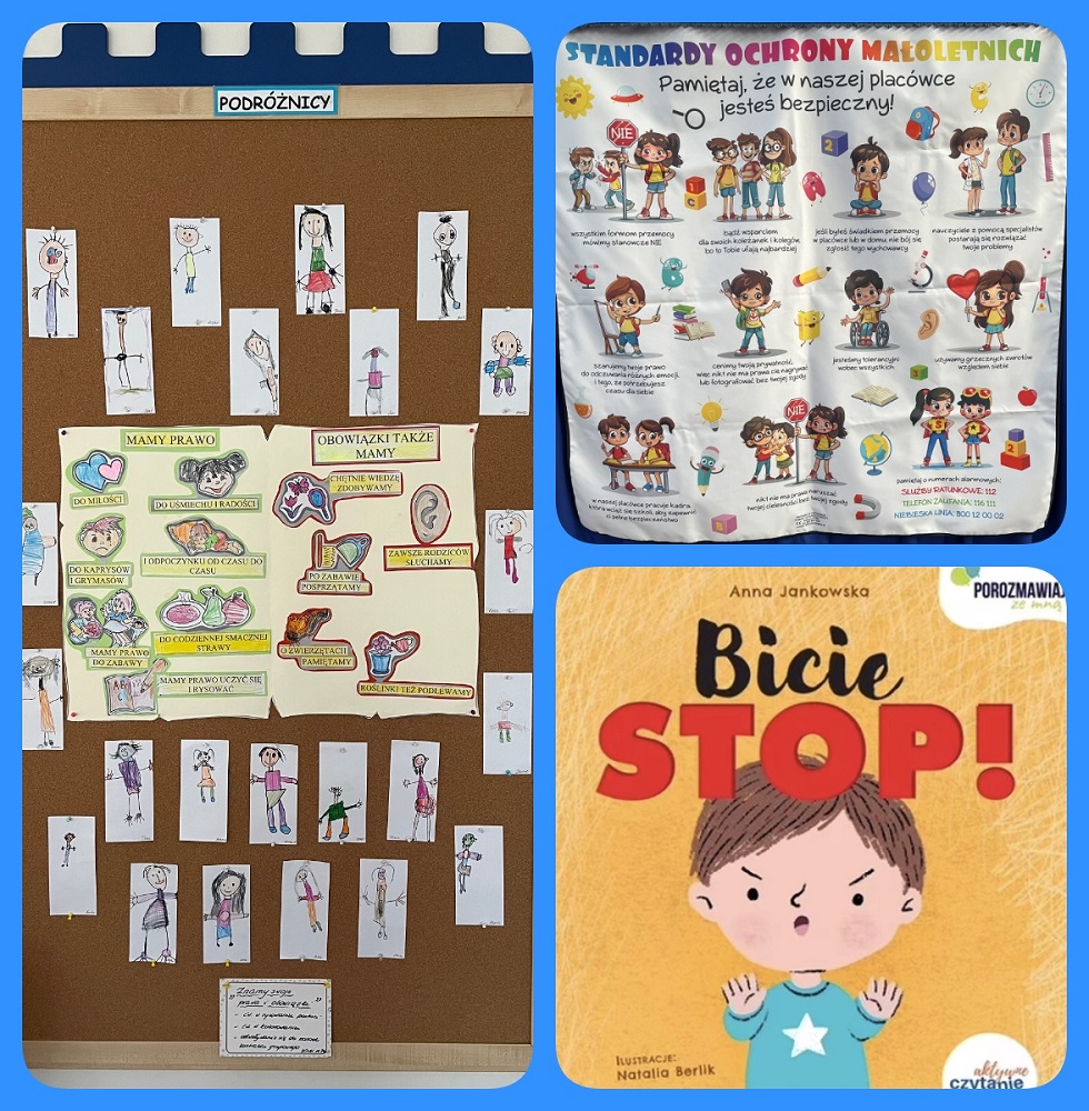 Już od najmłodszych grup wszystkie przedszkolaki uczą się co robić by być bezpiecznym. Pomagają w tym zajęcia na temat bezpiecznego uczestnictwa w ruchu drogowym, standardy ochrony małoletnich, prawa i obowiązki dzieci oraz grupowe kontrakty, które wyznaczają zasady i reguły bezpieczeństwa dzieci. Propagowanie bezpiecznych zachowań realizowane jest również przy współpracy ze Strażą Miejską oraz Strażą Pożarną.