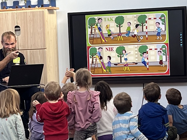 Przedszkolaki wiedzą jak poruszać się na drodze, jak postąpić w kontakcie z nieznajomym oraz wzorowo zachowały się podczas próbnej ewakuacji. Przy okazji poznały tajniki zawodu Strażnika Miejskiego oraz Straży Pożarnej.