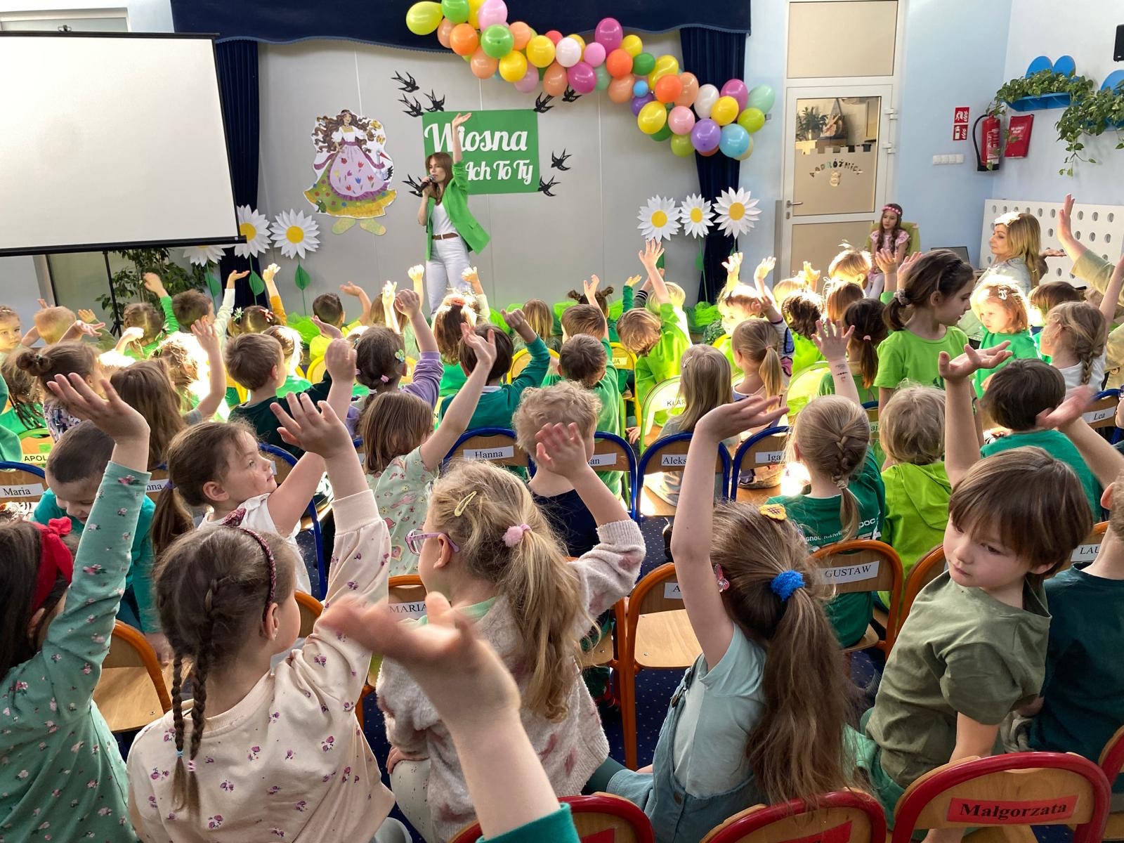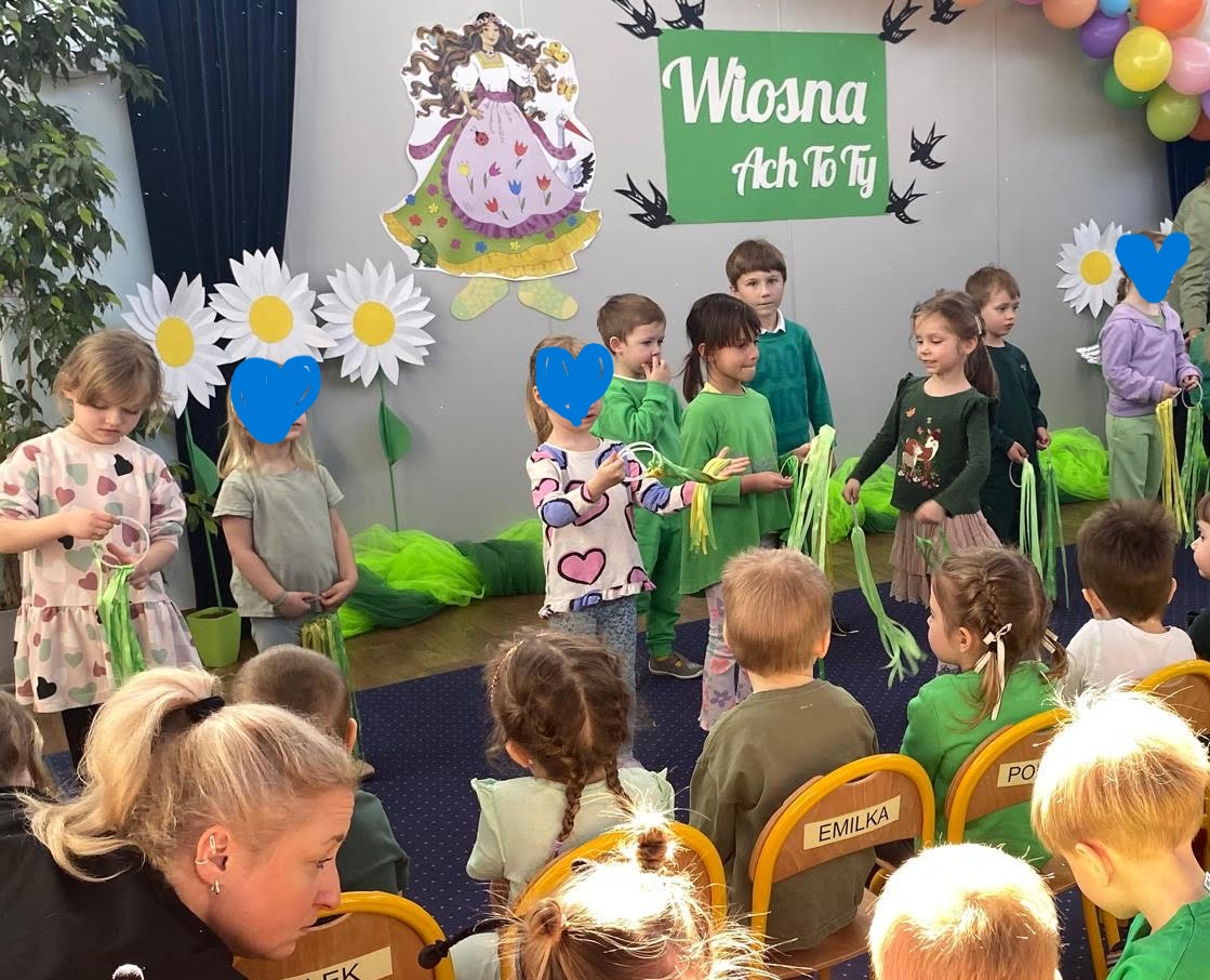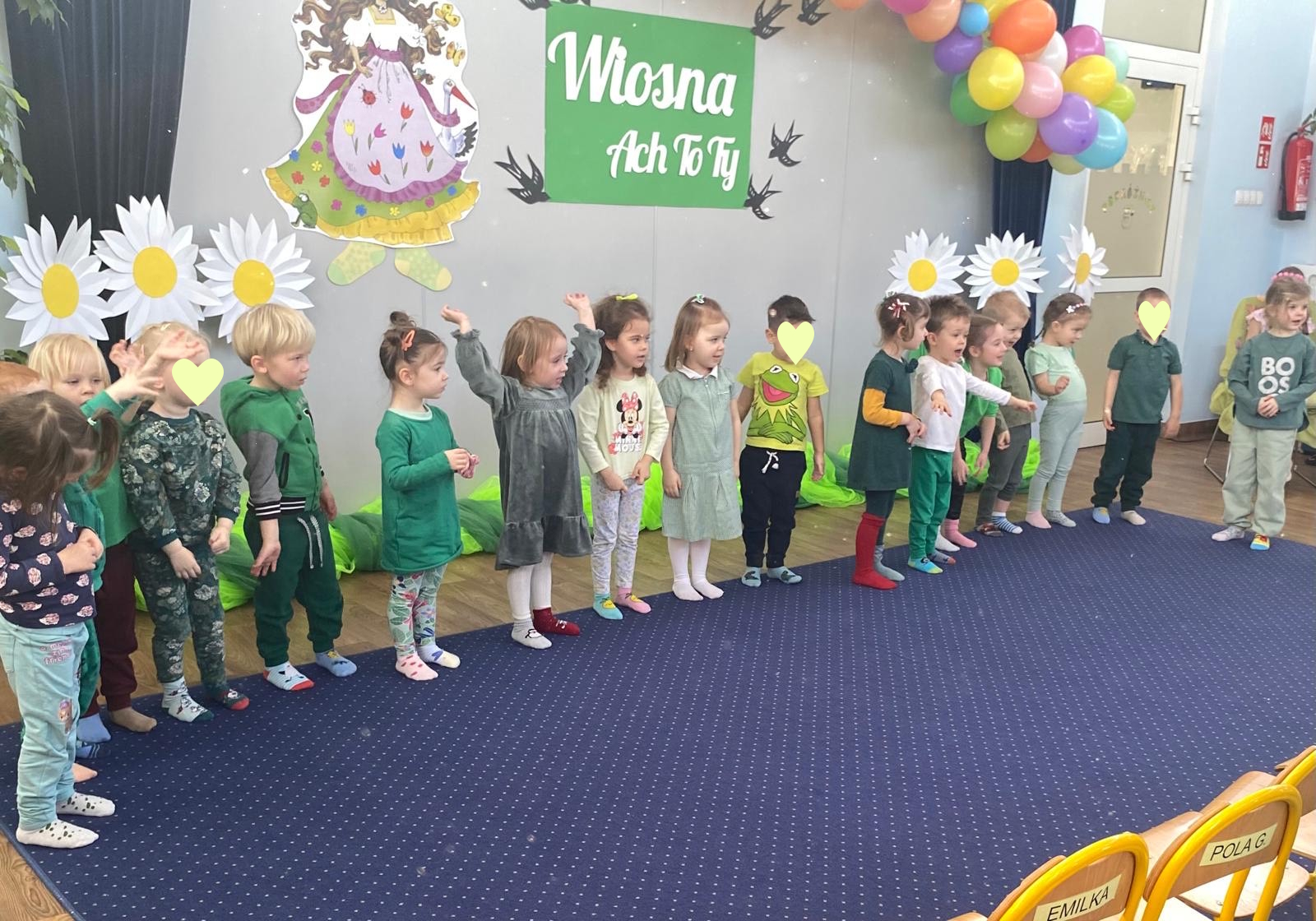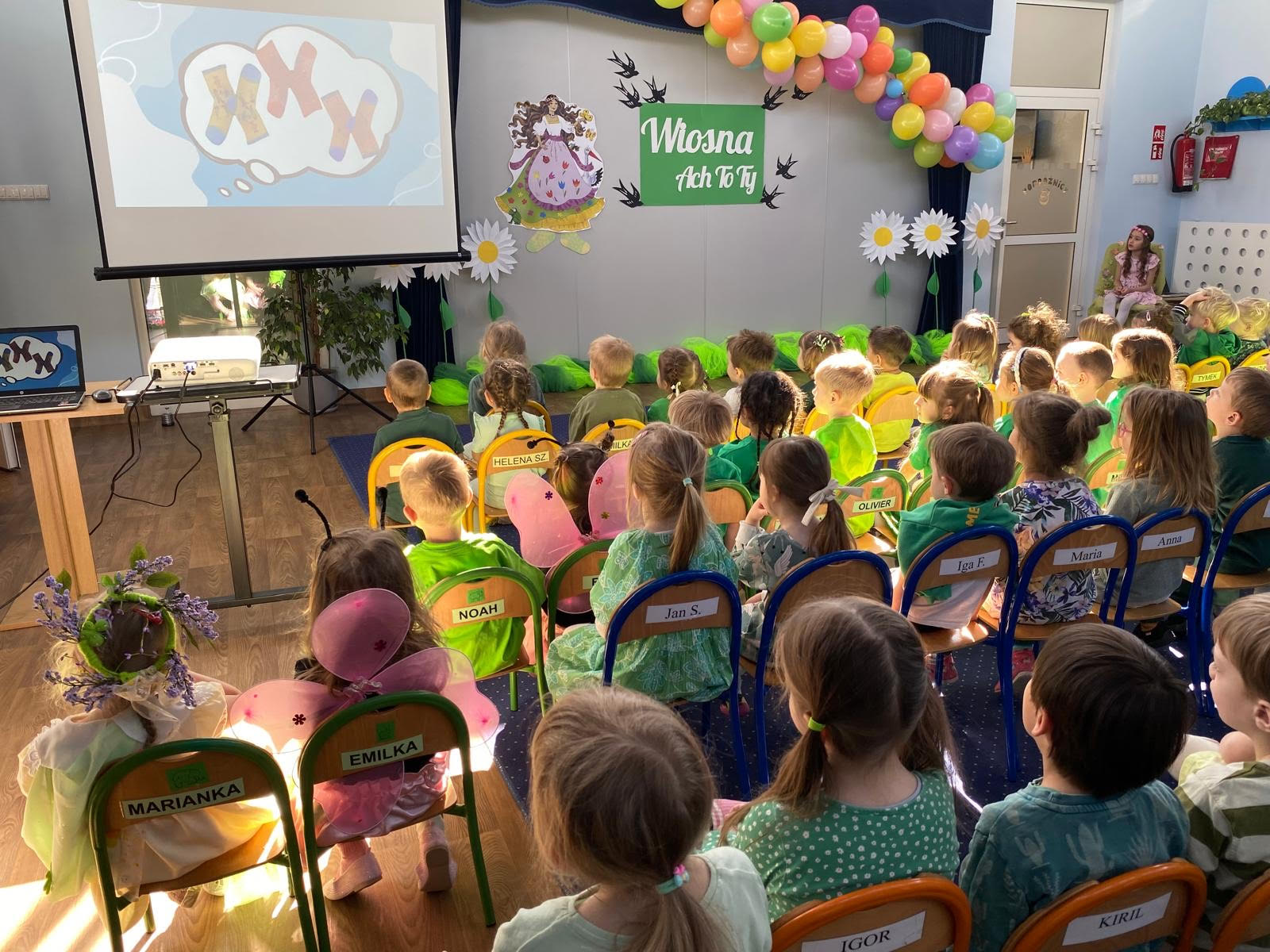 21 marca 2025 roku w naszym przedszkolu odbył się Koncert Wiosenny, podczas którego każda z grup przedszkolnych powitała Panią Wiosnę piosenką. Obchody Pierwszego Dnia Wiosny połączyliśmy z obchodami Światowego Dnia Zespołu Downa, czyli Dniem Kolorowej Skarpetki. W związku z tym cała społeczność przedszkolna – zarówno dzieci, jak               i dyrekcja, nauczyciele, pracownicy administracji i obsługi pojawili się tego dnia w przedszkolu w dwóch rożnych skarpetkach na znak solidarności i wsparcia osób z Zespołem Downa. Dzieci miały możliwość zgłębić swoją wiedzę dotyczącą Zespołu Downa, oglądając wspólnie bajkę edukacyjną. Następnie wszyscy udali się na uroczysty pochód z okazji powitania Wiosny w ogrodzie przedszkolnym, prezentując wykonane przez każdą z grup gaiki i transparenty.
