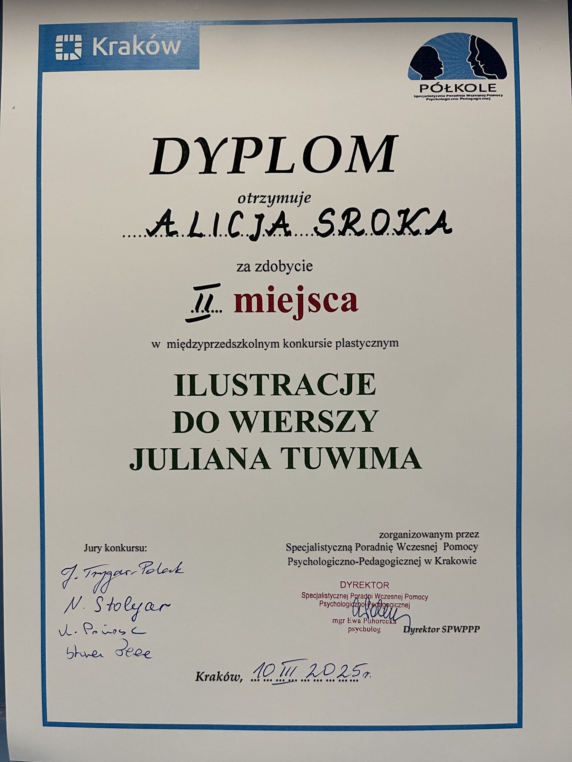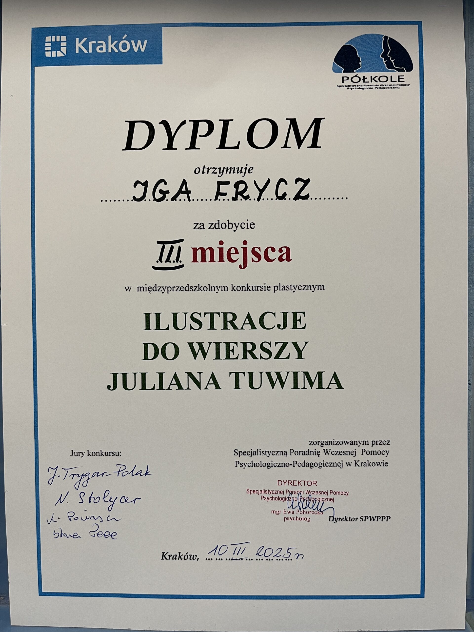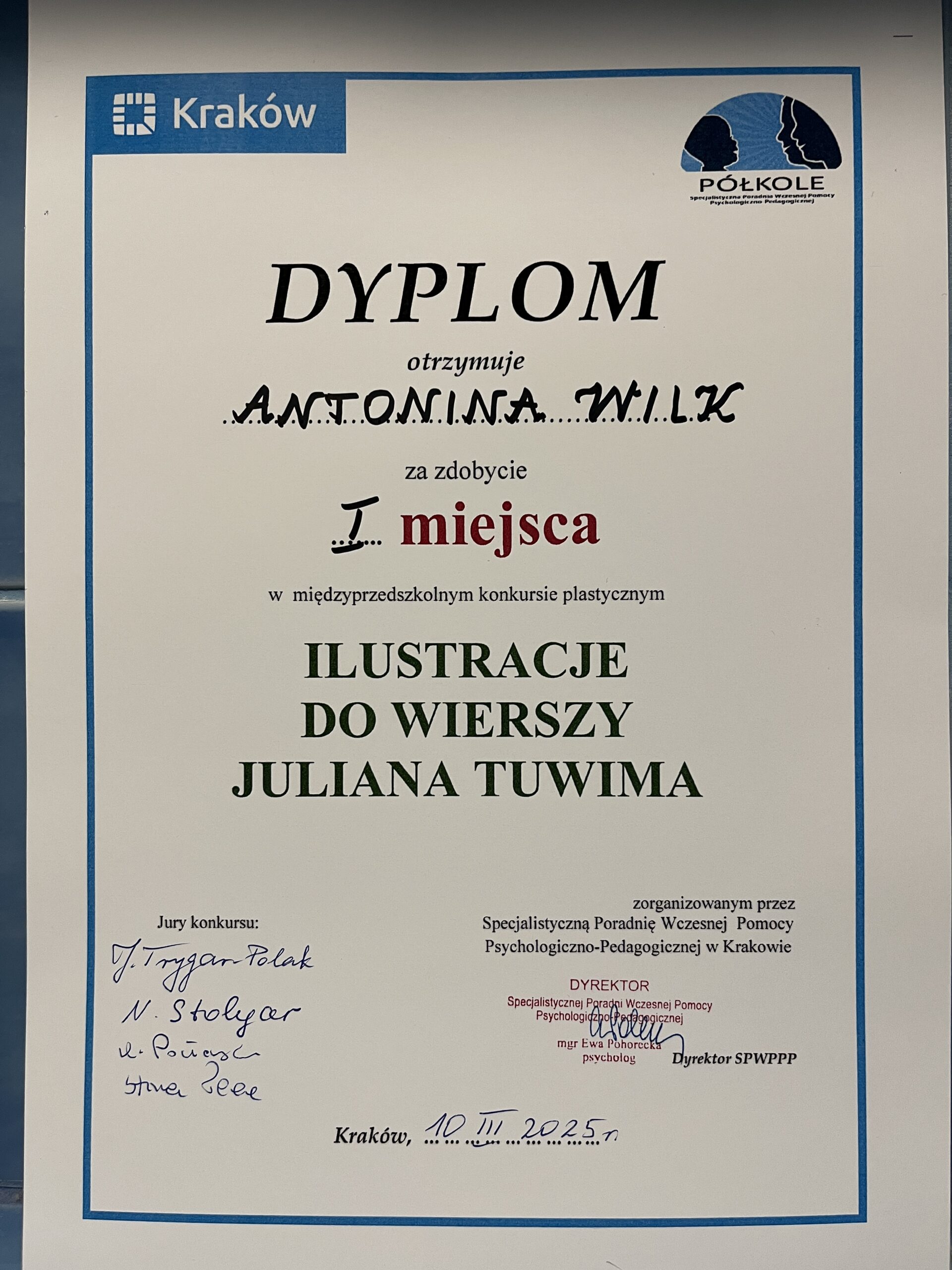 Ilustracje do wierszy Juliana Tuwima, Pejzaż zwierzyniecki oraz Sztuka ludowa Małopolski to konkursy, w których nasze dziewczynki z grupy Podróżników uplasowały się na najwyższych miejscach. Serdecznie gratulujemy tym Małym – Wielkim Artystkom.