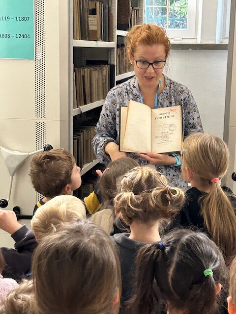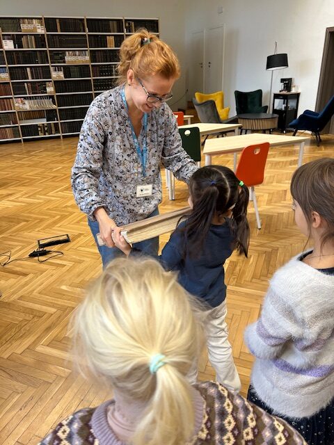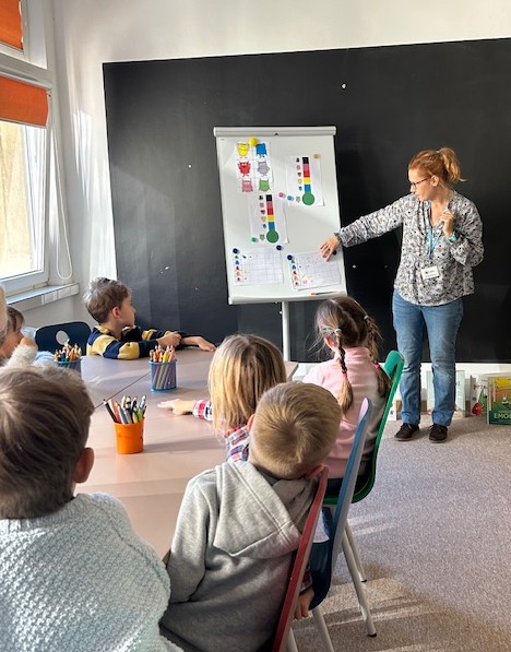 30 października „Myśliciele” uczestniczyli w zajęciach czytelniczych „Kolory emocji” w Pedagogicznej Bibliotece Wojewódzkiej w Krakowie. W trakcie zajęć poznaliśmy historię sympatycznego bohatera książeczki Anny Llenas „Kolorowy potwór”. Razem z tytułowym kolorowym potworem uczyliśmy się rozpoznawać i nazywać emocje. Dowiedzieliśmy się, że każda z emocji, którą odczuwamy, ma swoją energię i kolor. Wyraziliśmy swoje uczucia w pracy plastycznej, kolorując potwora właściwym dla wybranej emocji kolorem. Opowiadaliśmy o własnych, sprawdzonych sposobach radzenia sobie z mniej przyjemnymi emocjami, takimi jak: złość, smutek, strach. I znów z pomocą, a raczej z „Apteczką pierwszej pomocy” przyszedł Kolorowy potwór, w nowej historii spisanej na kartach książki „Doktor od emocji” Anny Llenas. W jego zestawie do regulacji emocji znalazły się: przytulanie, słuchanie muzyki, głębokie wdechy, głaskanie kota, kąpiel i wiele innych. Okazało się, że mamy wiele wspólnych pomysłów. I choć niechętnie żegnaliśmy się z Kolorowym potworem, to czekała na nas kolejna niespodzianka tego dnia. Pani bibliotekarka zaprosiła nas na spacer po bibliotece. Dowiedzieliśmy się, że Pedagogiczna Biblioteka Wojewódzka jest najstarszą tego typu placówką w Polsce, nie tak dawno skończyła 100 lat. W jej zbiorach znajdują się cenne starodruki. Odwiedziliśmy Czytelnię Główną, a potem magazyn. Zobaczyliśmy w jaki sposób przechowywane są książki, a jest ich bardzo dużo. W niektórych pomieszczeniach stały na półkach sięgających sufitu. Nasza wizyta w bibliotece była pełna wrażeń.