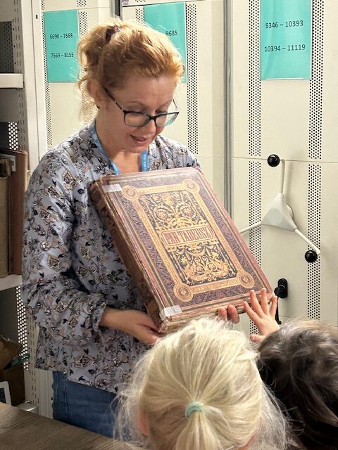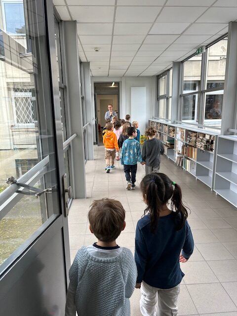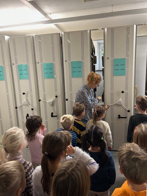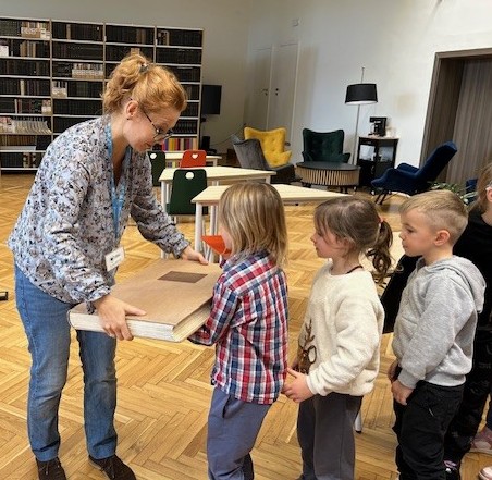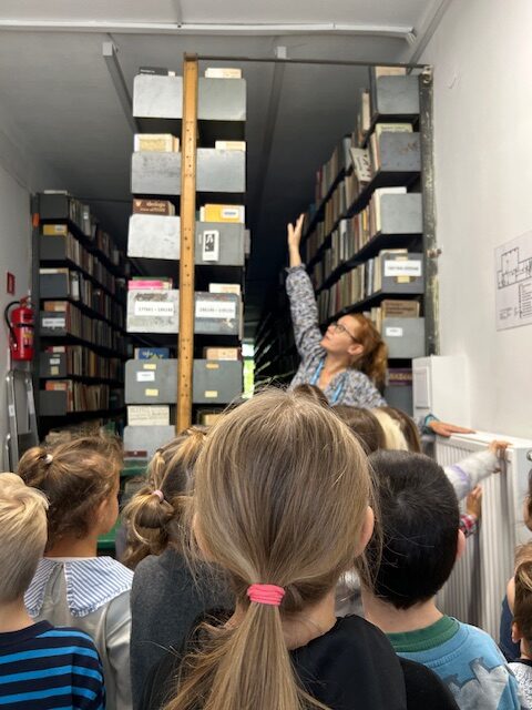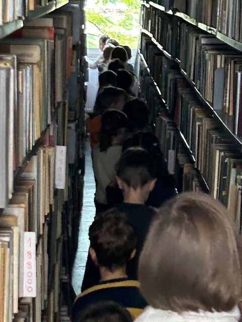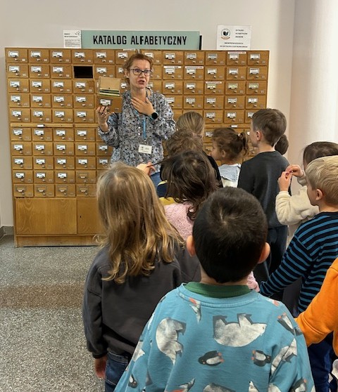 Pani bibliotekarka zaprosiła nas na spacer po bibliotece. Dowiedzieliśmy się, że