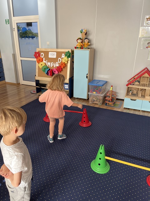 Dzień Przedszkolaka, który przypada na 20 września, rozpoczął udział dzieci  w tygodniowych zmaganiach olimpijskich. W ramach realizacji projektu Światowej Organizacji Wychowania Przedszkolnego OMEP  przedszkolaki zapoznały się z informacjami na temat igrzysk, symboliką olimpijskich kół i z wybranymi dyscyplinami sportowymi. Projektowi Olimpijskie zmagania przedszkolaków przyświecało hasło:  Pokój i szacunek to ważna sprawa. Liczy się sport i dobra zabawa . Przedszkolaki uczestniczyły więc w przygotowaniu olimpijskiego znicza, przekazywały go sobie w sztafecie a każdy poranek tygodnia poświęcony został zawodom, w których dzieci chętnie rywalizowały ze sobą w drużynach. Projekt realizowany był w przedszkolu, na boisku oraz w zaprzyjaźnionym Klubie Tenisowym „Błonia” . Dziecięce zmagania zakończyło uroczyste dekorowanie zespołów oraz ich prezentacja wokół olimpijskiego znicza. W ostatnim dniu po zabawach ruchowych odbył się mini quiz dotyczący wiadomości związanych z olimpiadą.