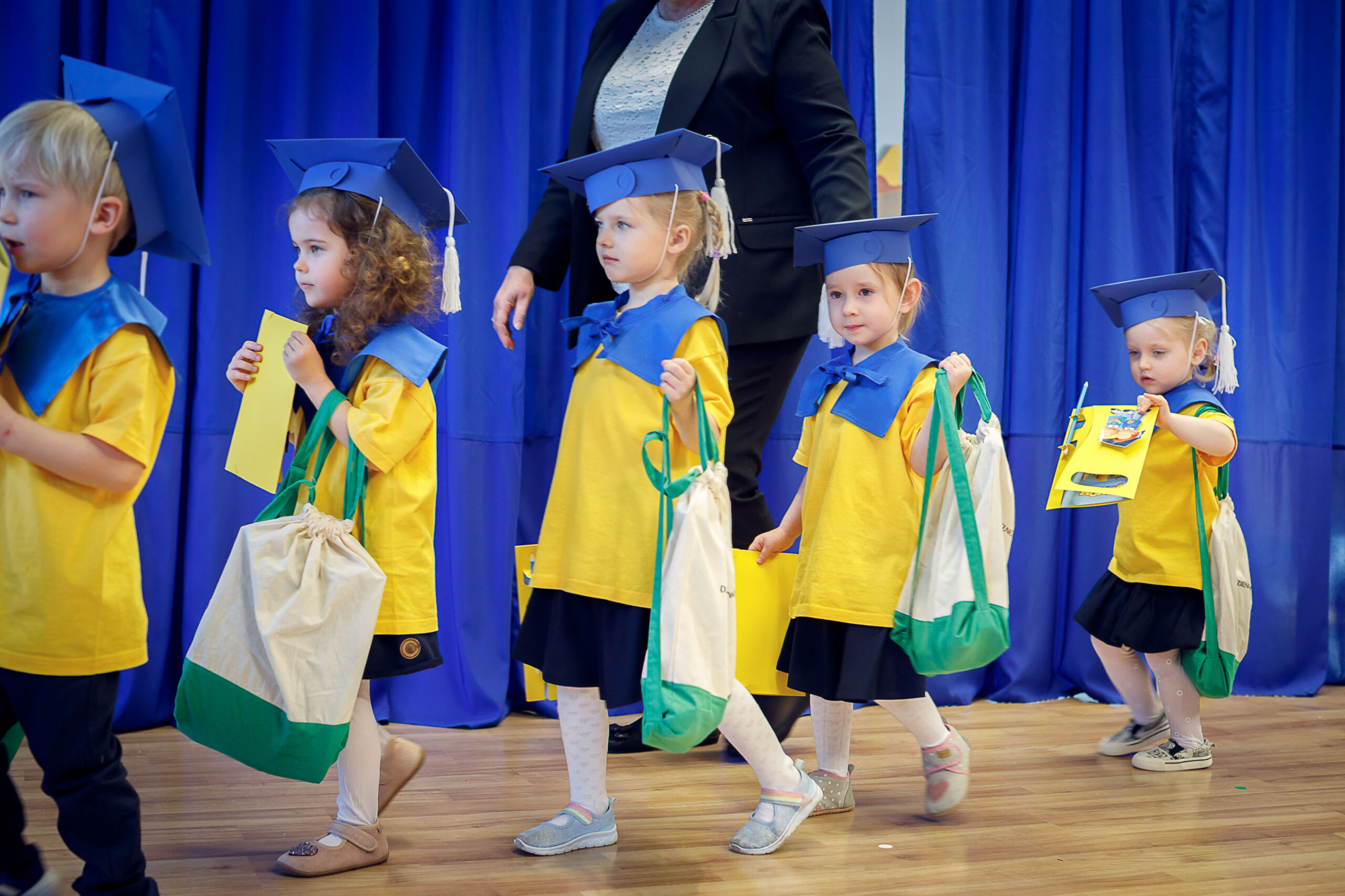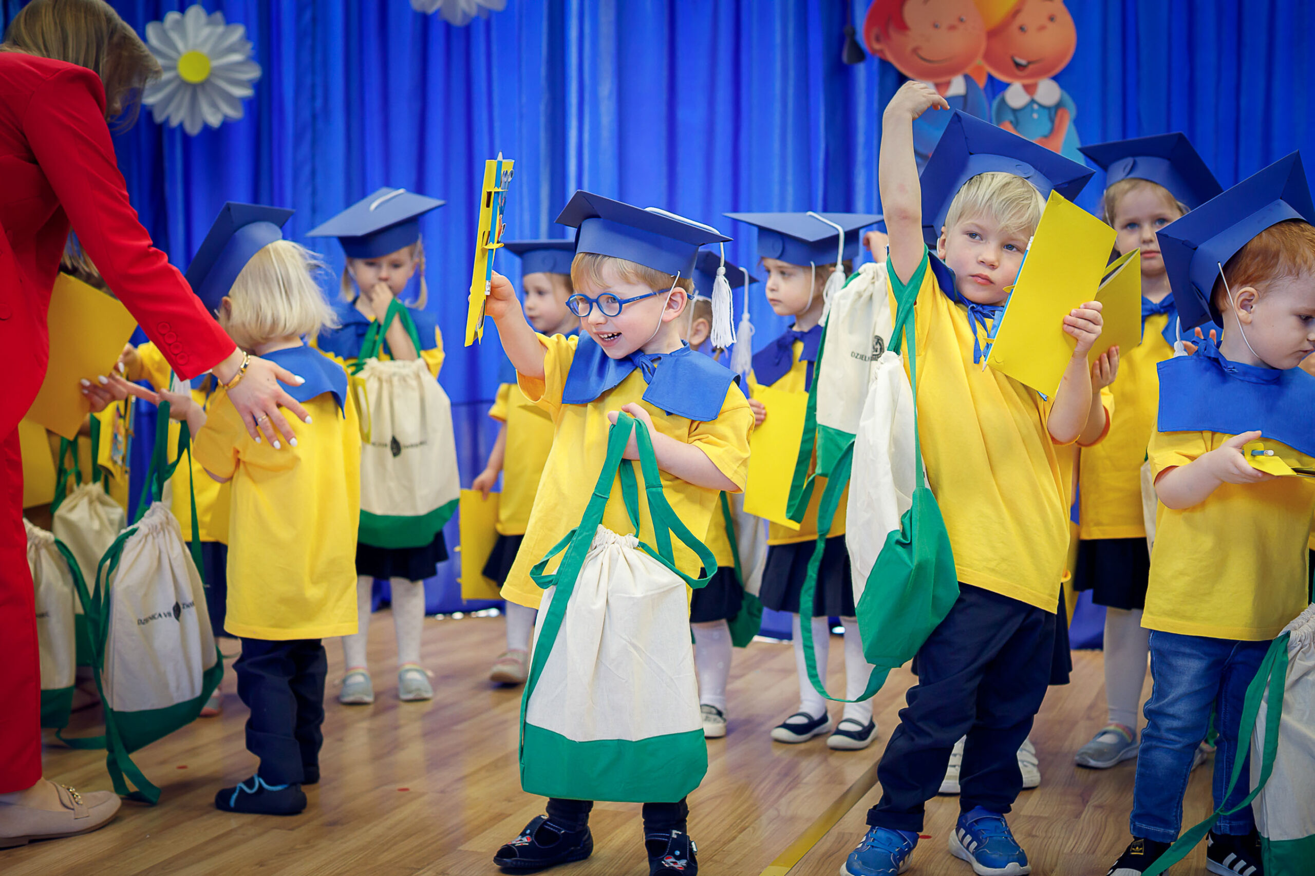3 kwietnia 2025 roku dzieci z grupy „Zdobywców” – najmłodsi podopieczni w naszym przedszkolu zostali oficjalnie pasowani na Przedszkolaków. Tego dnia dzieci wystąpiły na przedszkolnej scenie z przedstawieniem „Podróż zwana przedszkolem”, prezentując umiejętności, jakie zdobyły na dotychczasowej ścieżce edukacji: recytowali wiersze, śpiewali piosenki, tańczyli z chustami i grali na instrumentach. Na widowni zasiedli ich ukochani rodzice, którzy samą swoją obecnością dodali dzieciom otuchy, a niektórzy z nich – zaangażowani przez wychowawcę grupy – również wzięli udział w przedstawieniu. Tego dnia zarówno dzieci, jak i rodzice złożyli uroczystą przysięgę – dzieci wobec przedszkola, nauczycieli i siebie nawzajem, a rodzice – wobec swoich dzieci – najcenniejszego daru, jaki otrzymali. „Zdobywcy” zabrali ze sobą „kuferek umiejętności” w dalszą podroż zwaną przedszkolem. Po uroczystym pasowaniu trzylatków na Przedszkolaków przez dyrekcję przedszkola, dzieci wraz z rodzicami udały się do swojej Sali przedszkolnej na poczęstunek. Tak oto najmłodsi zostali oficjalnie przyjęci w szeregi Przedszkolaków Samorządowego Przedszkola nr 76 im. św. Jadwigi Królowej Polski w Krakowie.