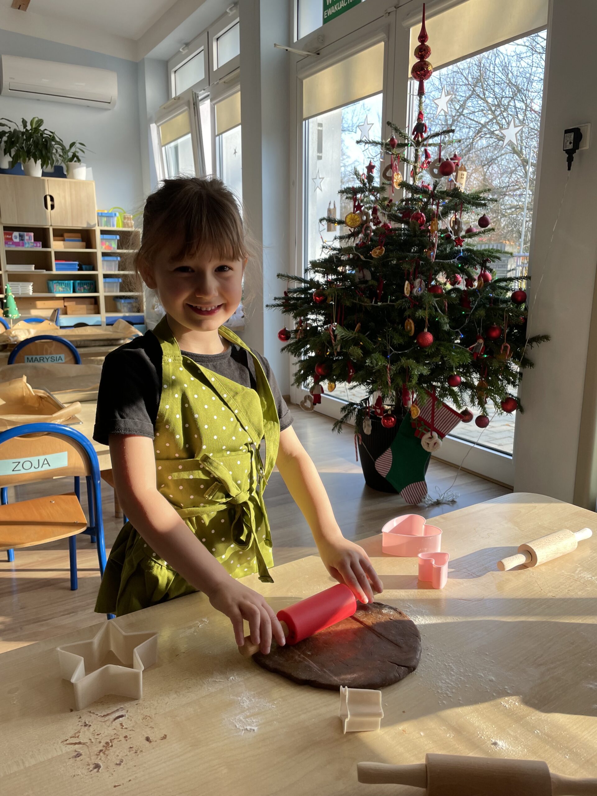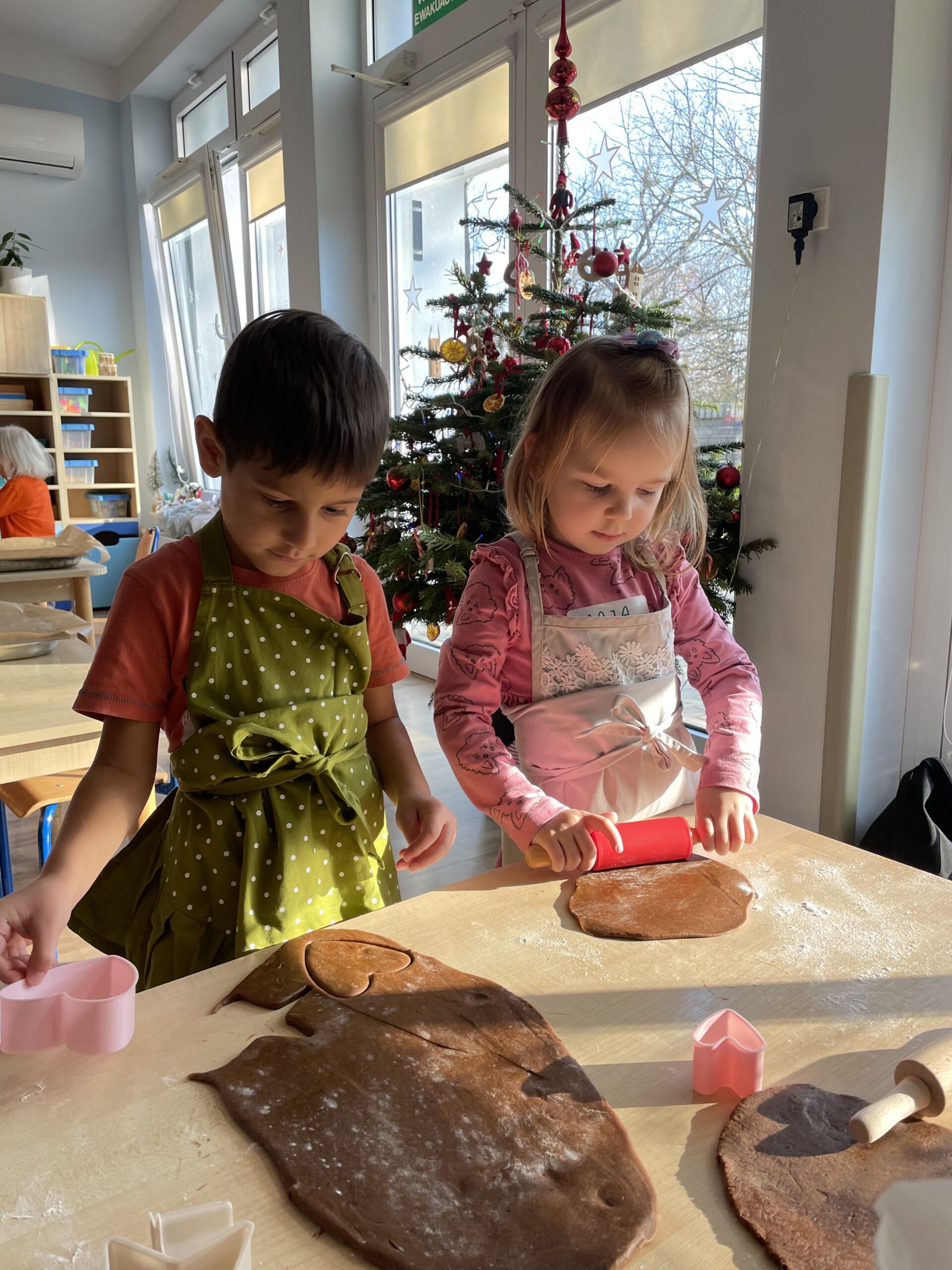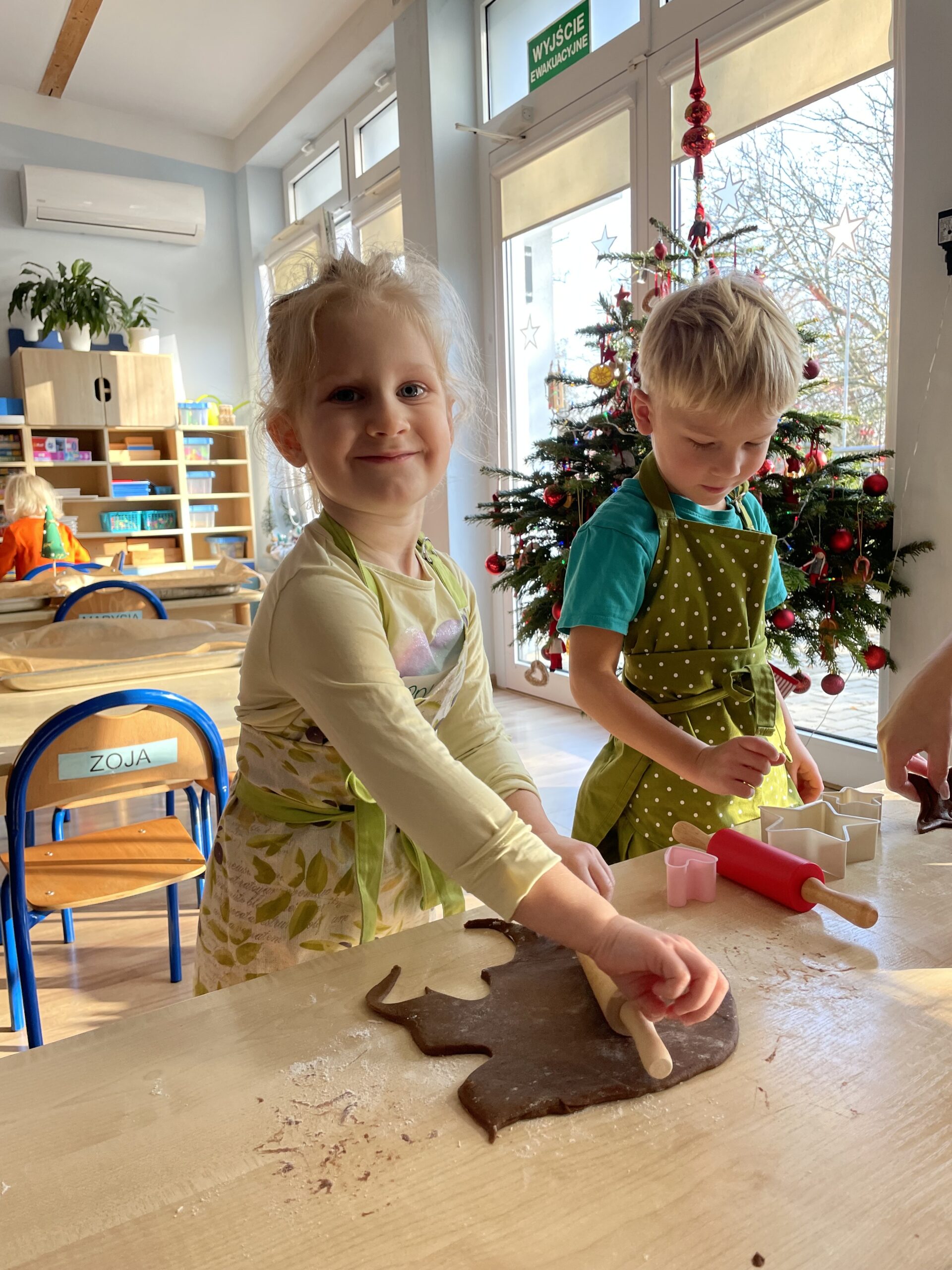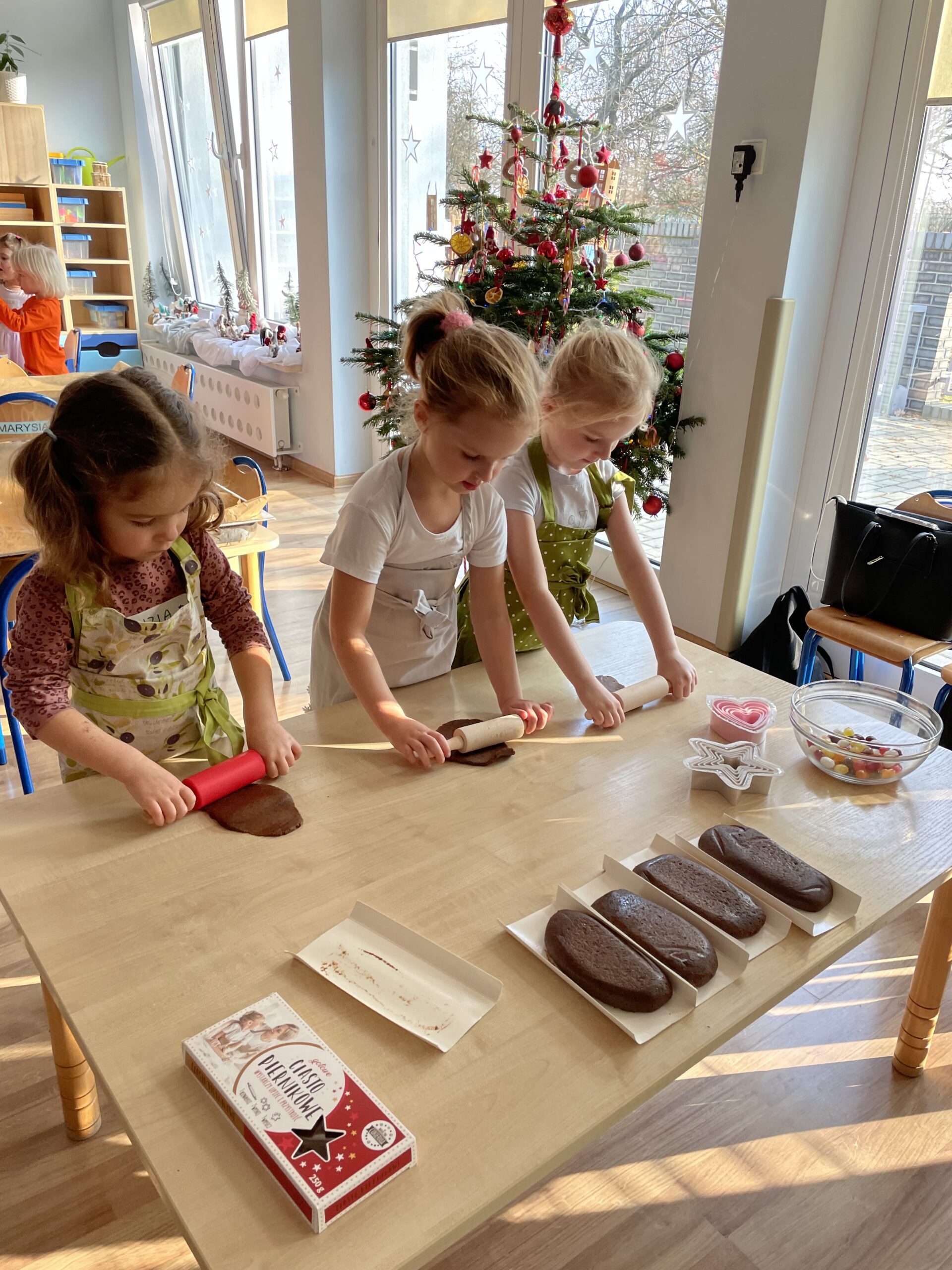 12 grudnia 2025 roku dzieci z grupy “Podróżnicy” wzięły udział w zajęciach dydaktycznych oraz kulinarnych. Najpierw poznały składniki potrzebne do przygotowania ciasta na pierniki, miały okazję je obejrzeć, dotknąć ich oraz powąchać. Aby utrwalić przepis na ciasto piernikowe dzieci wzięły udział w zabawie ruchowej – każde z nich zamieniło się w konkretny składnik, a duże obręcze posłużyły nam za miski. W każdej misce miał znaleźć się po jednym składniku potrzebnym do przygotowania ciasta na pierniki. Następnie dzieci wzięły się do pracy i własnoręcznie przygotowały pierniczki. Podróżnicy wałkowali ciasto, wykrawali pierniczki przy użyciu foremek. Po upieczeniu pozostało już tylko udekorowanie pierniczków i… gotowe! WESOŁYCH ŚWIĄT życzą Podróżnicy!