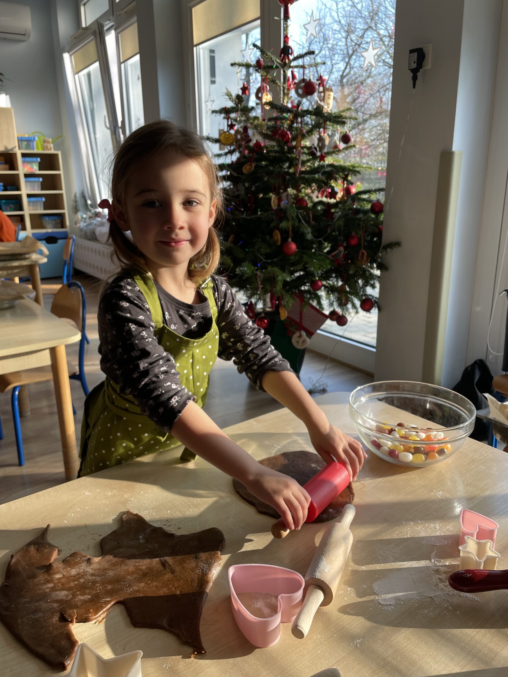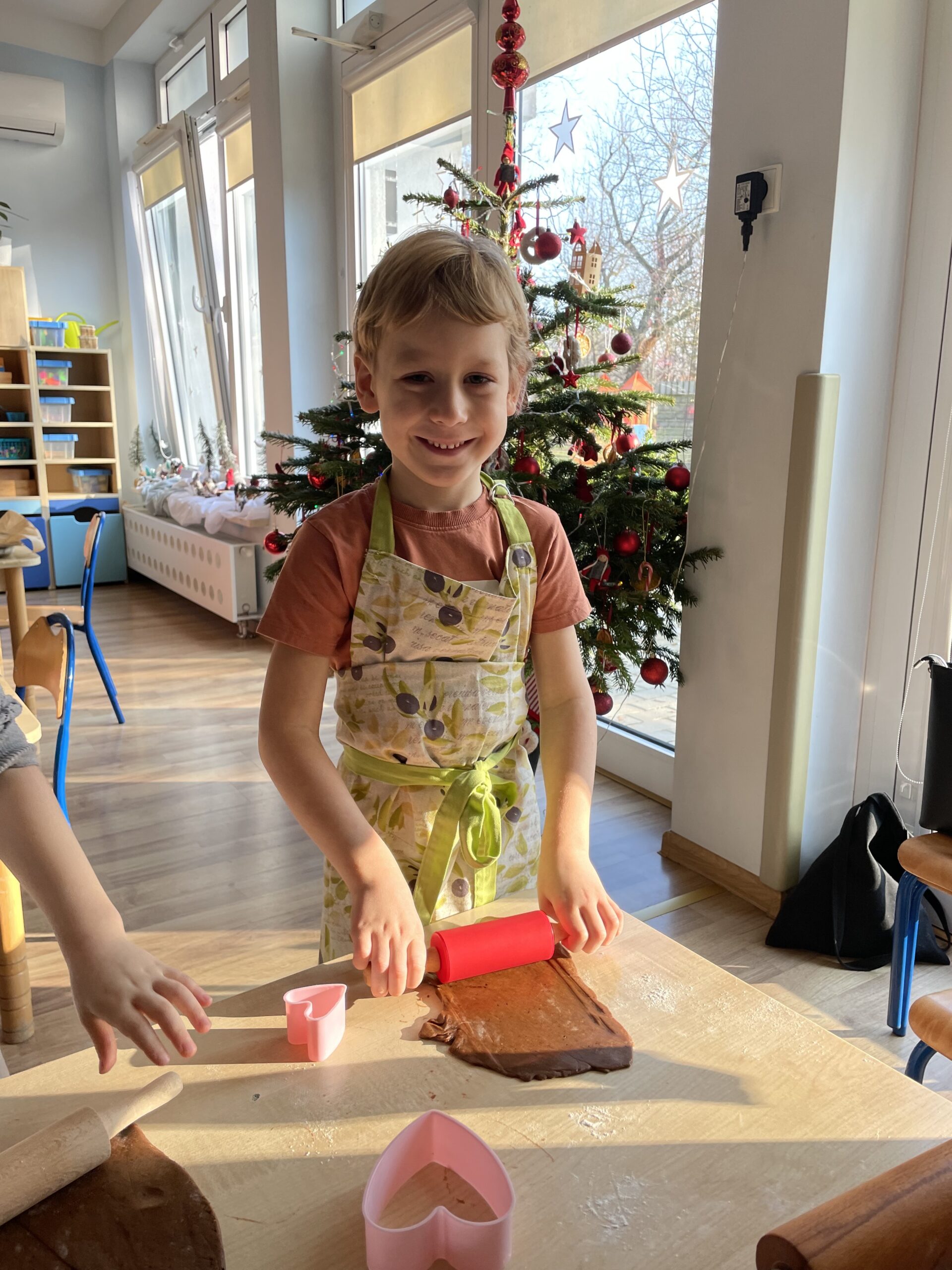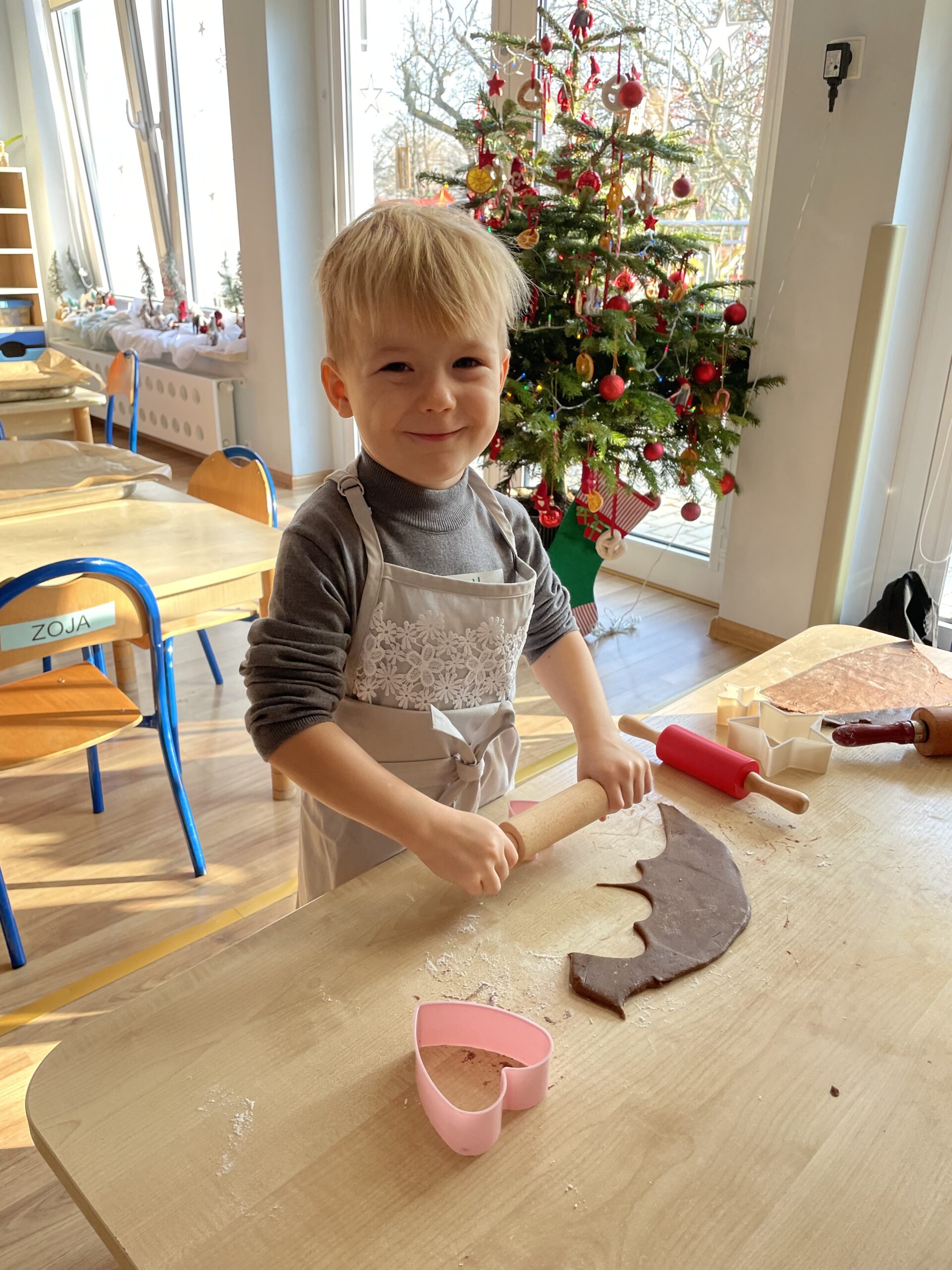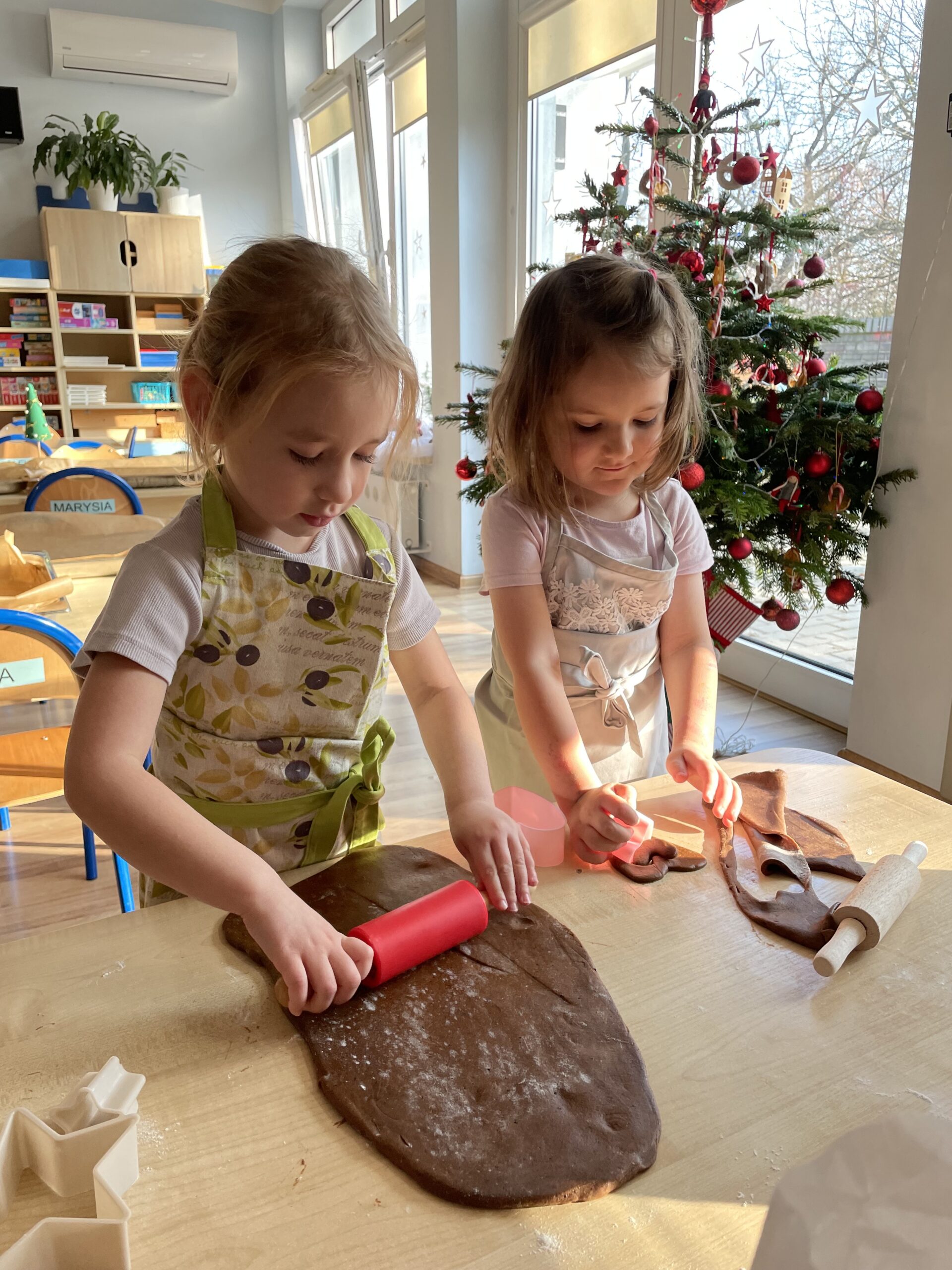 12 grudnia 2025 roku dzieci z grupy “Podróżnicy” wzięły udział w zajęciach dydaktycznych oraz kulinarnych. Najpierw poznały składniki potrzebne do przygotowania ciasta na pierniki, miały okazję je obejrzeć, dotknąć ich oraz powąchać. Aby utrwalić przepis na ciasto piernikowe dzieci wzięły udział w zabawie ruchowej – każde z nich zamieniło się w konkretny składnik, a duże obręcze posłużyły nam za miski. W każdej misce miał znaleźć się po jednym składniku potrzebnym do przygotowania ciasta na pierniki. Następnie dzieci wzięły się do pracy i własnoręcznie przygotowały pierniczki. Podróżnicy wałkowali ciasto, wykrawali pierniczki przy użyciu foremek. Po upieczeniu pozostało już tylko udekorowanie pierniczków i… gotowe! WESOŁYCH ŚWIĄT życzą Podróżnicy!