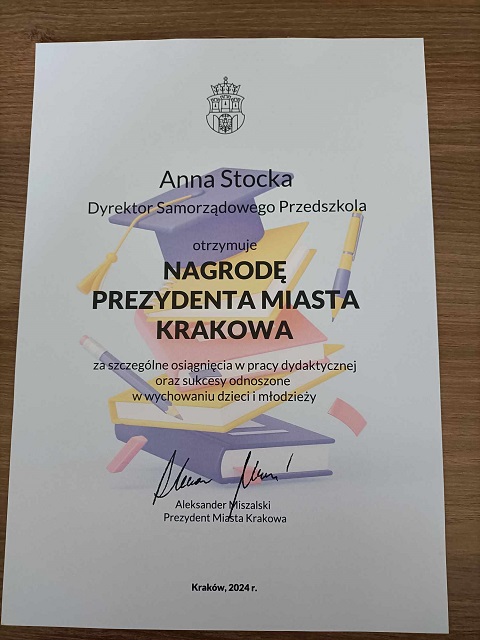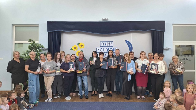 14 października obchodziliśmy Święto Edukacji . Jest to uroczystość wszystkich Pracowników Oświaty, którą świętujemy także w gronie naszych Przedszkolaków. W tym pięknym dniu były życzenia od dzieci i wyrazy uznania od Pani Dyrektor. Miło nam także zakomunikować, iż nasza Pani Dyrektor Anna Stocka otrzymała nagrodę Prezydenta Miasta za szczególne sukcesy dydaktyczne i wychowawcze.
