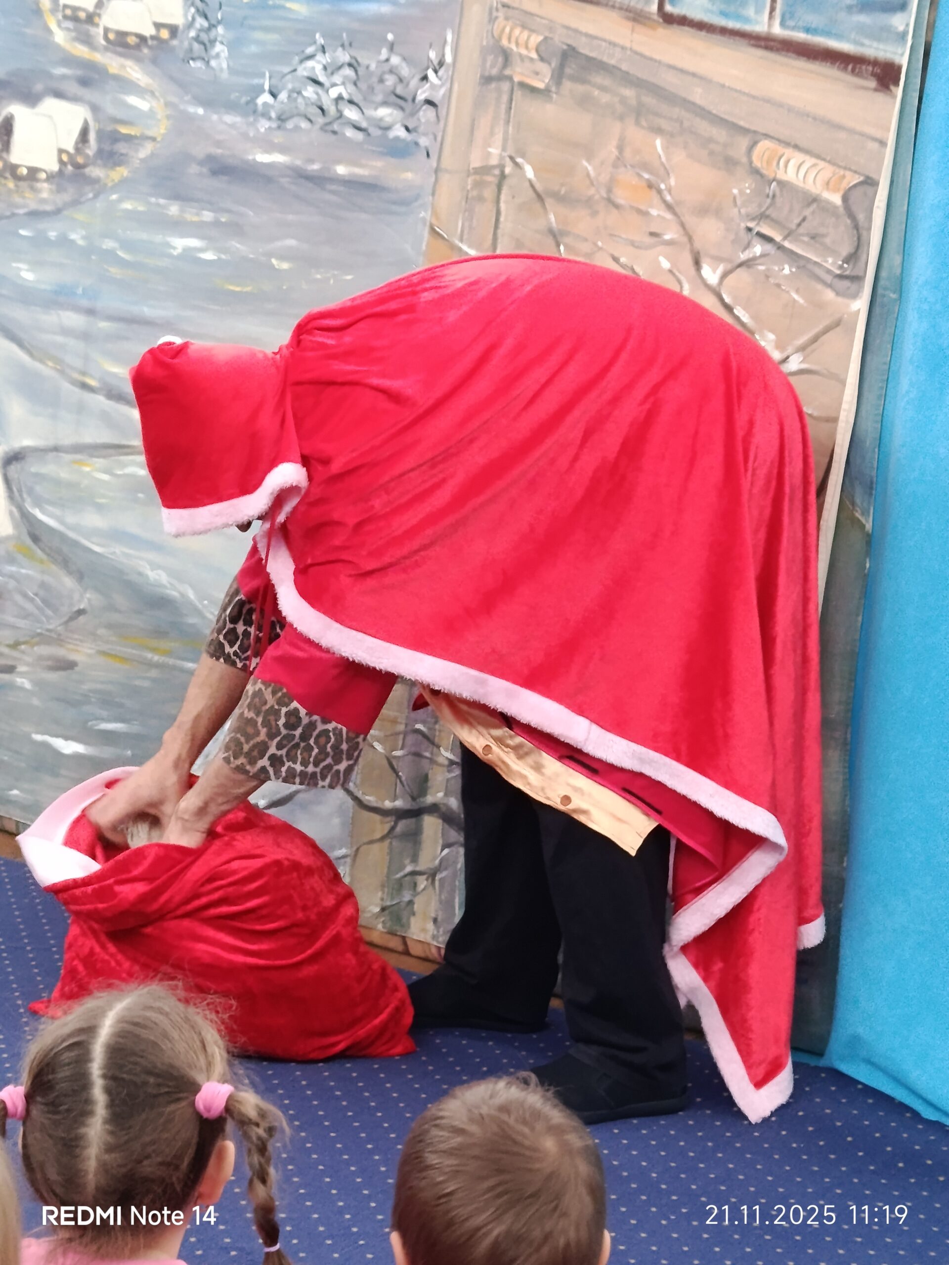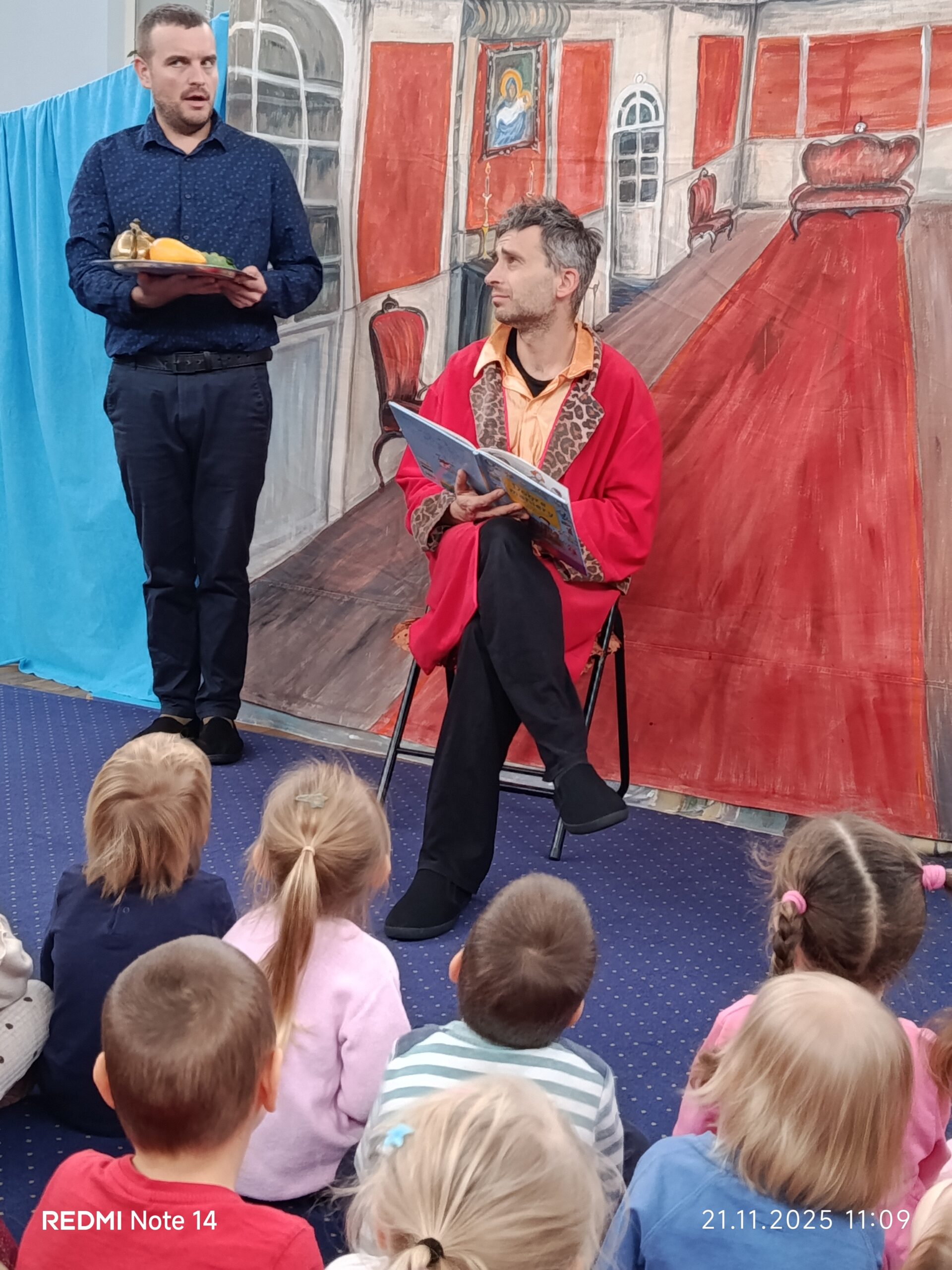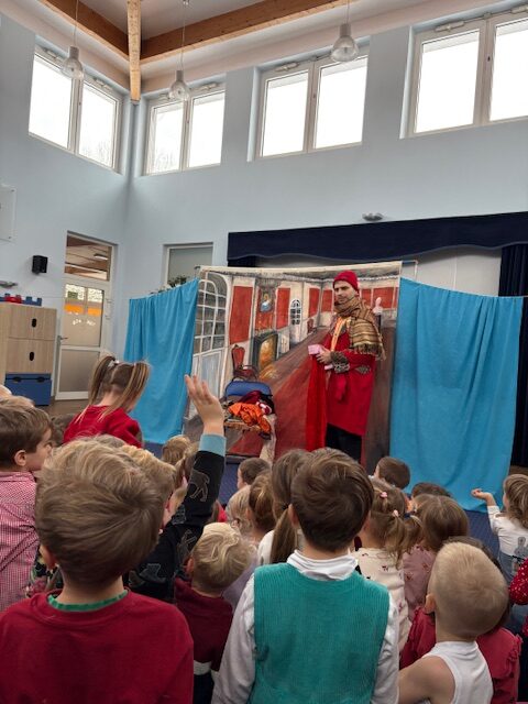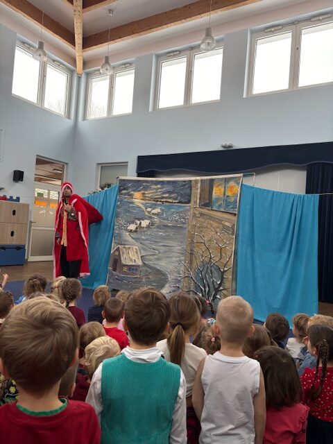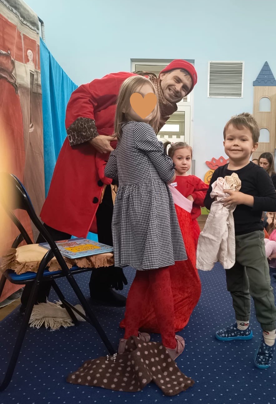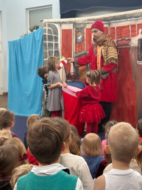 W dniu 21.11.2025 do naszego przedszkola przyjechali aktorzy teatrzyku “Eden” ze spektaklem zatytułowanym “Legenda o świętym Mikołaju”. Spektakl wprowadził dzieci swoją tematyką w atmosferę świąteczną. Aktorzy opowiedzieli wzruszającą historię o Mikołaju pochodzącym z bogatej rodziny, którego największym marzeniem było pomagać potrzebującym, spełniających ich pragnienia i zaspokajając najważniejsze potrzeby. Dzięki takim spotkaniom najmłodsi przyswajają najważniejsze wartości, jak miłość do bliźniego, emaptia wobec osób potrzebujących, biednych czy doświadczonych przez życie. Po obejrzanym spektaklu zarówno wychowawczynie, jak i aktorzy przeprowadzili z dziećmi krótką rozmowę, o tym, co w życiu jest najważniejsze. Nasze przedszkolaki już doskonale to wiedzą!
