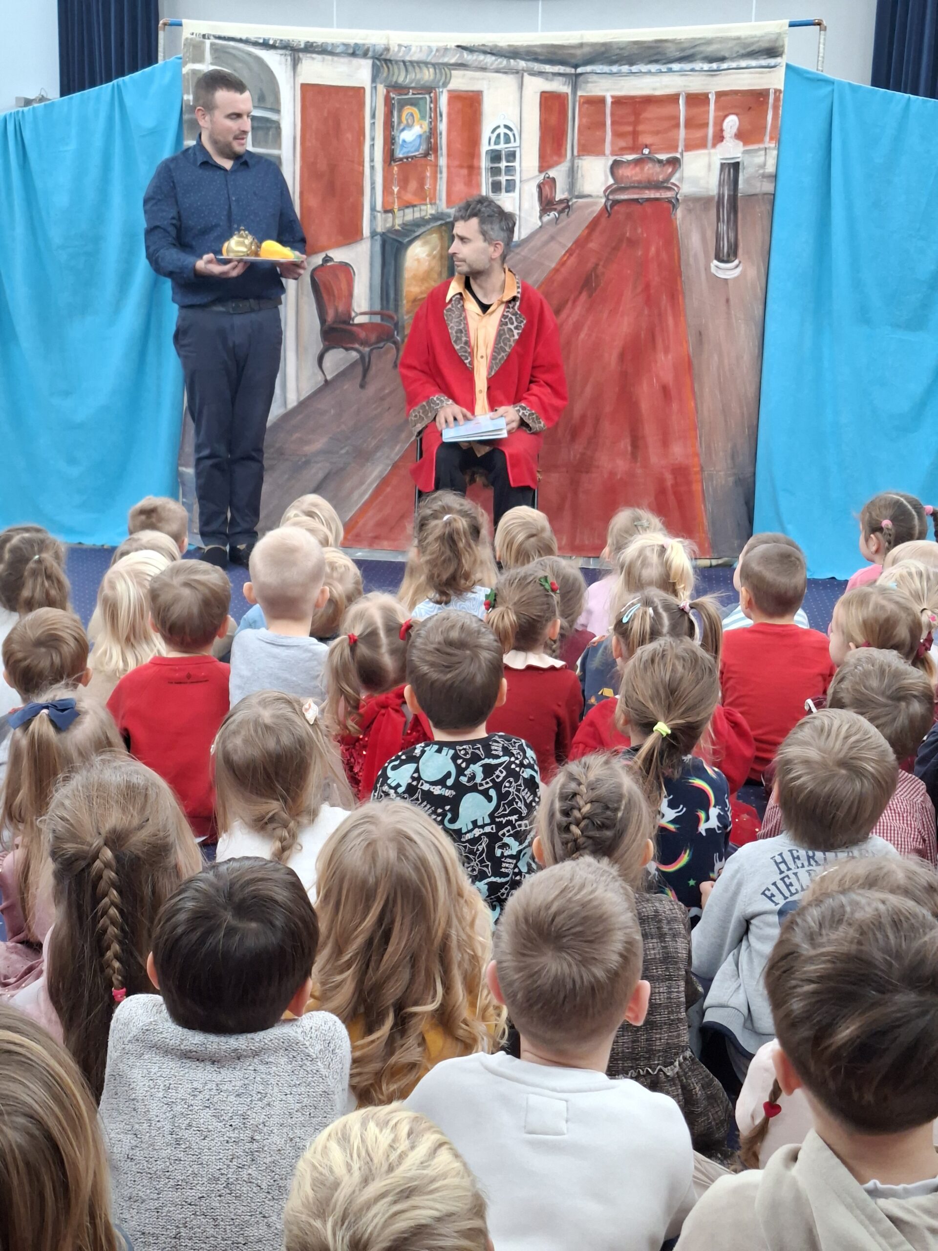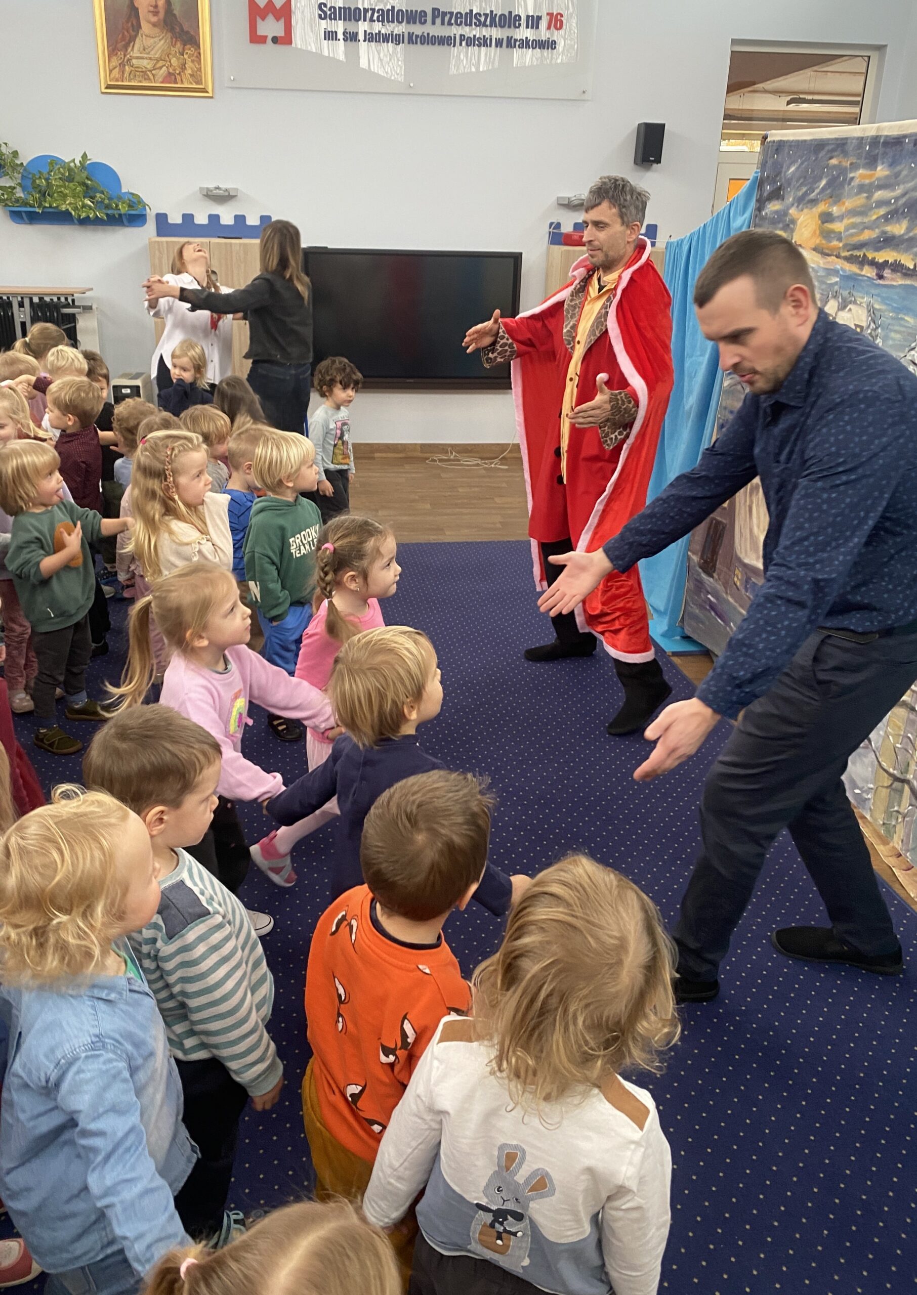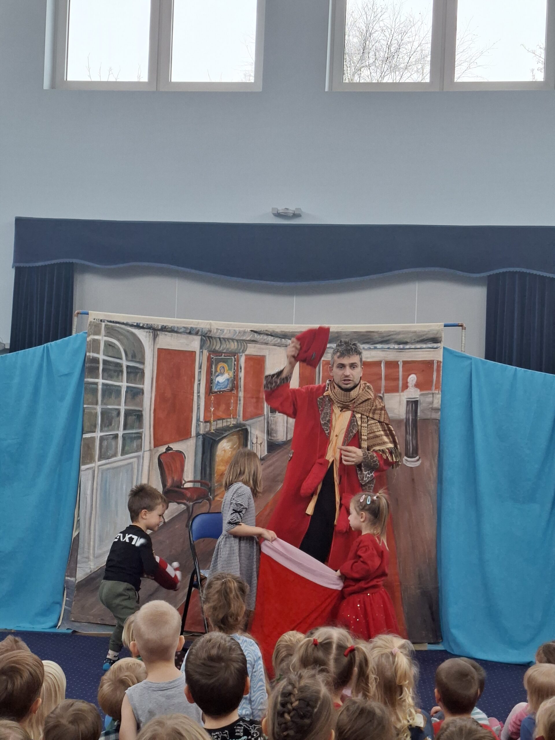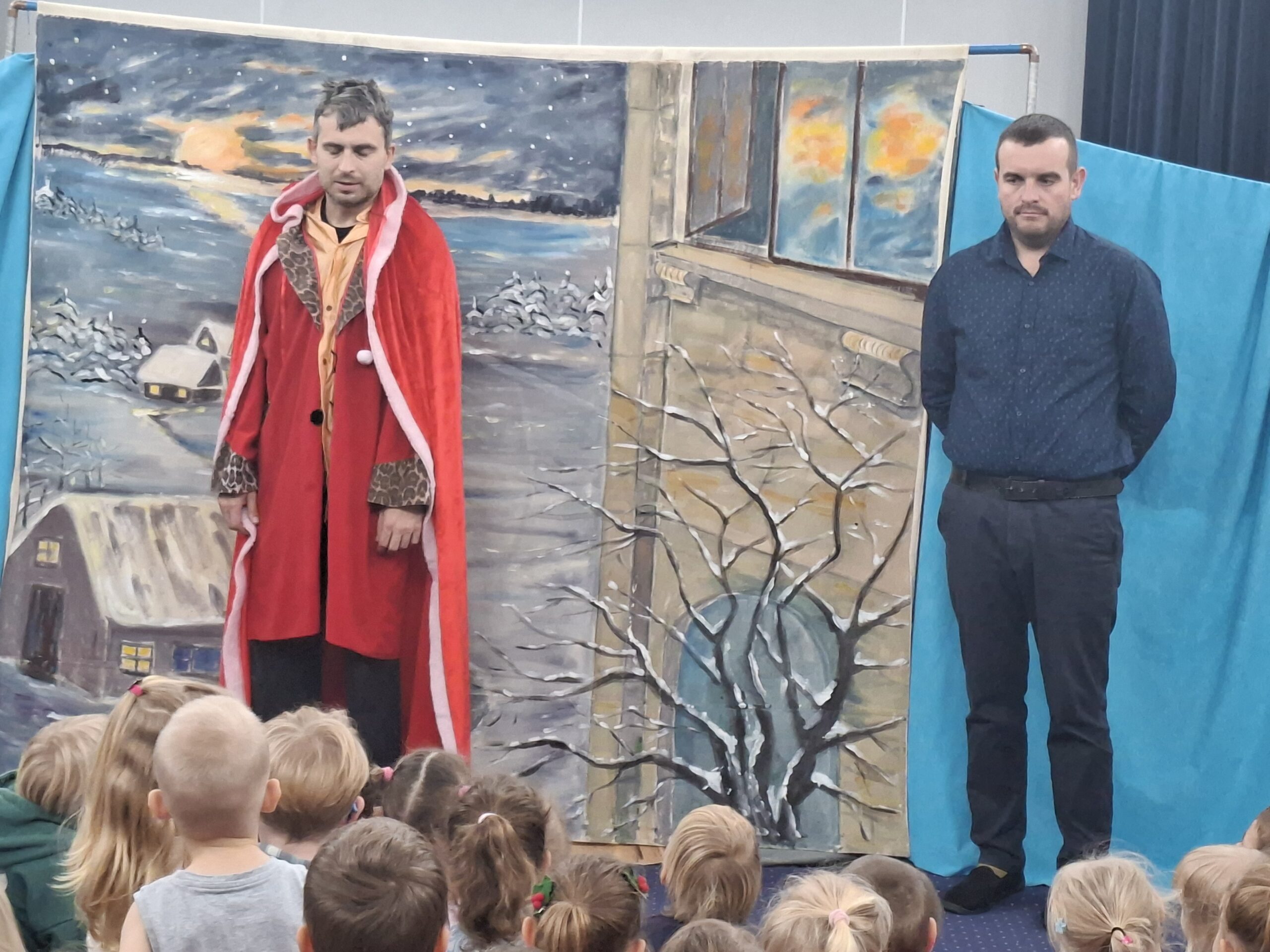 W dniu 21.11.2025 do naszego przedszkola przyjechali aktorzy teatrzyku “Eden” ze spektaklem zatytułowanym “Legenda o świętym Mikołaju”. Spektakl wprowadził dzieci swoją tematyką w atmosferę świąteczną. Aktorzy opowiedzieli wzruszającą historię o Mikołaju pochodzącym z bogatej rodziny, którego największym marzeniem było pomagać potrzebującym, spełniających ich pragnienia i zaspokajając najważniejsze potrzeby. Dzięki takim spotkaniom najmłodsi przyswajają najważniejsze wartości, jak miłość do bliźniego, emaptia wobec osób potrzebujących, biednych czy doświadczonych przez życie. Po obejrzanym spektaklu zarówno wychowawczynie, jak i aktorzy przeprowadzili z dziećmi krótką rozmowę, o tym, co w życiu jest najważniejsze. Nasze przedszkolaki już doskonale to wiedzą!