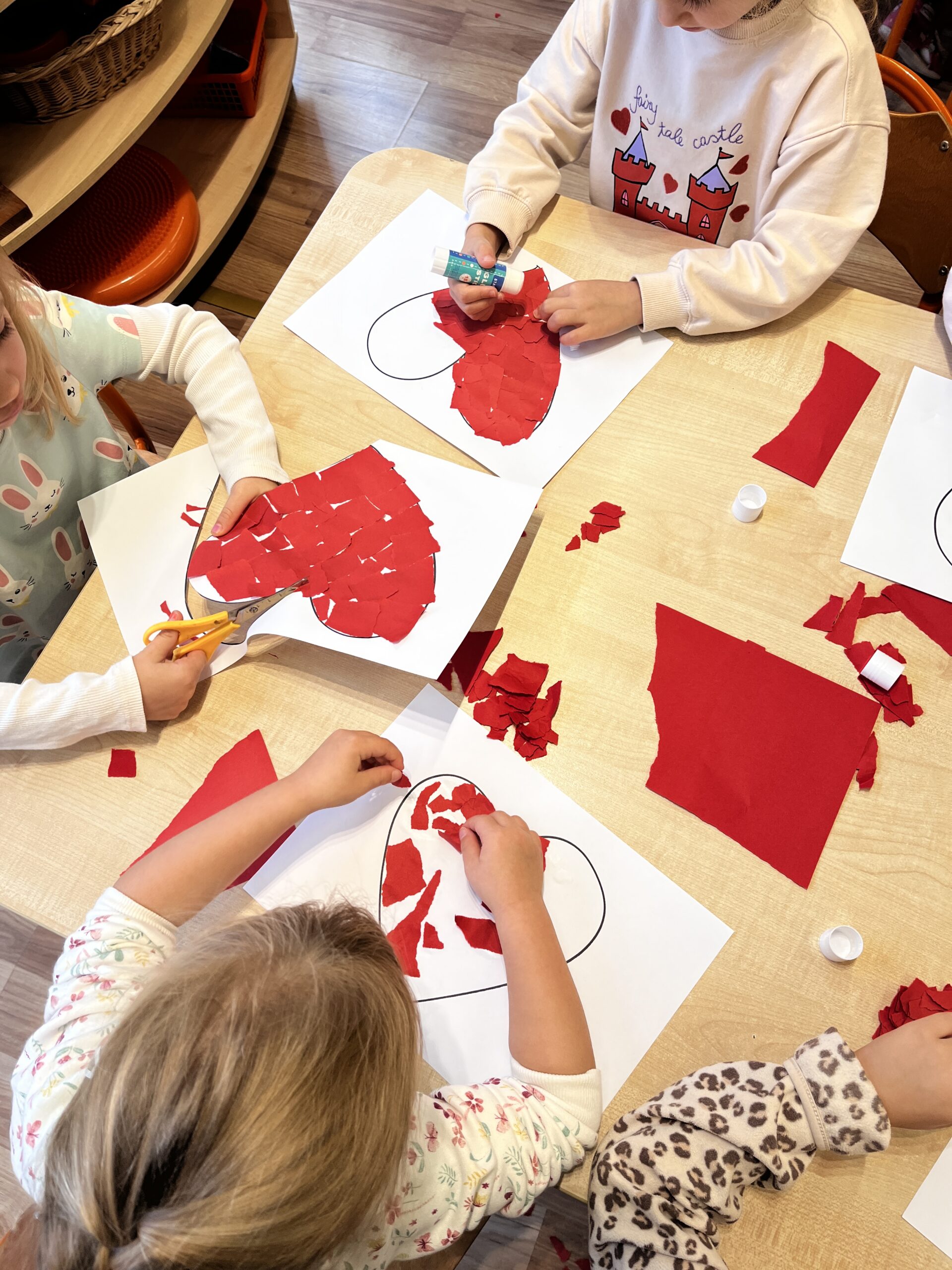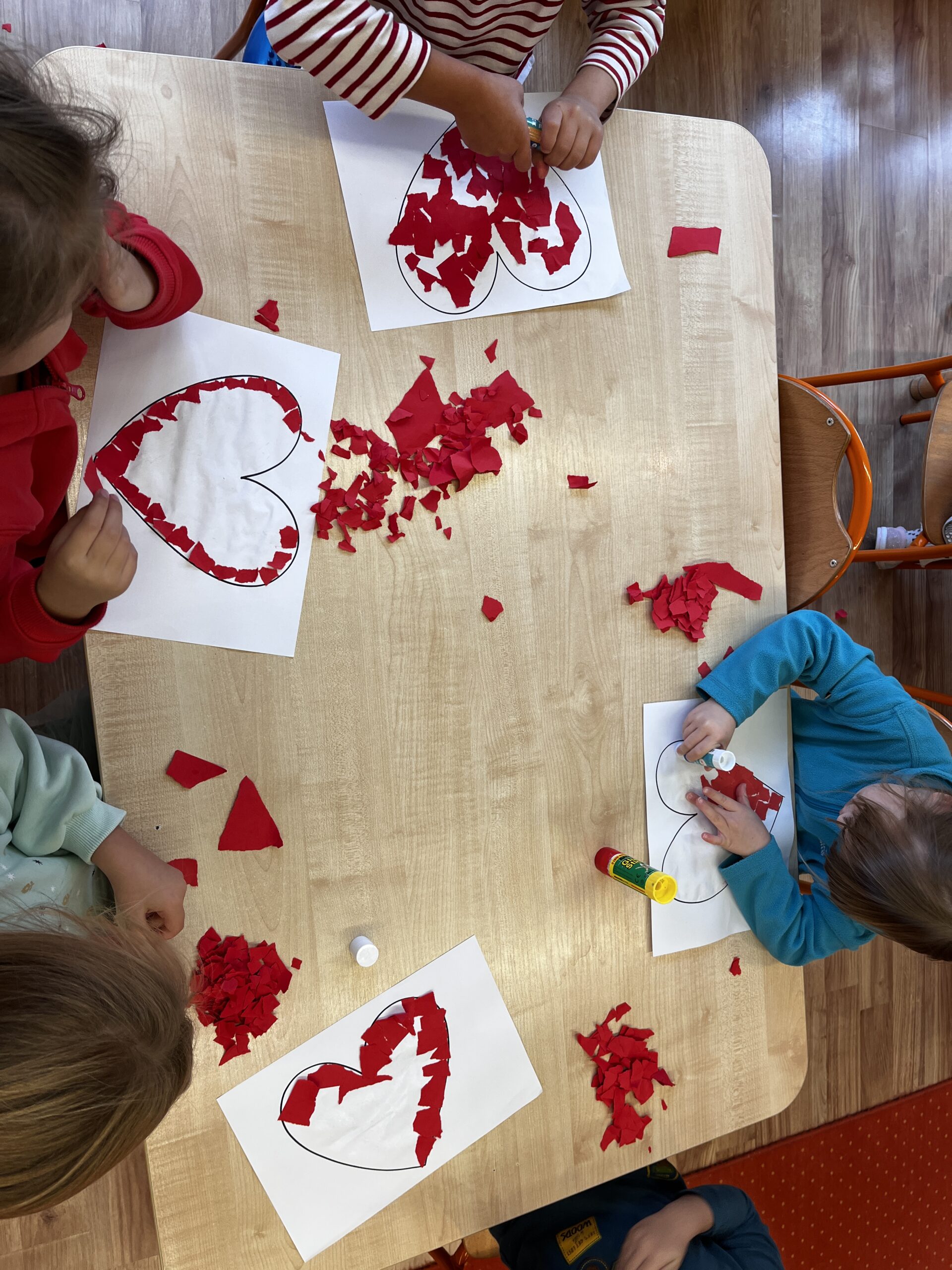 Przedszkolaki  poznały bohaterów opowiadania Serduszko z listków, dowiedziały się, że niektóre słowa i czyny mogą ranić innych, należy więc mówić o swoich emocjach, zaakceptować je tak jakby dbało się o siebie, a jeśli zdarzy się nam zrobić przykrość to zawsze należy przeprosić i naprawić  błąd dobrym uczynkiem,. W tym dniu wszystkie dzieci  wykonały też prace plastyczne do opowiadania – a były to serca złożone z kawałeczków czerwonego papieru.